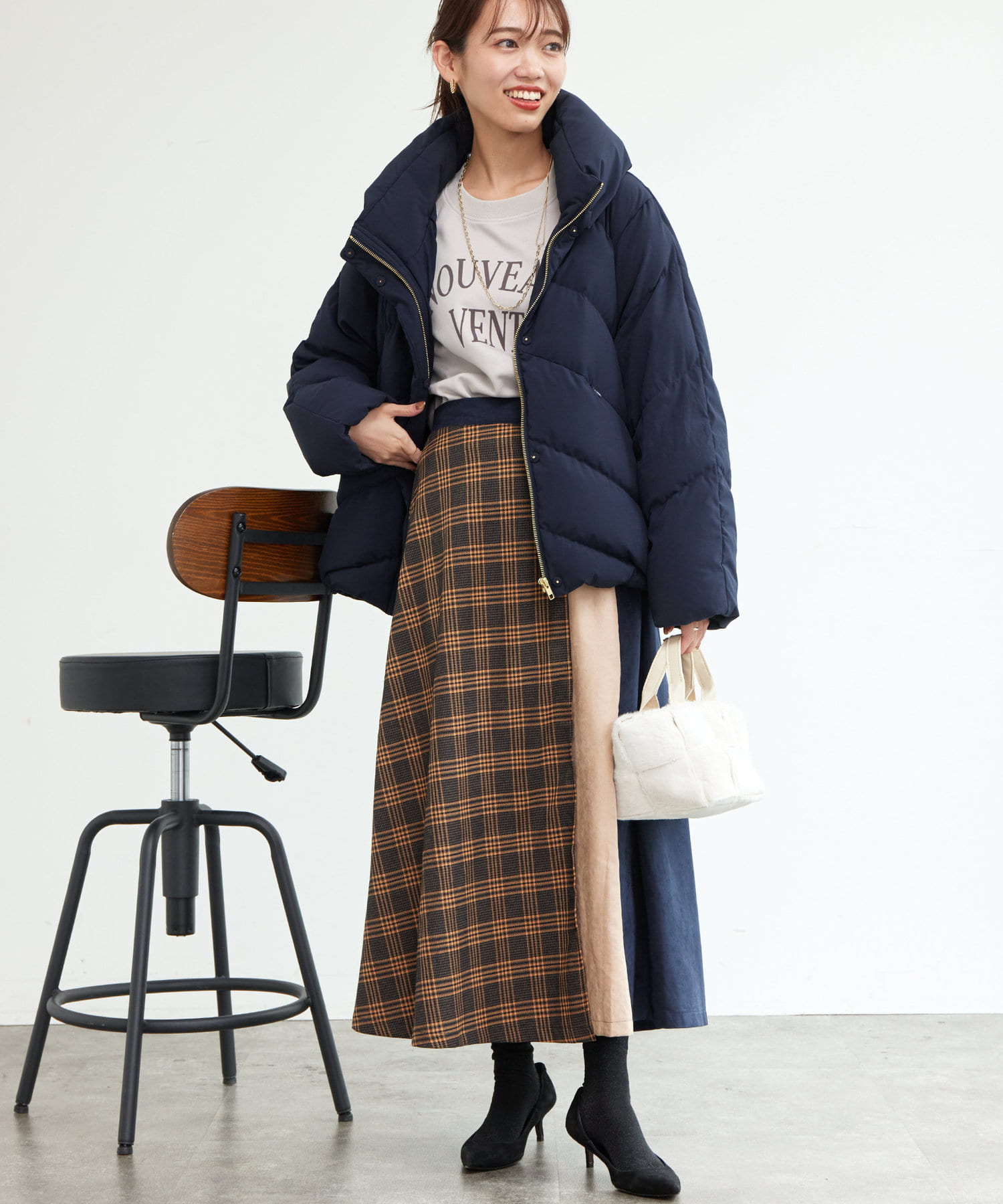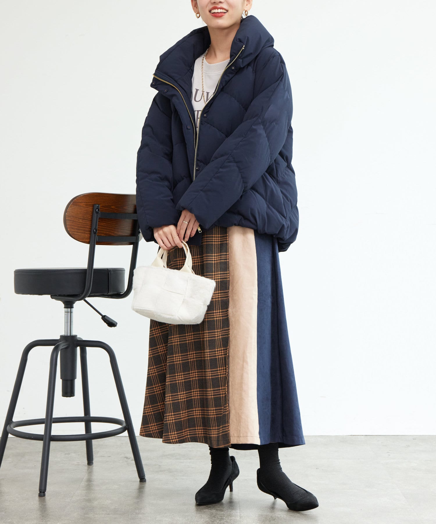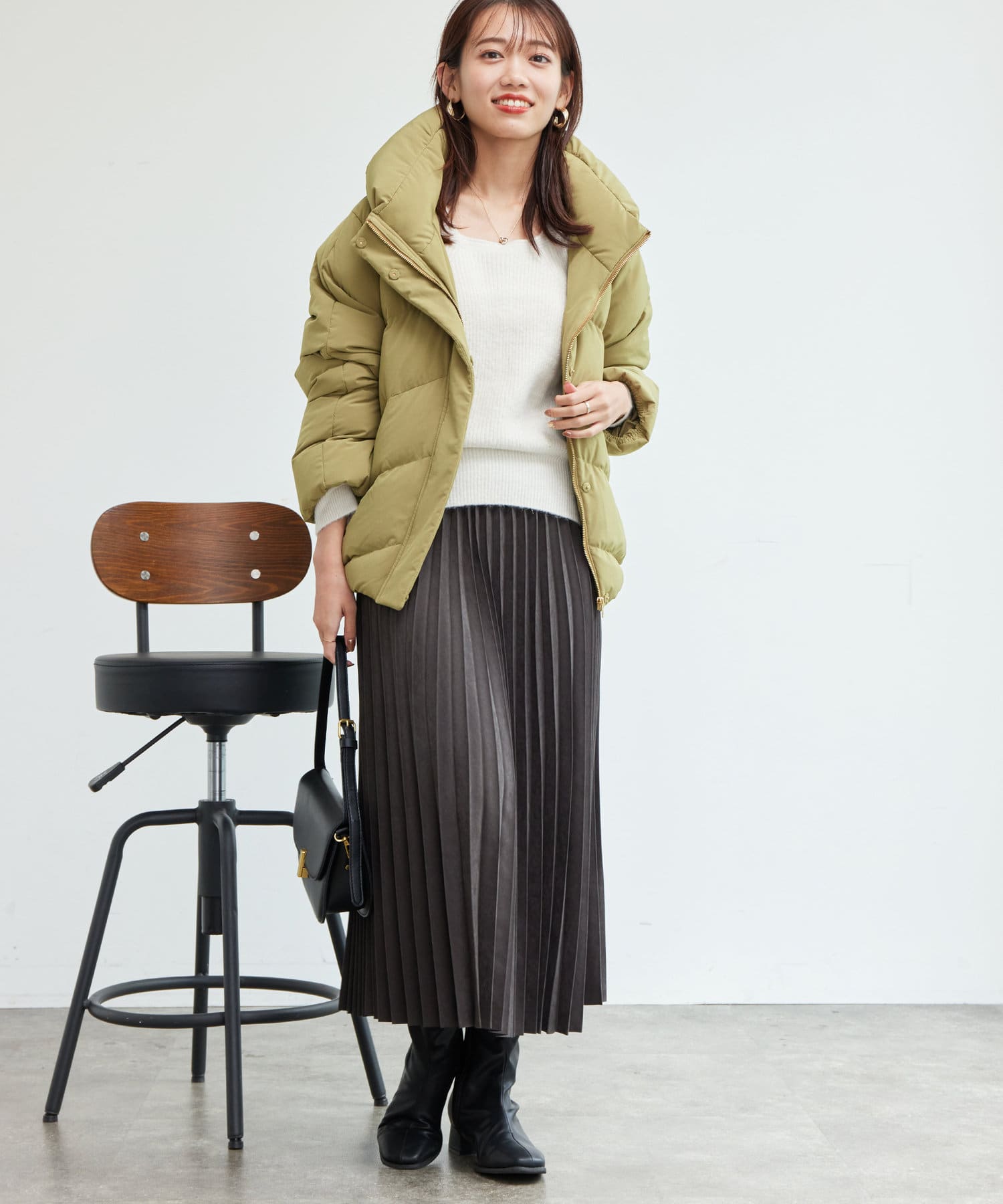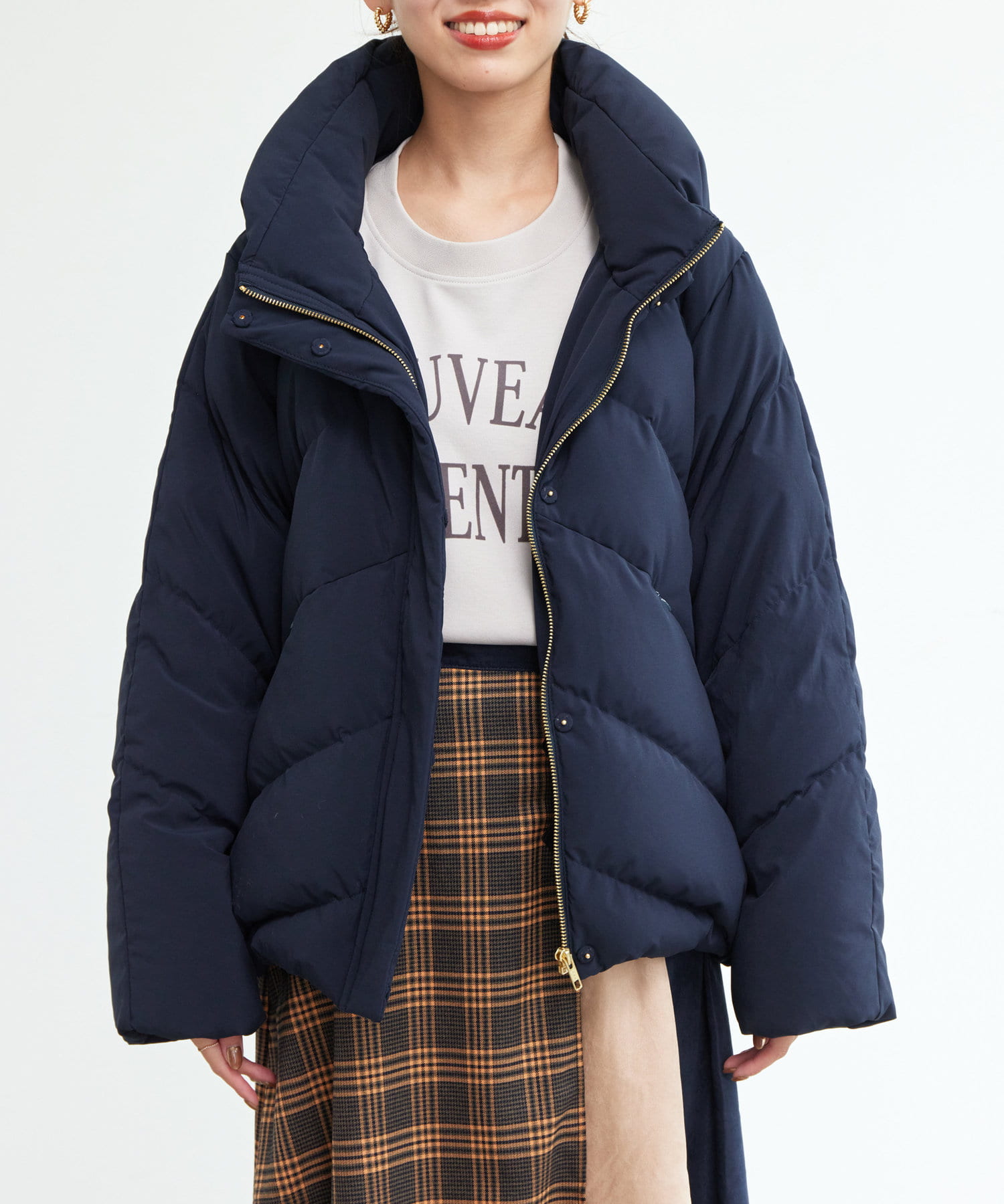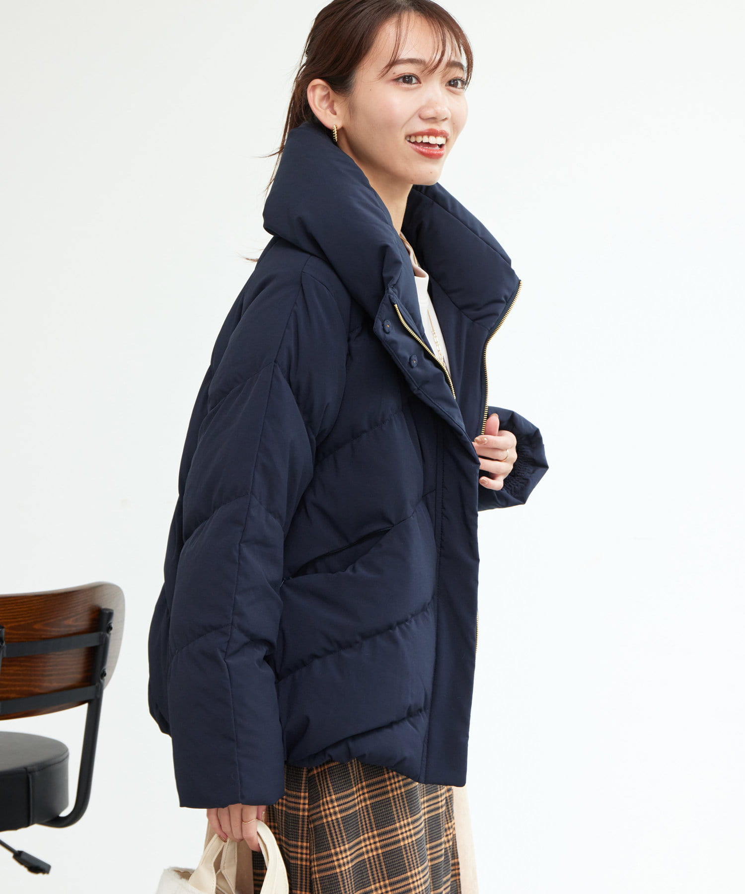 ボリュームネックの華やかなショートダウン