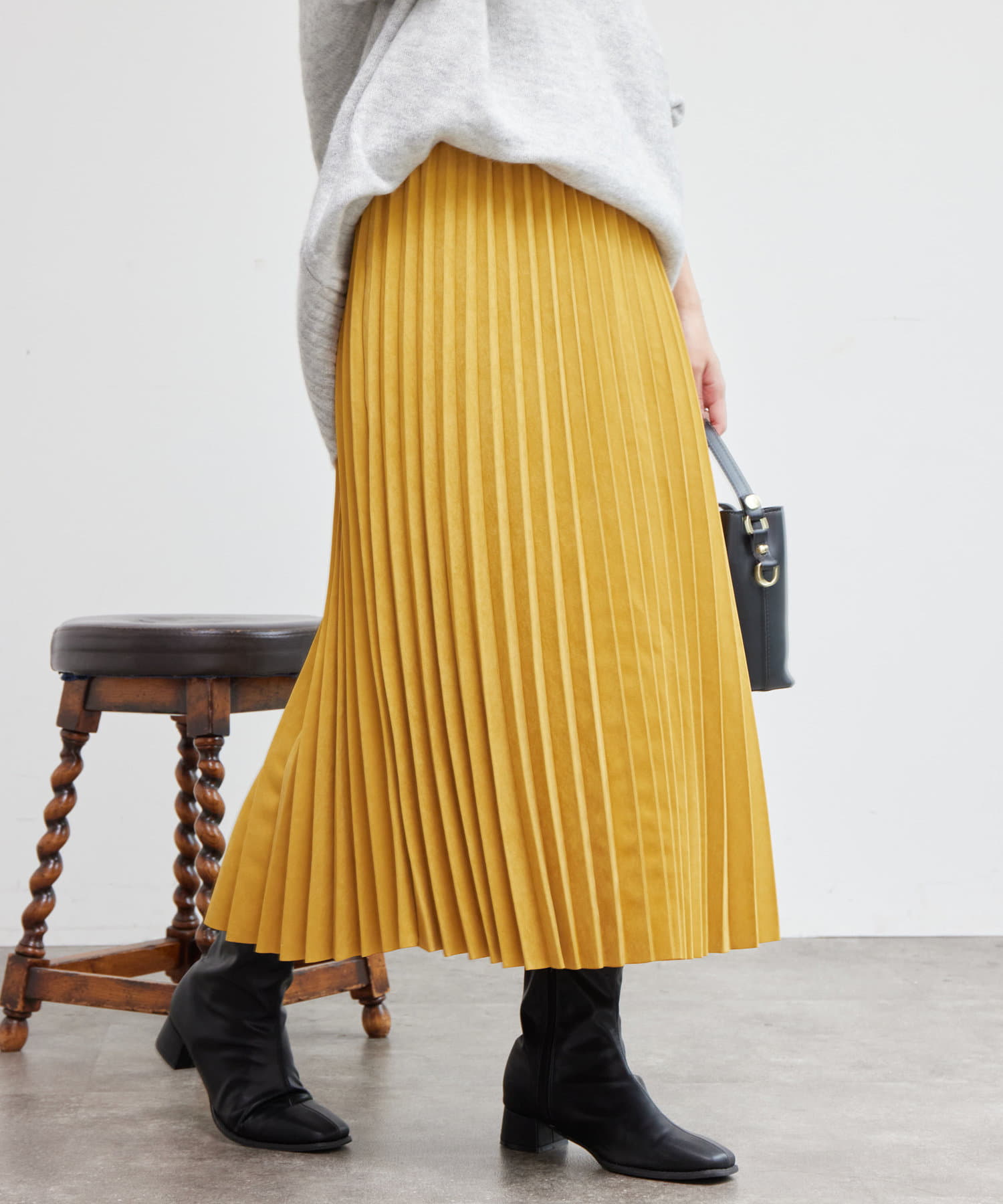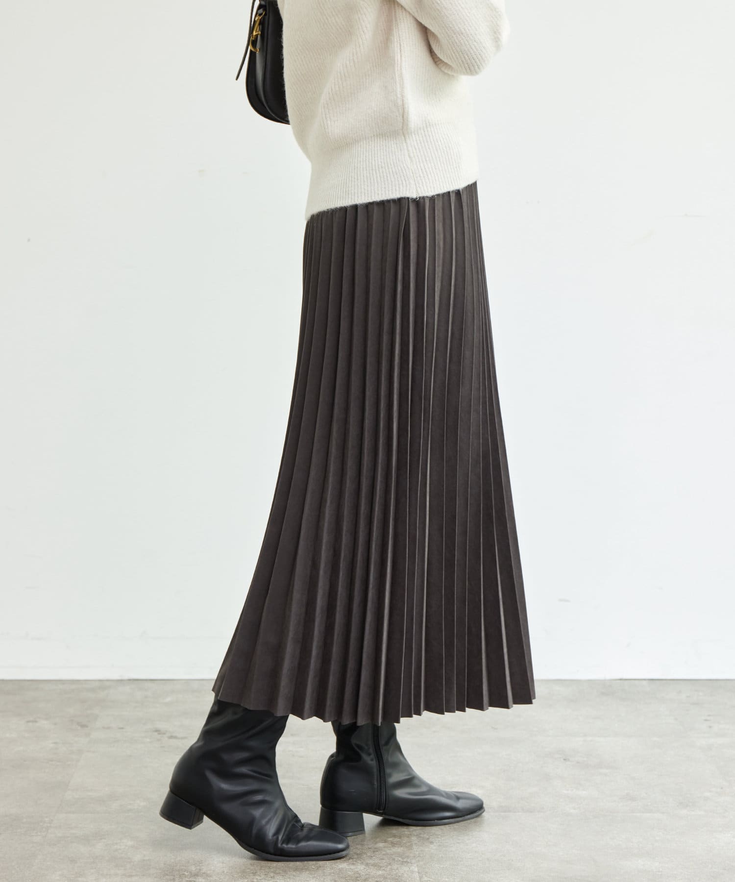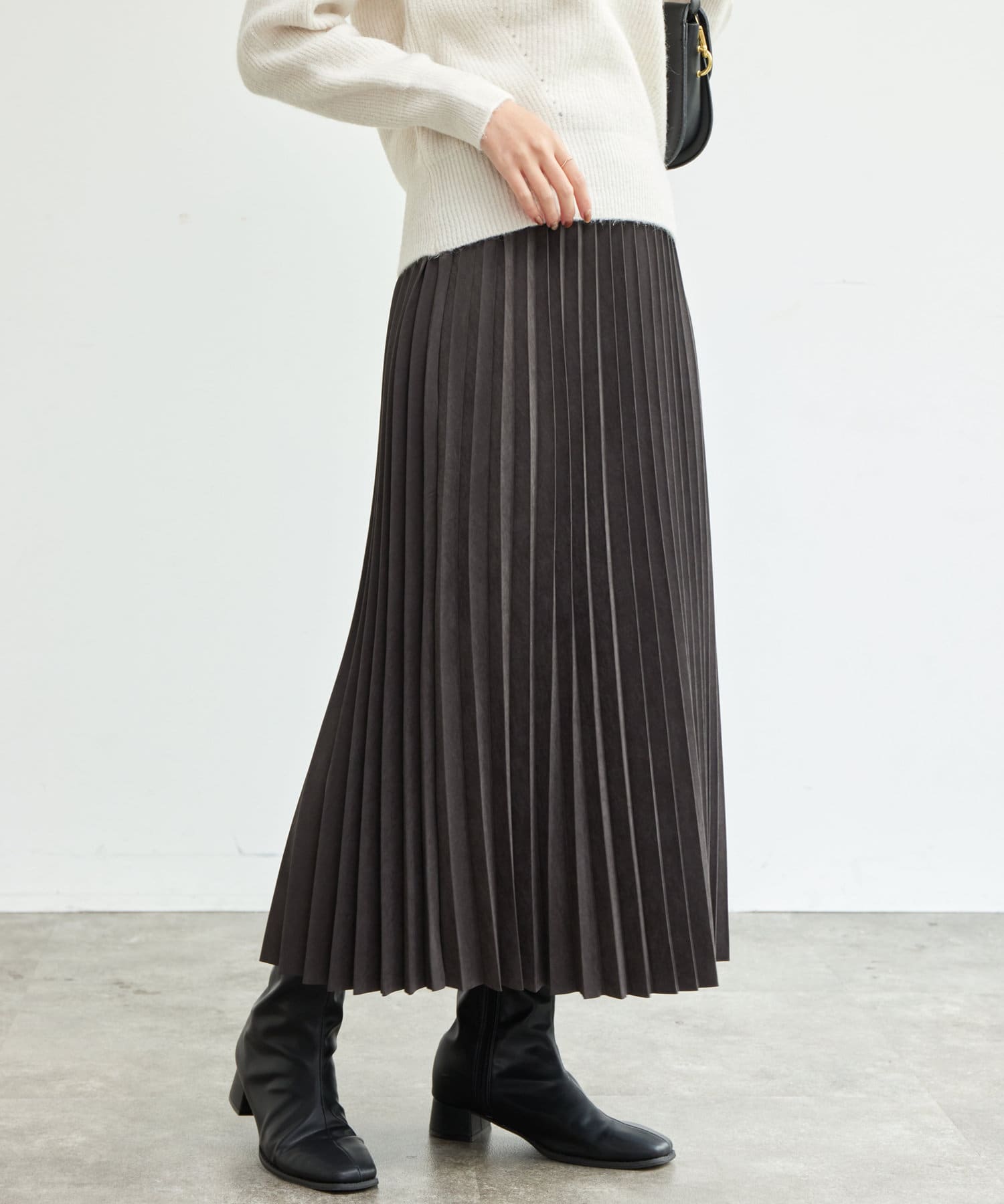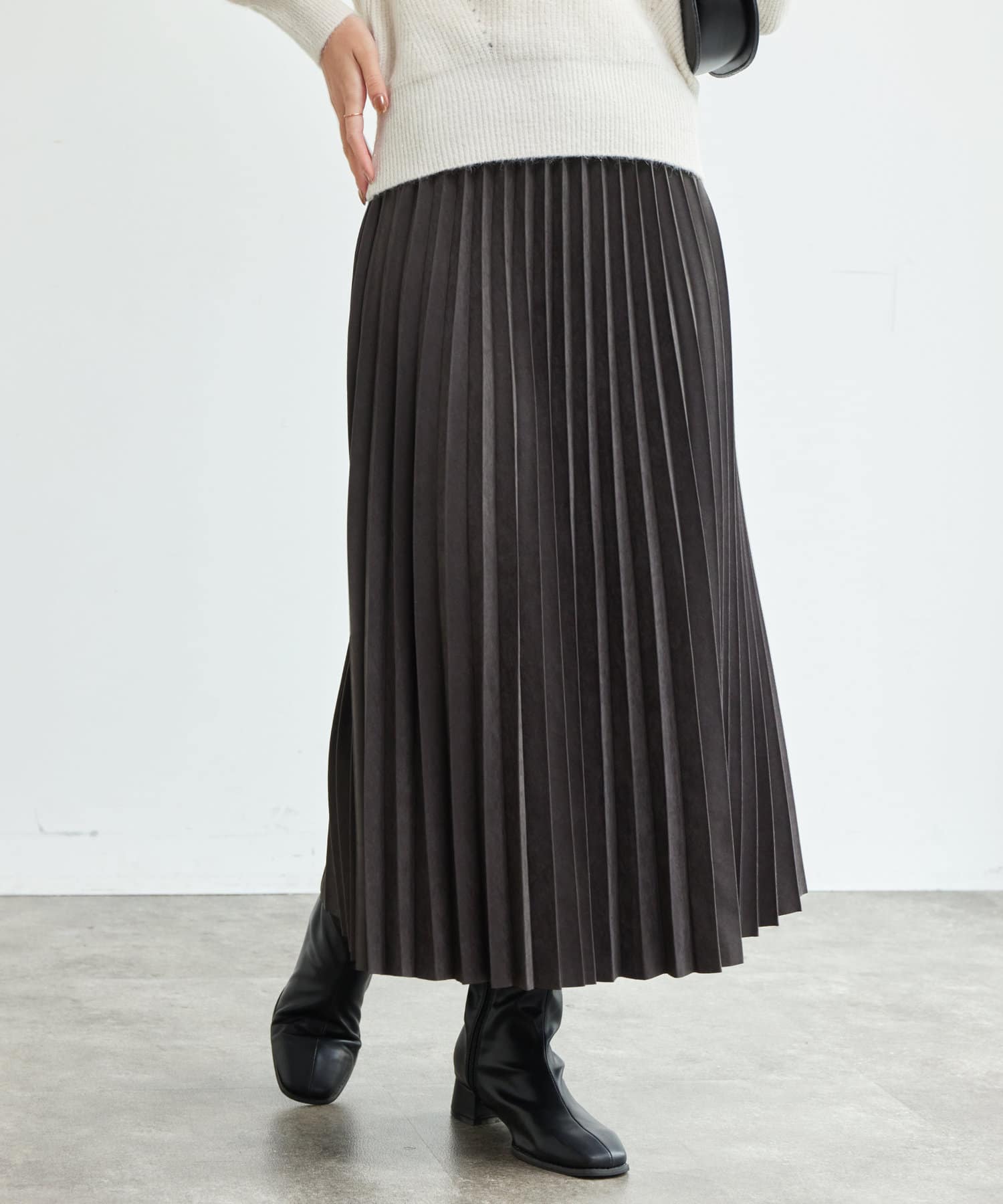 ピーチ起毛の冬に活躍するプリーツスカート。