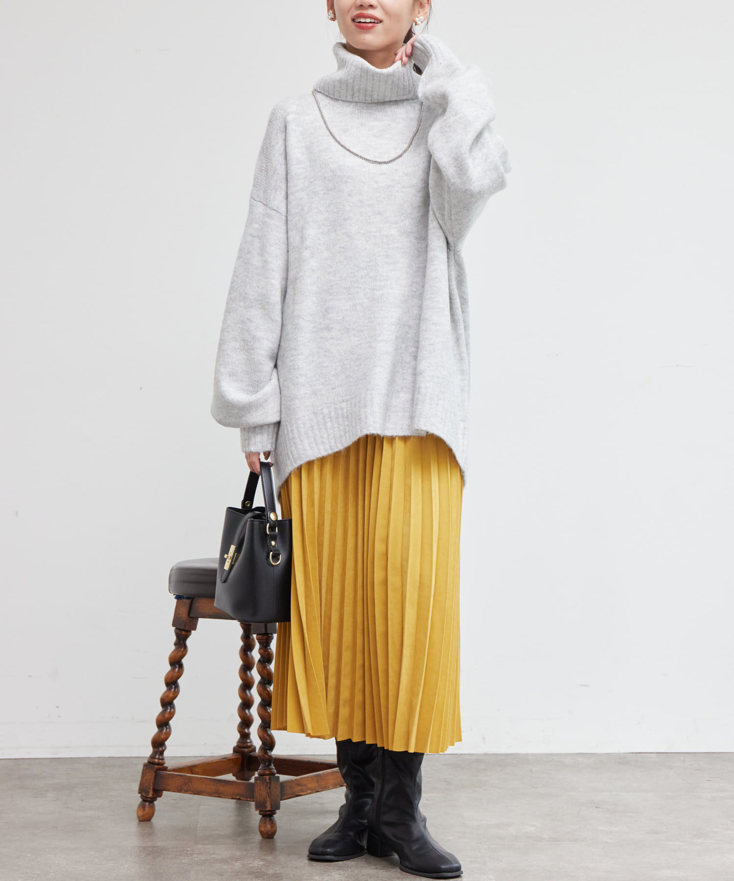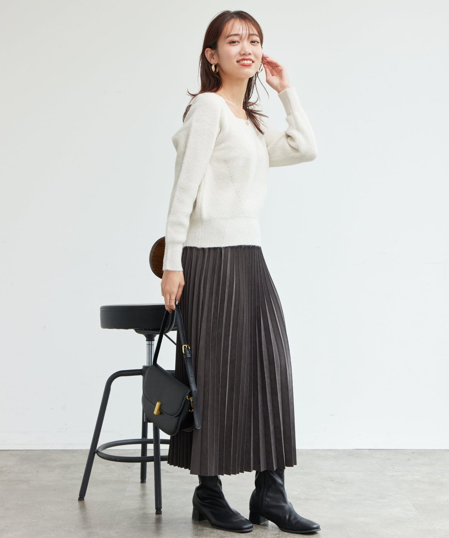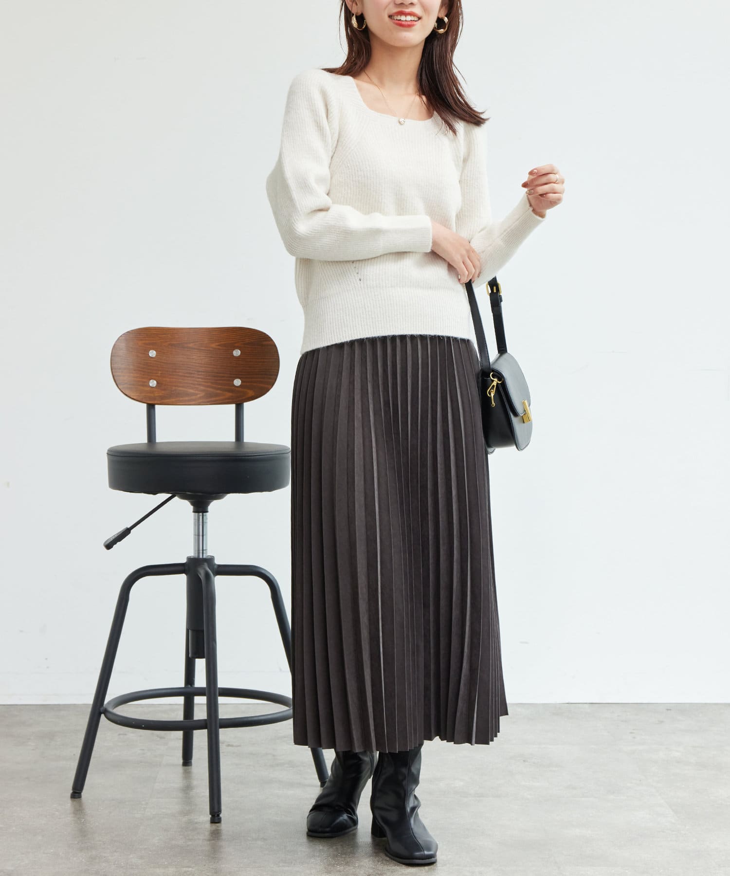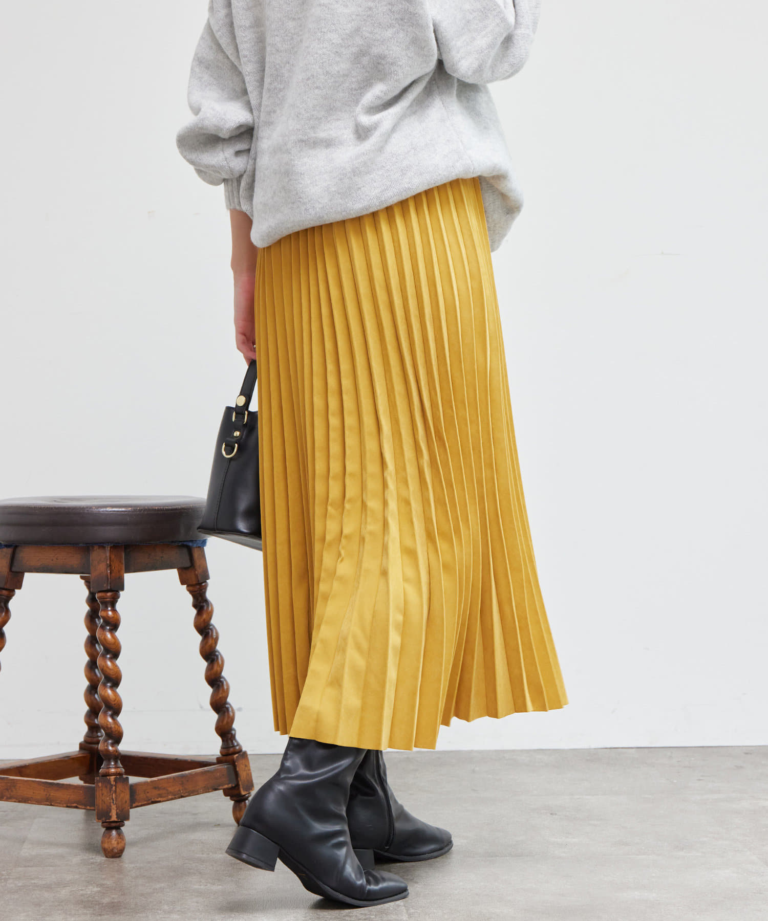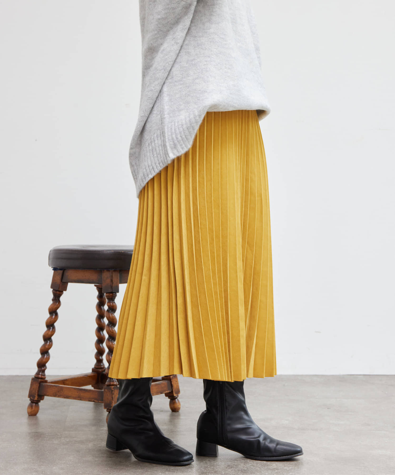 ピーチ起毛の冬に活躍するプリーツスカート。