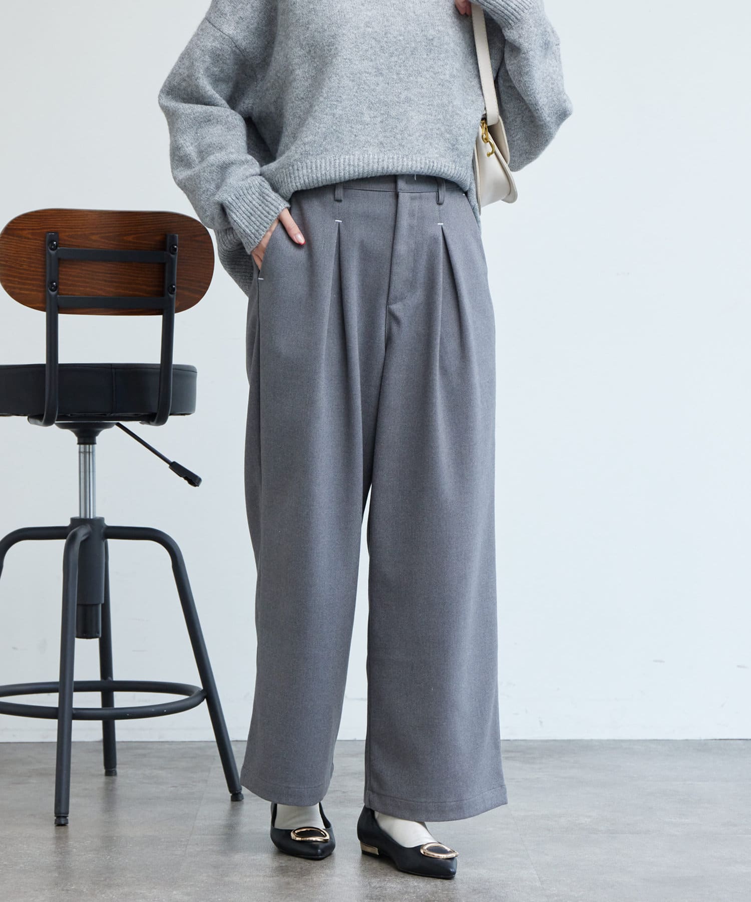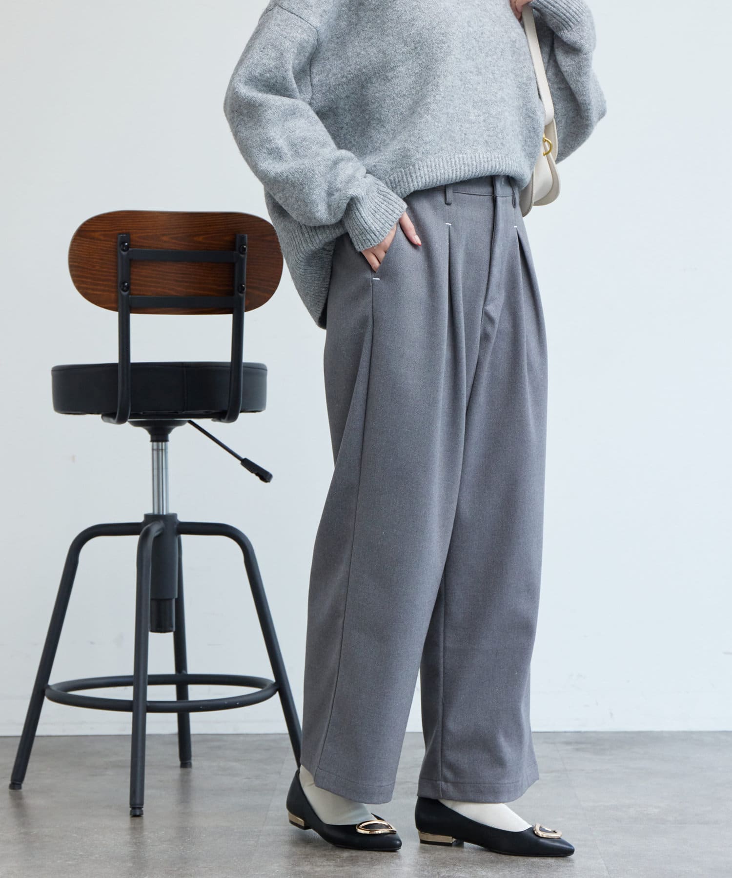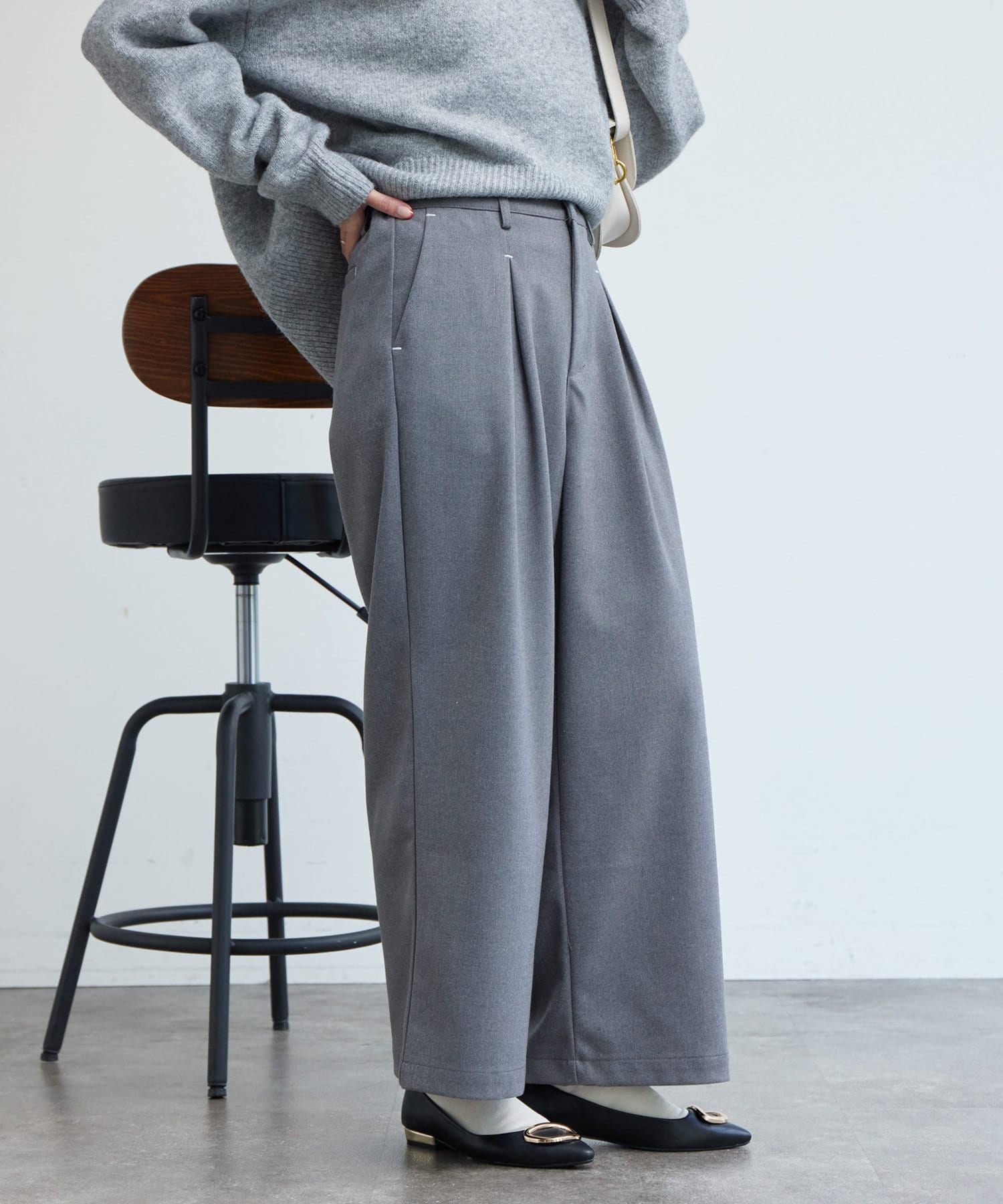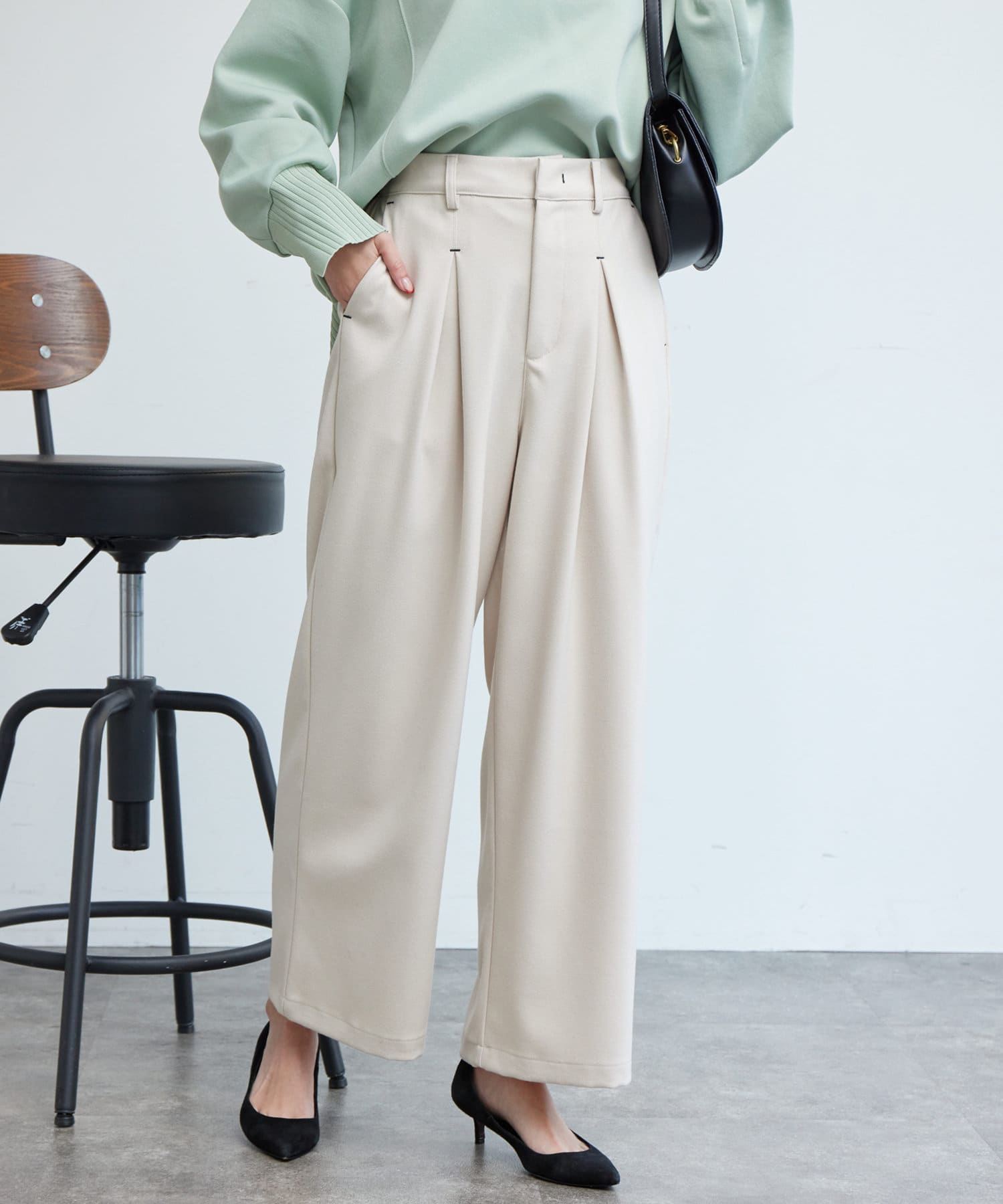 ステッチ入りがポイント!タックの入ったスッキリワイドパンツ