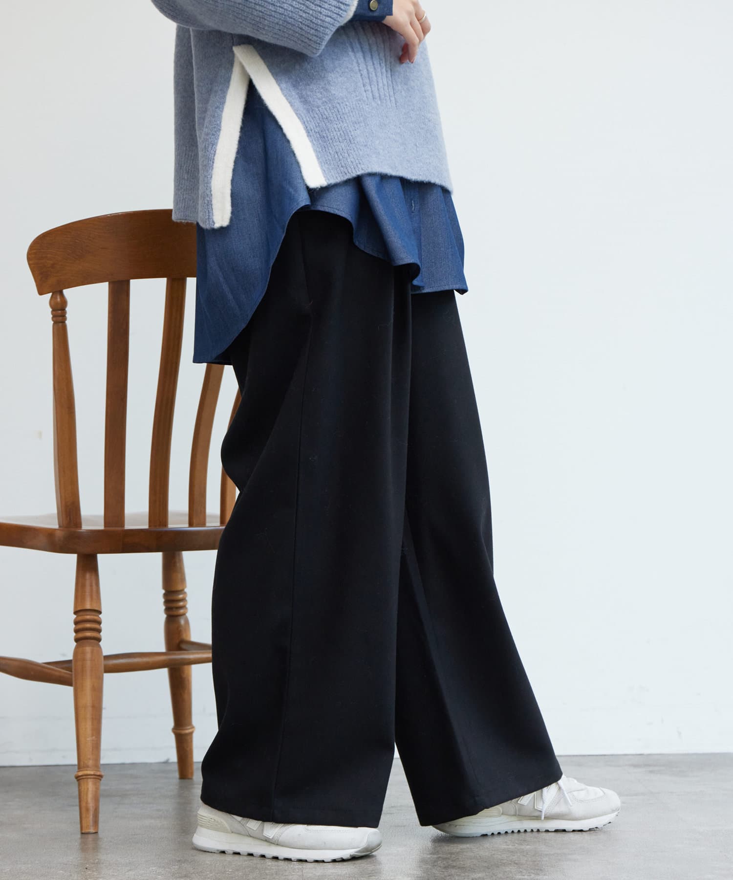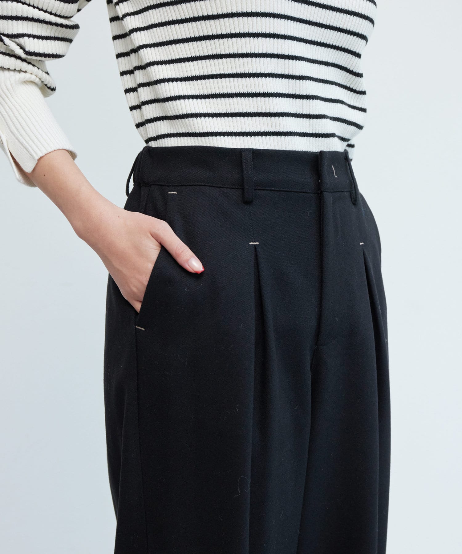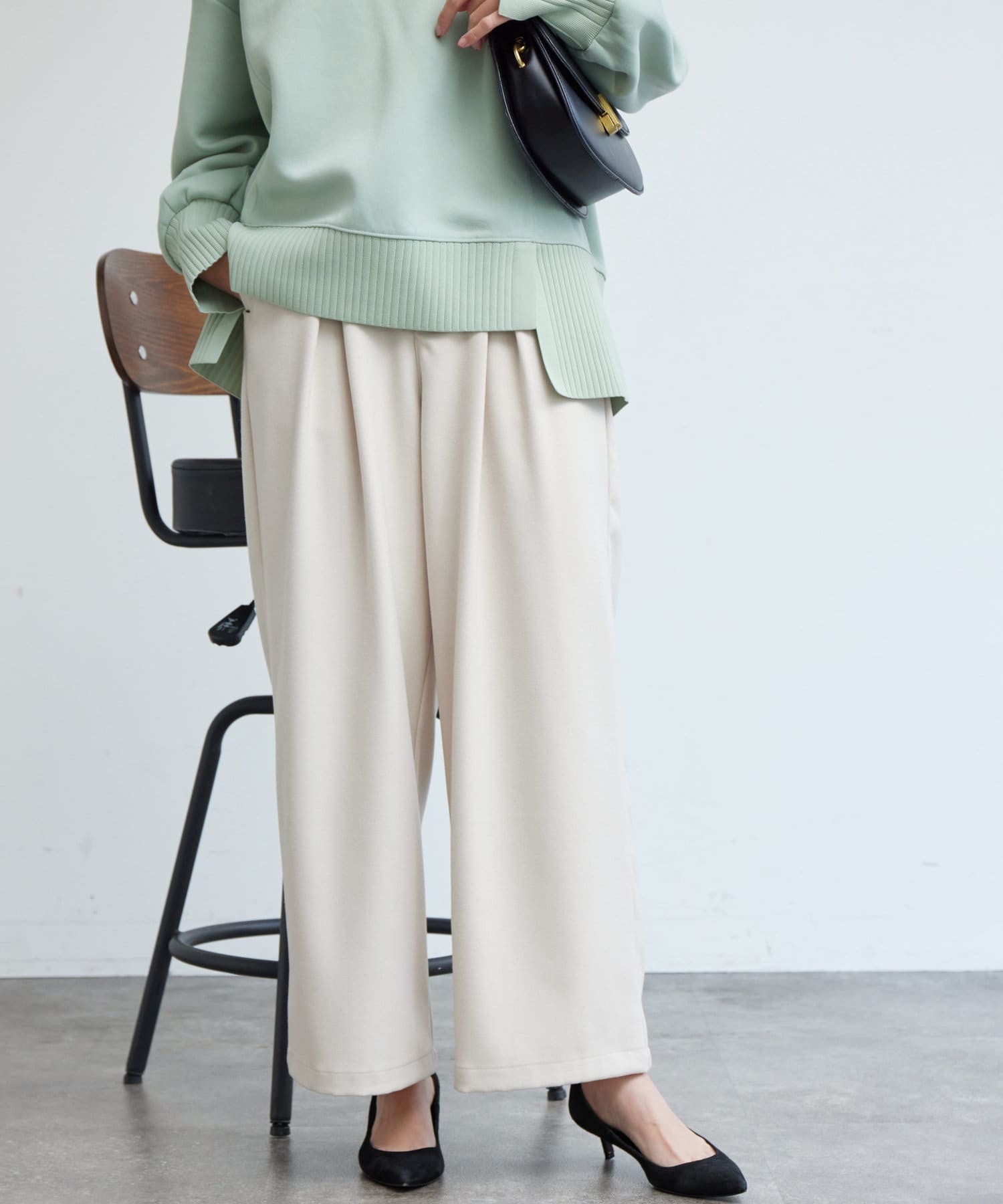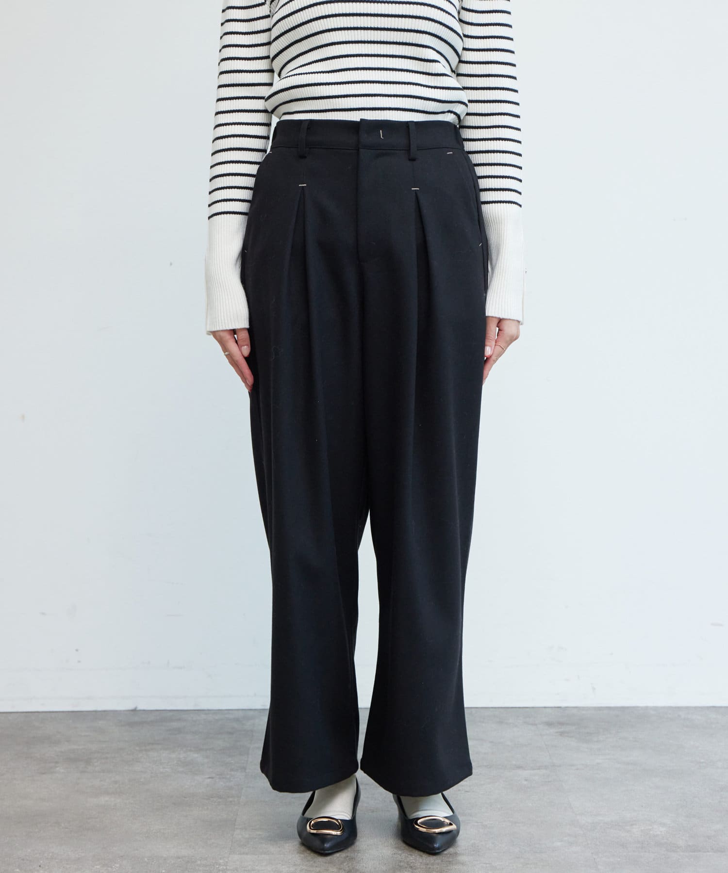ステッチ入りがポイント!タックの入ったスッキリワイドパンツ