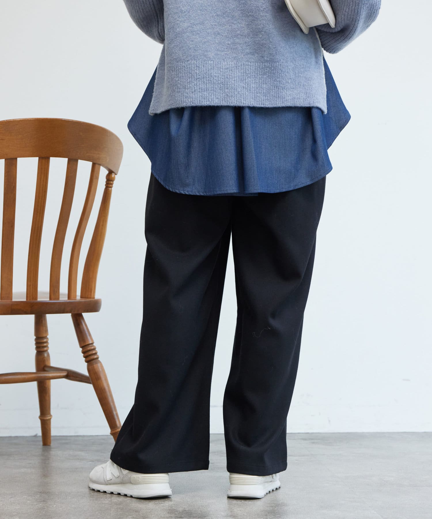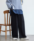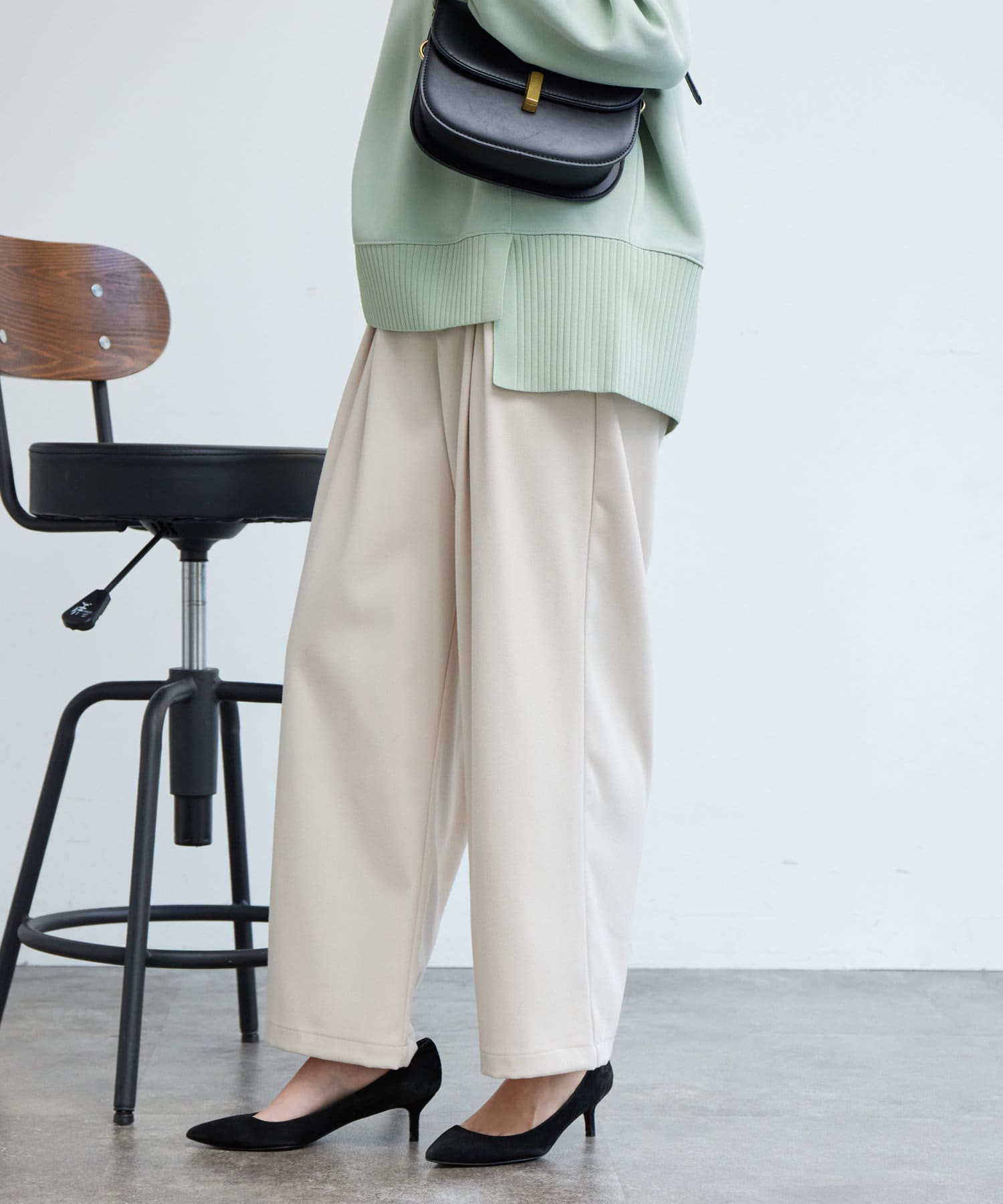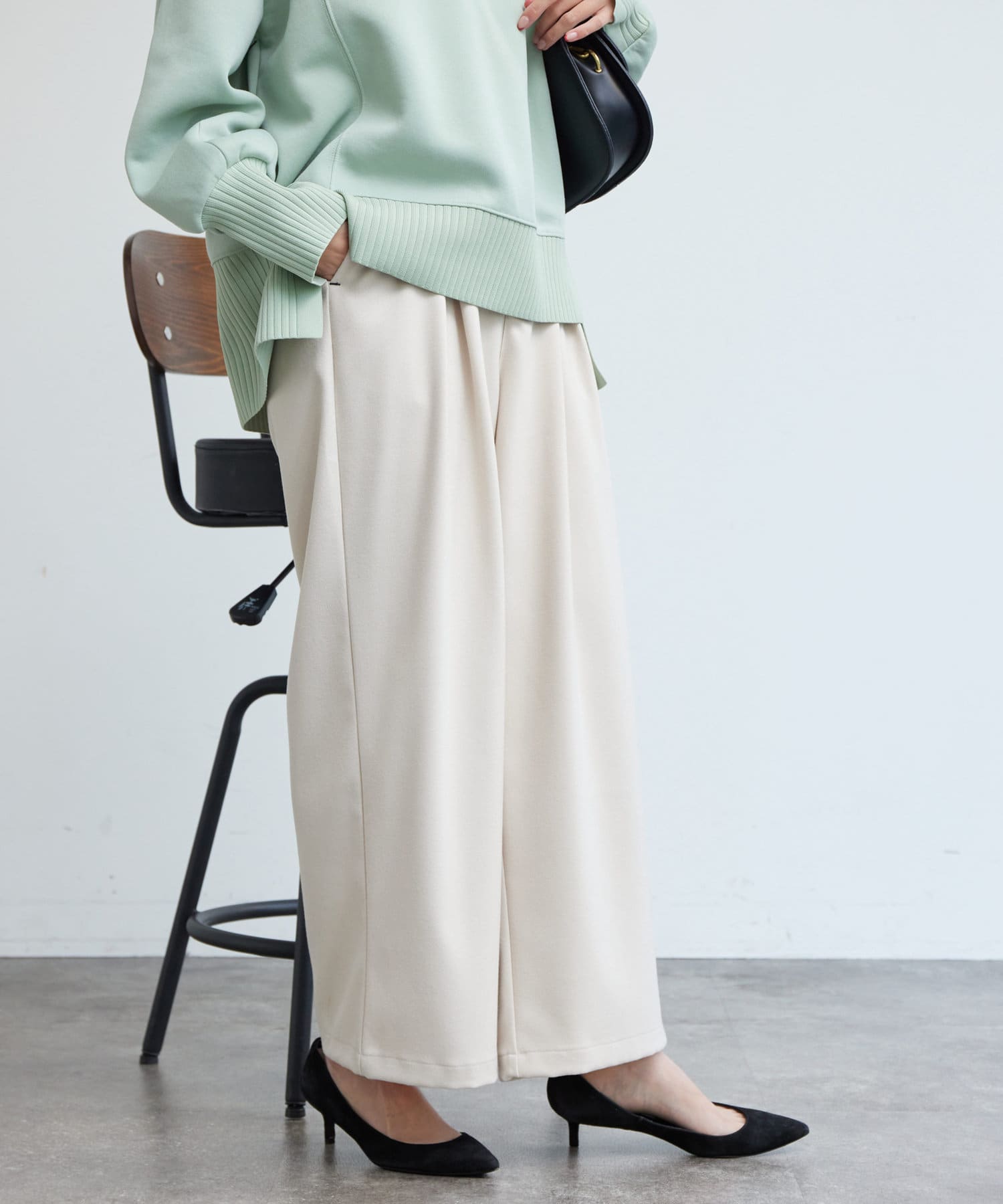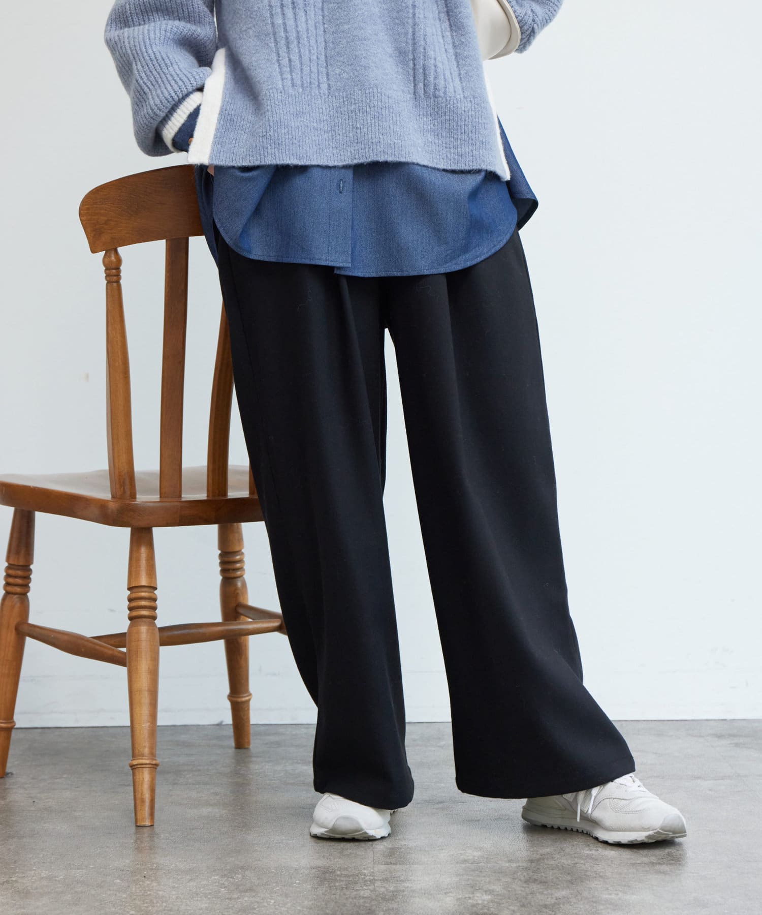 ステッチ入りがポイント!タックの入ったスッキリワイドパンツ