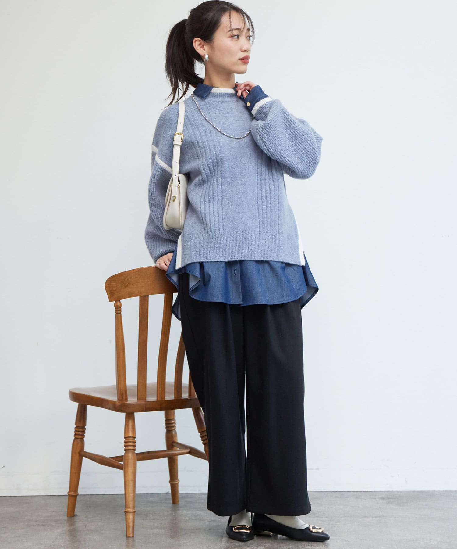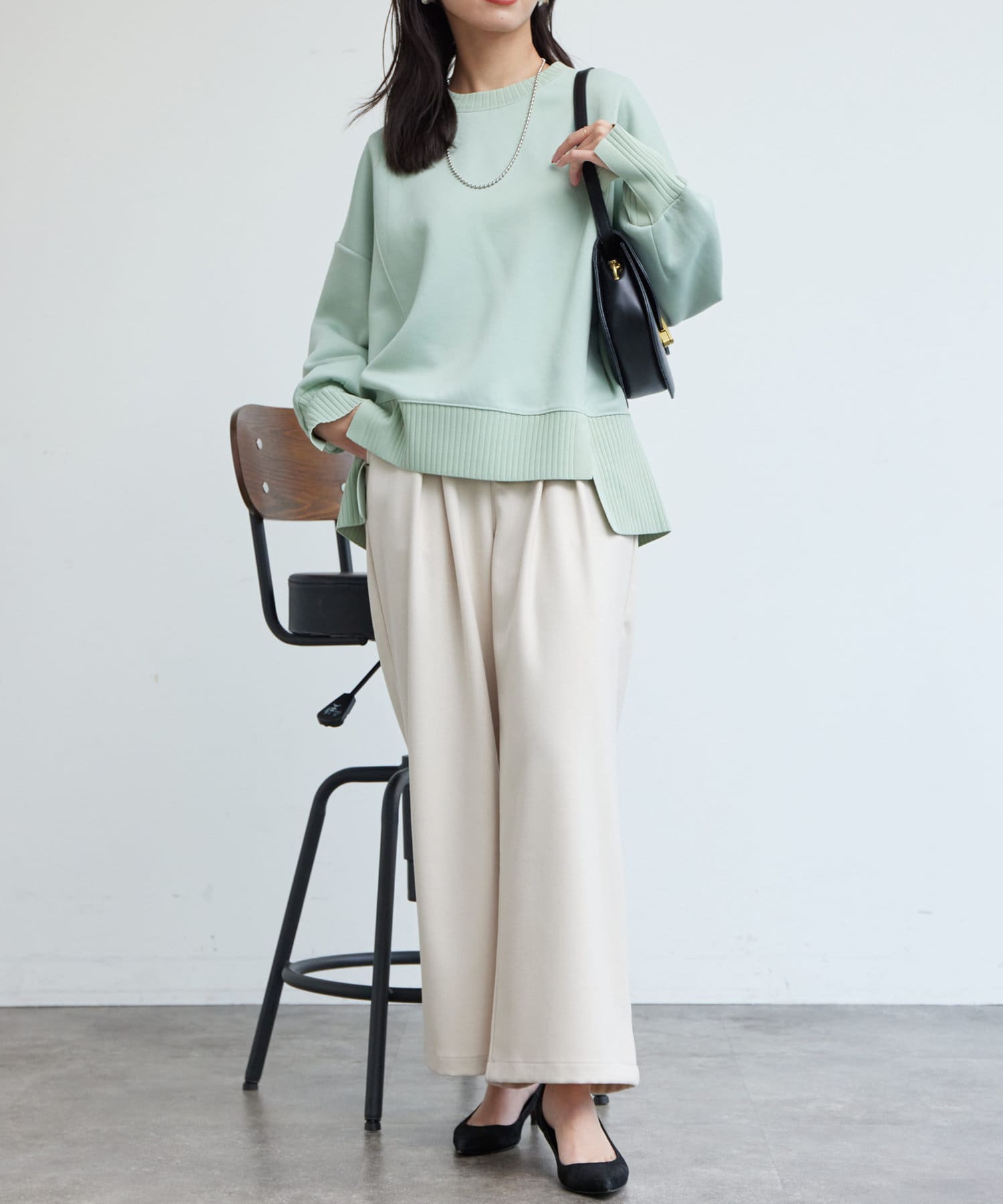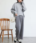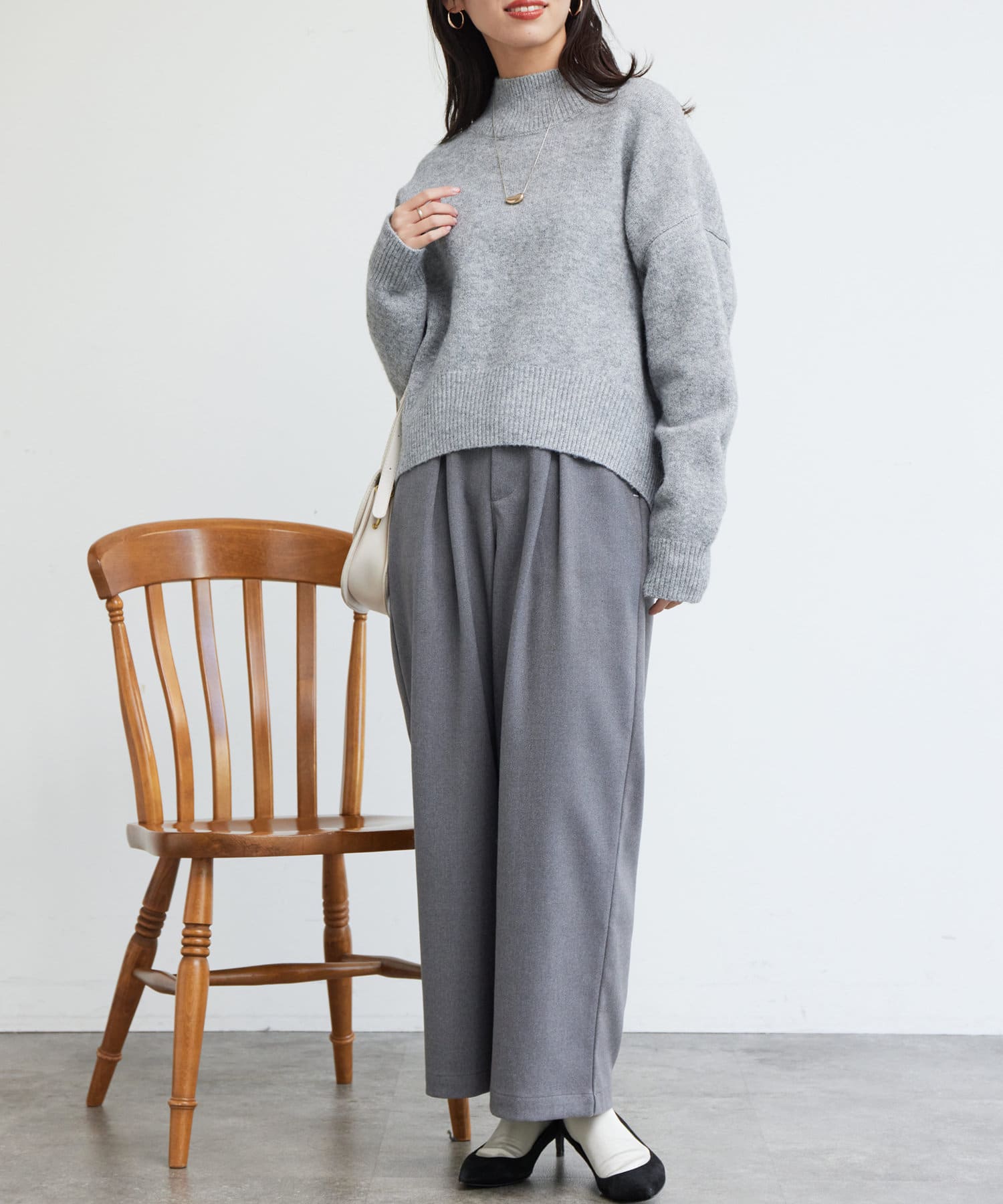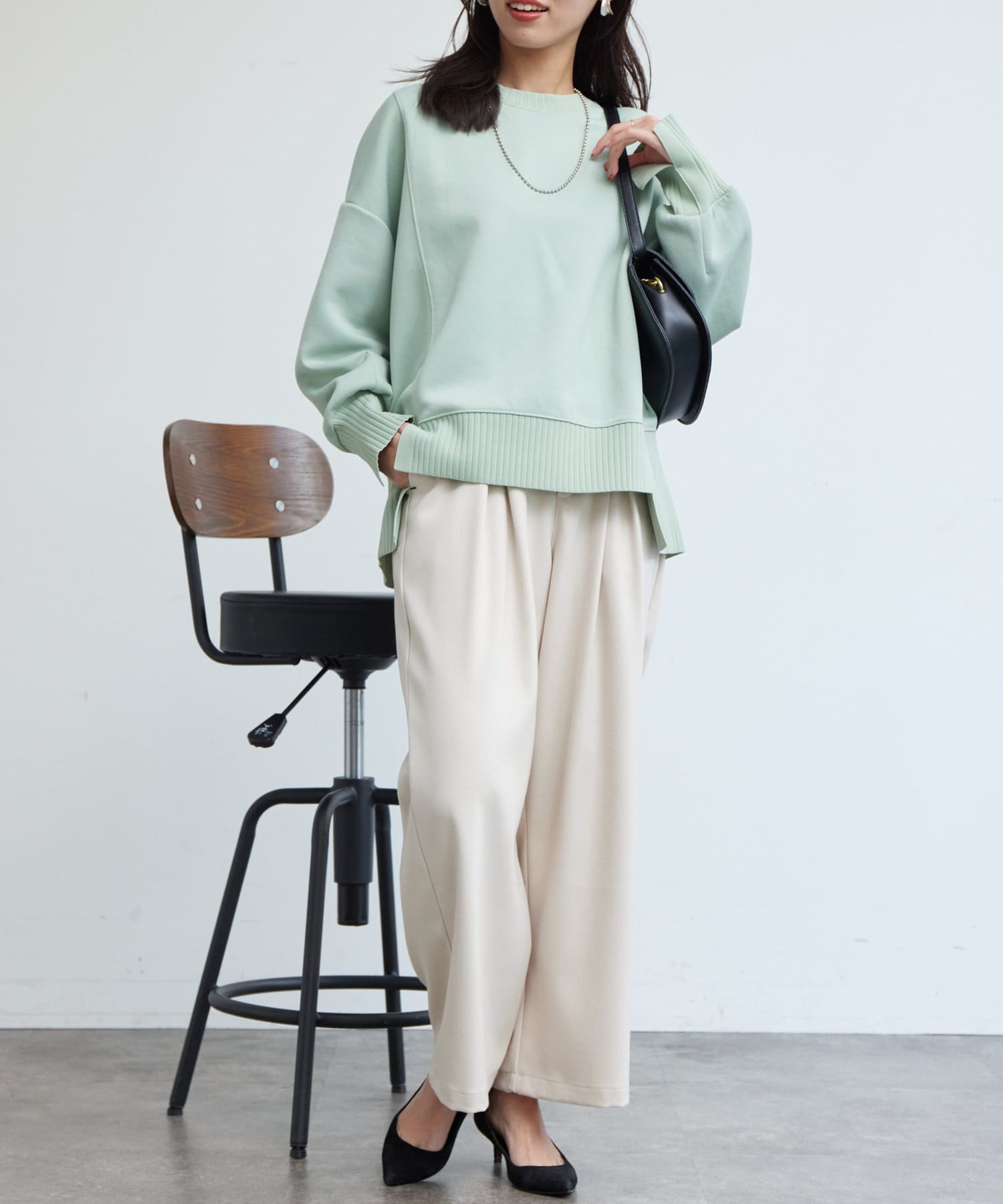ステッチ入りがポイント!タックの入ったスッキリワイドパンツ