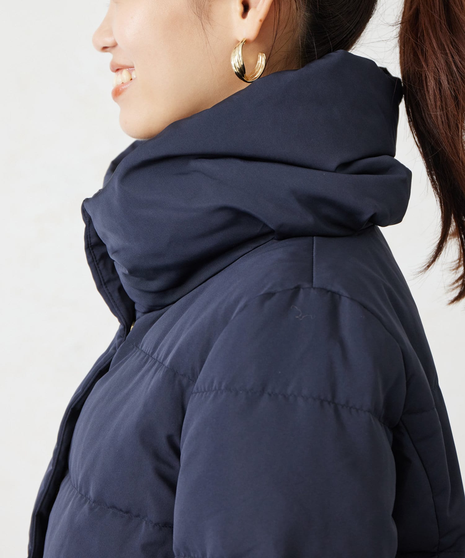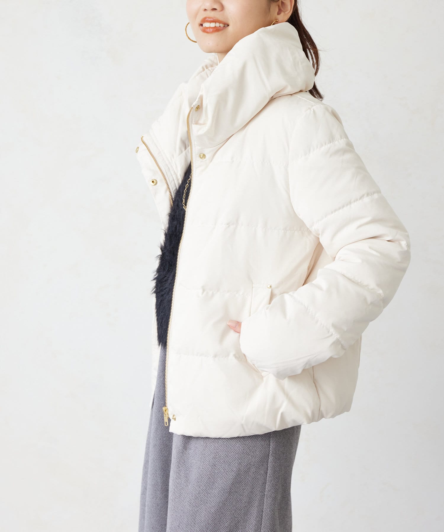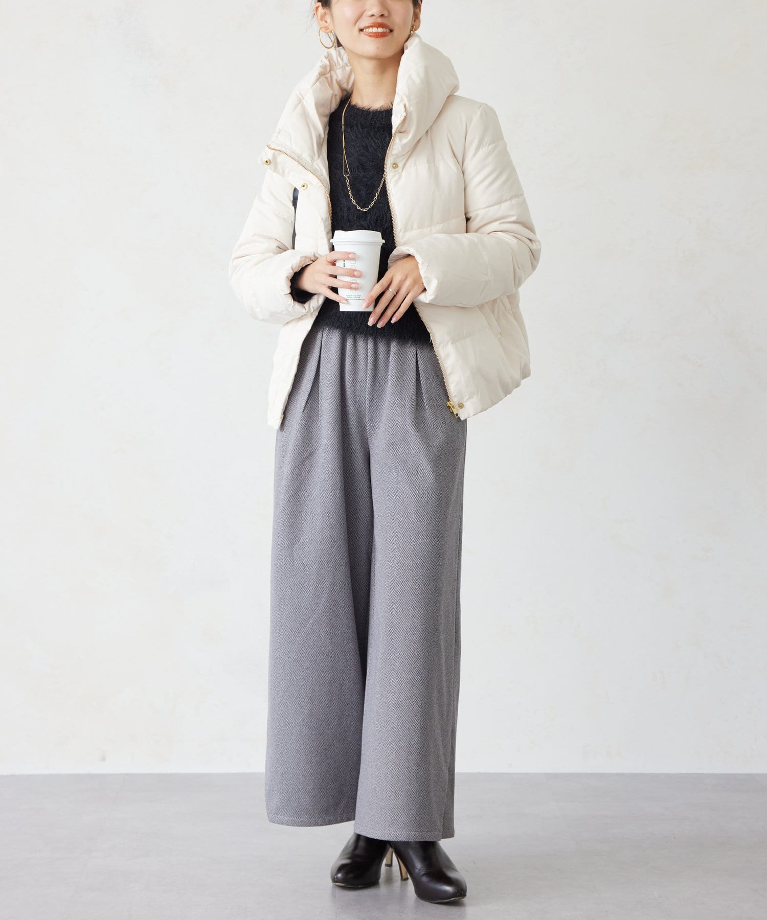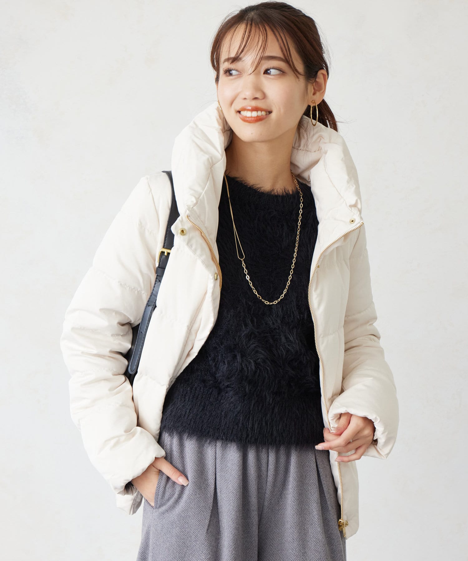 ボリューミーな襟で首元が暖かく小顔効果も◎