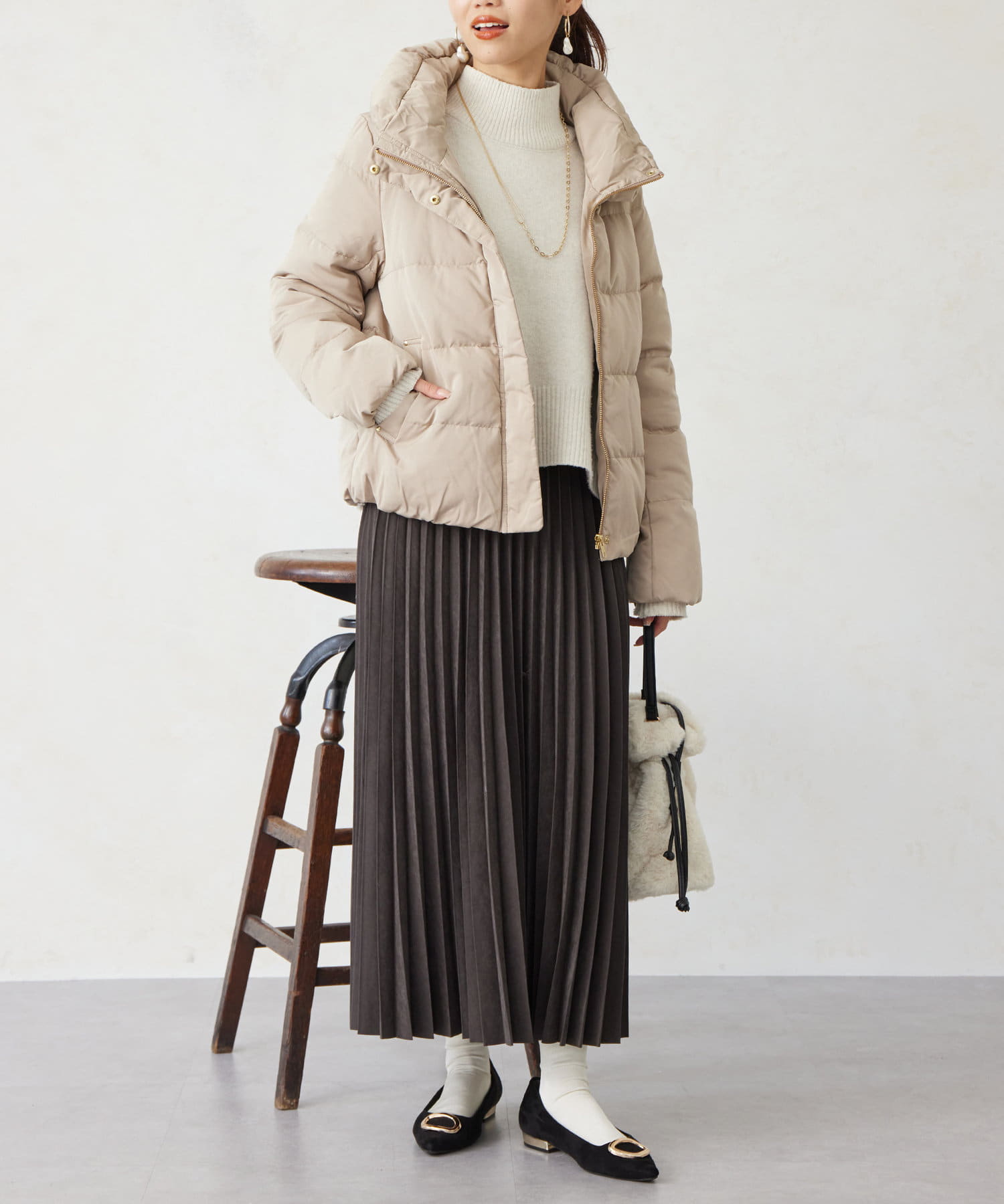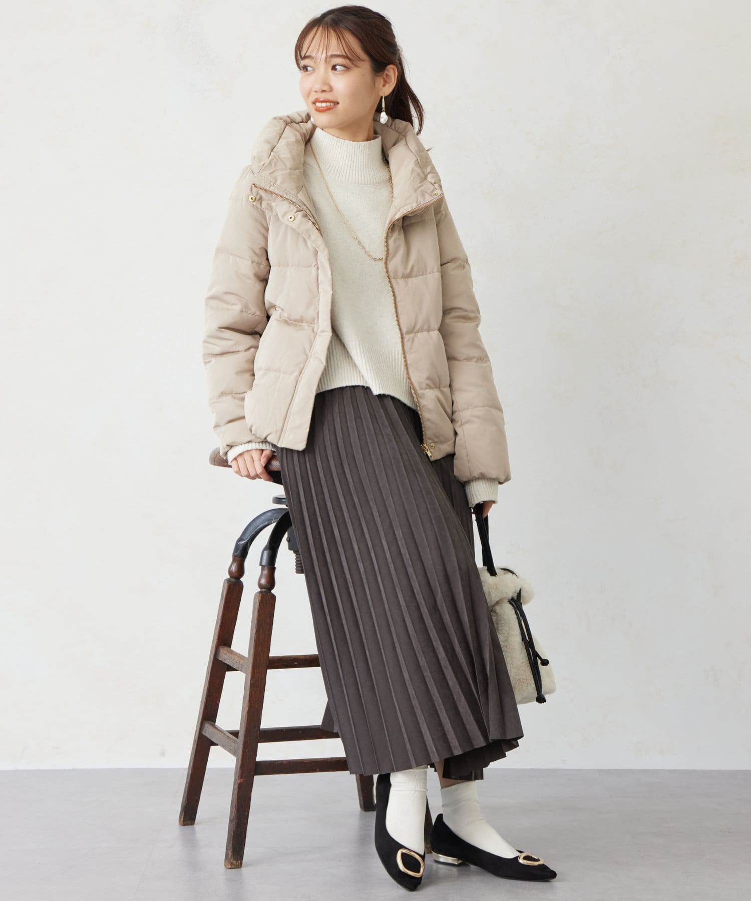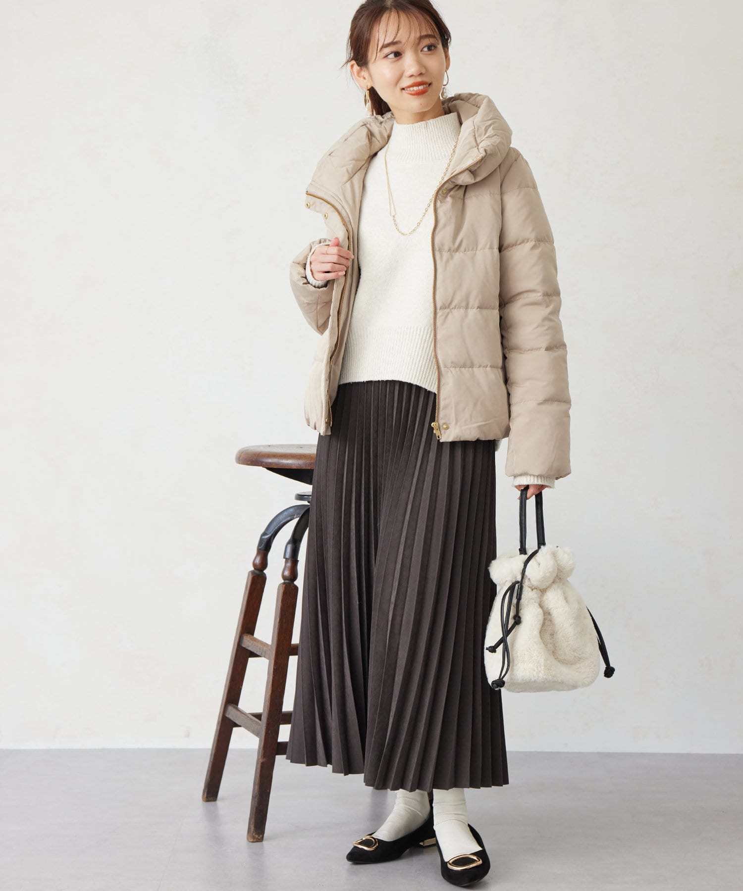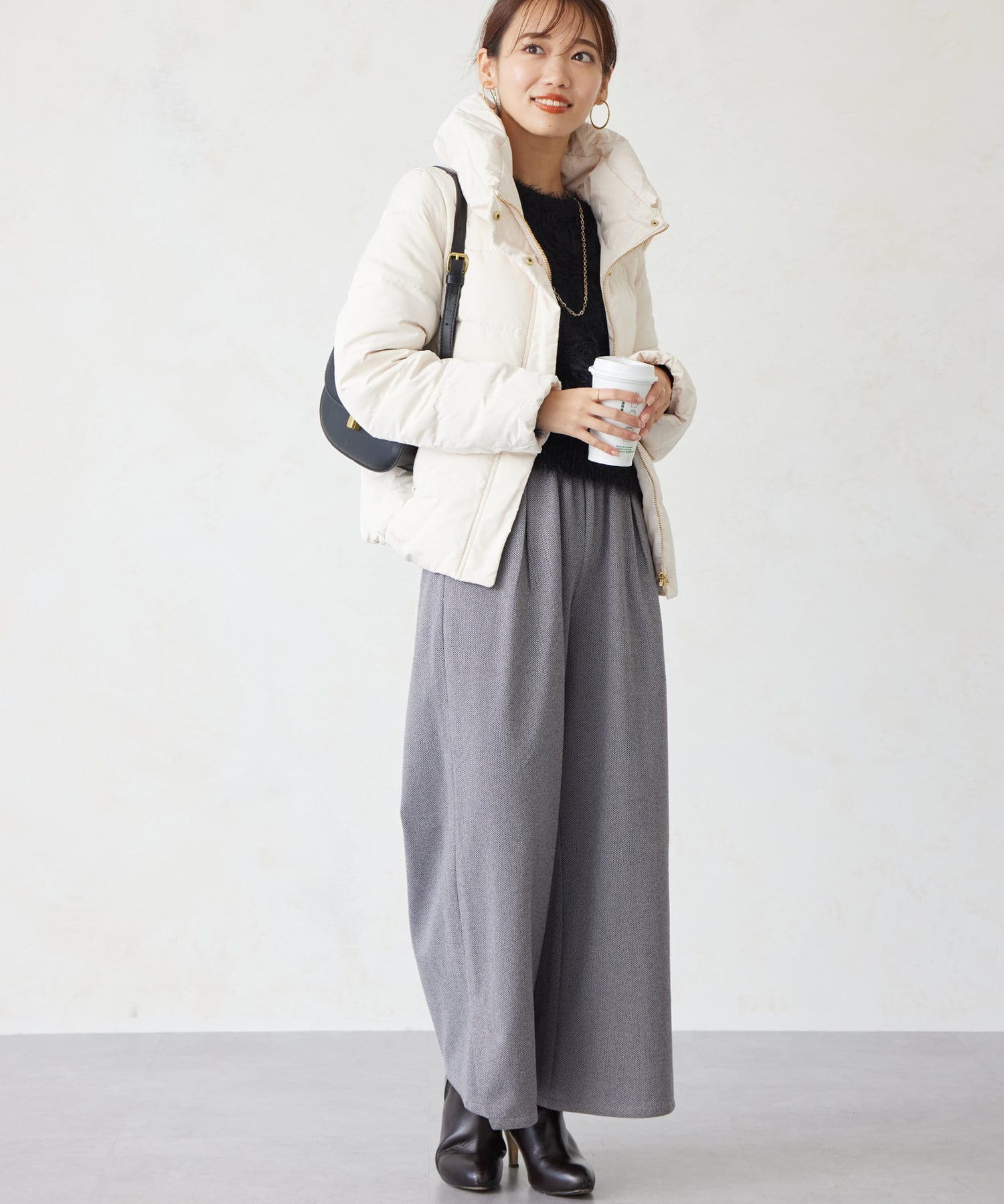 ボリューミーな襟で首元が暖かく小顔効果も◎