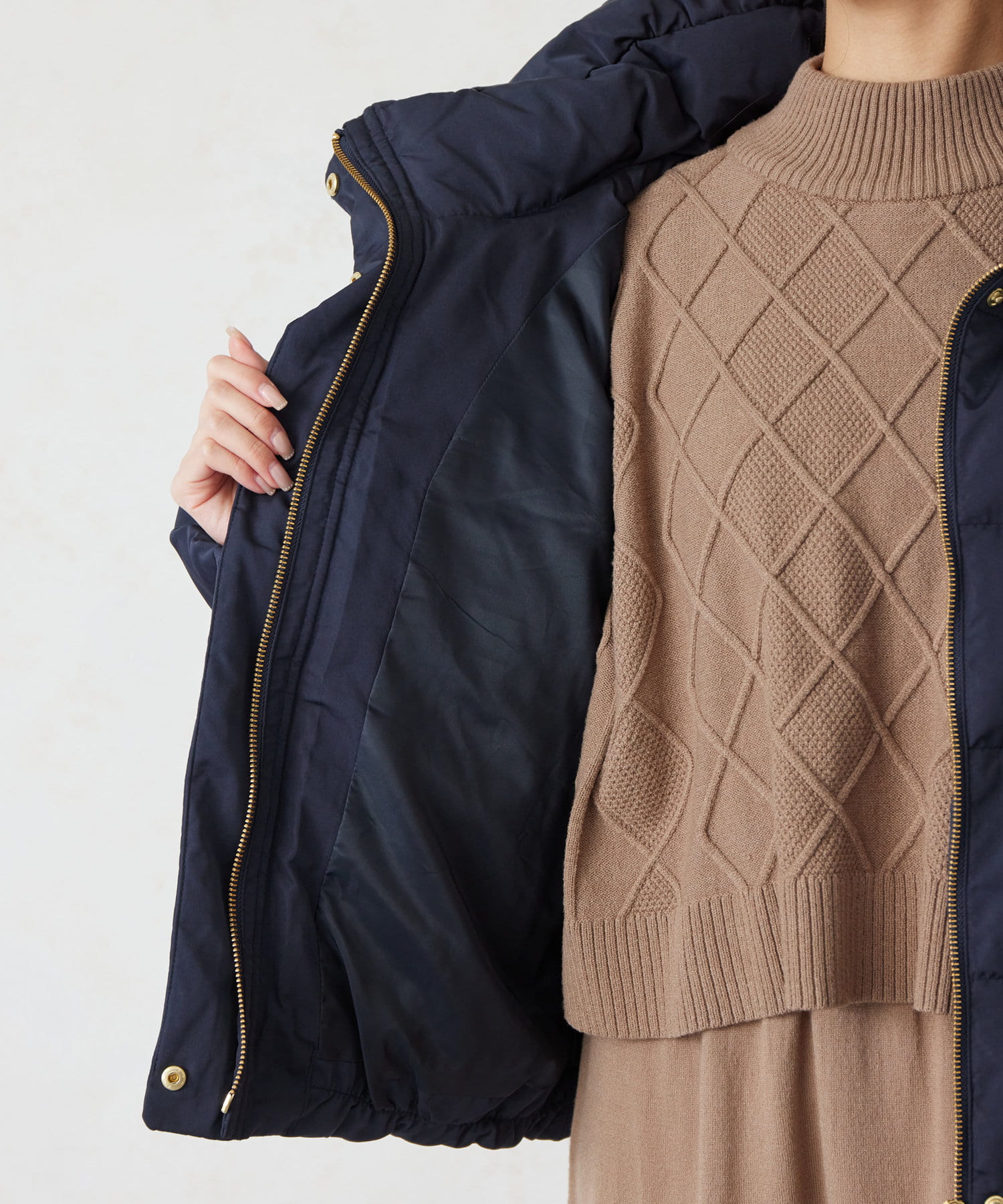 表地ポリエステル100% 裏地ポリエステル100% 詰物ダウン50%フェザー50%