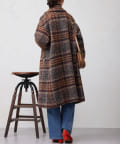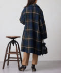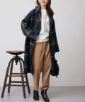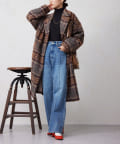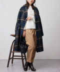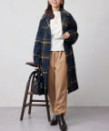 チェック柄がスタイリングのアクセントになるビッグカラーコート。