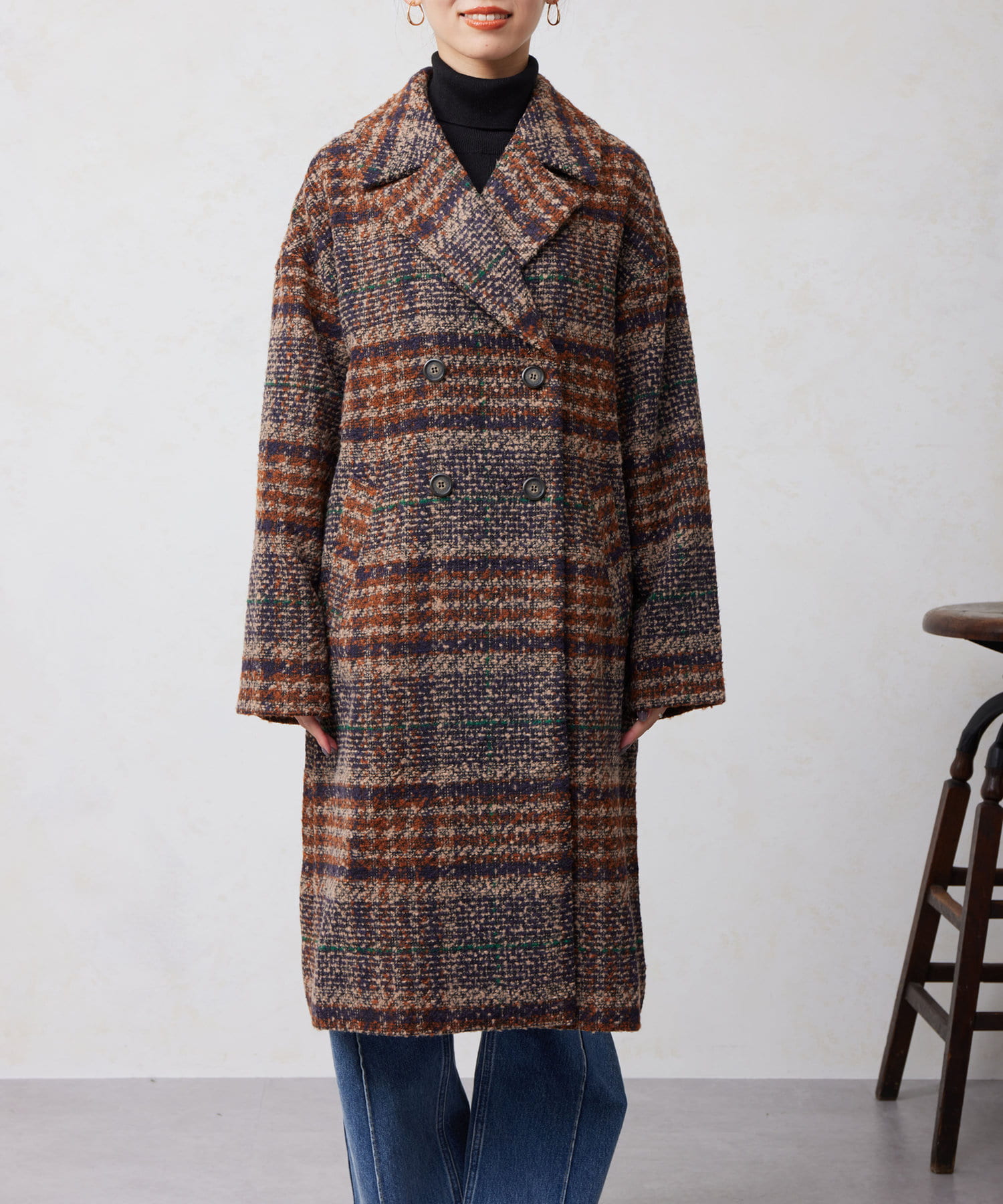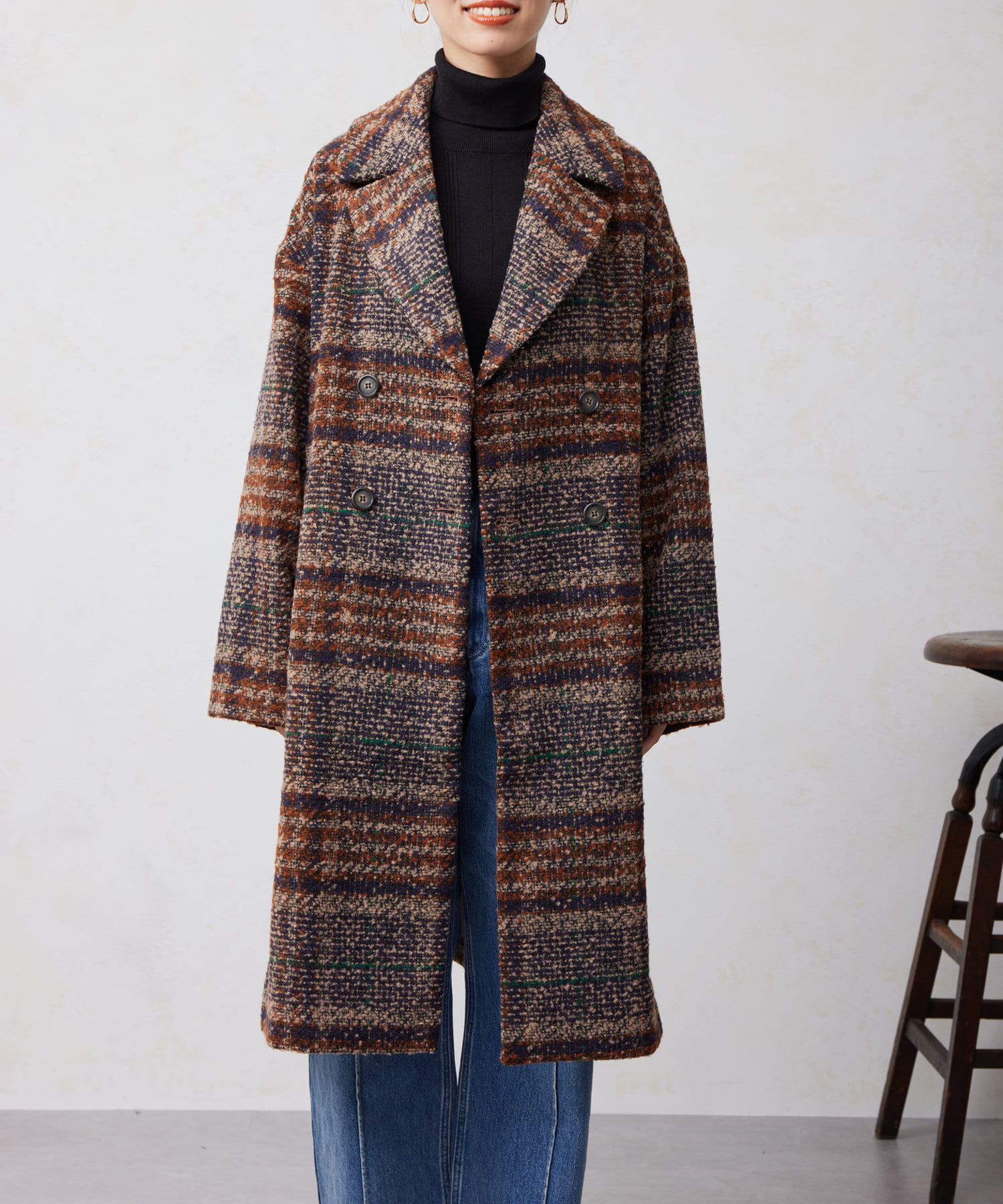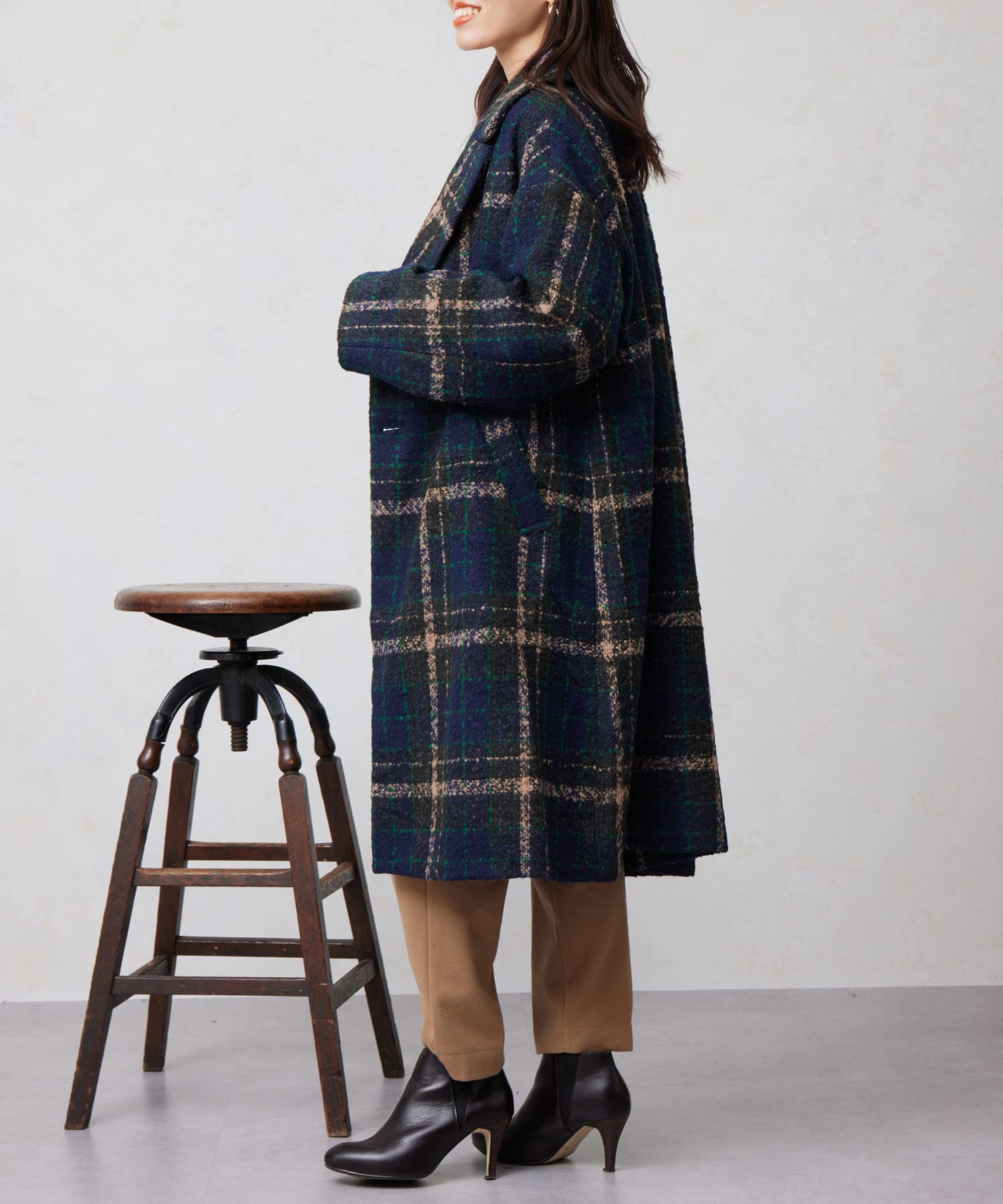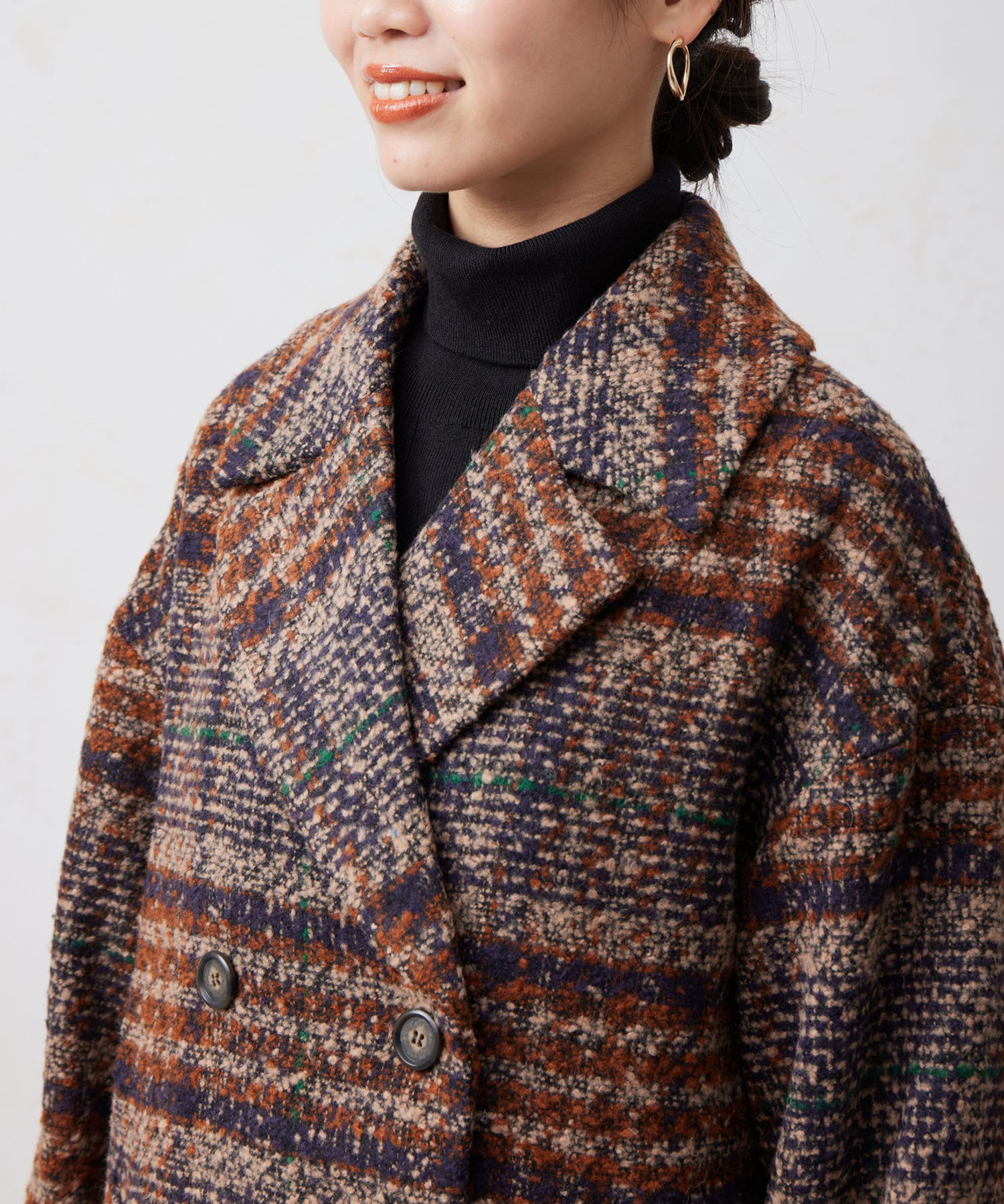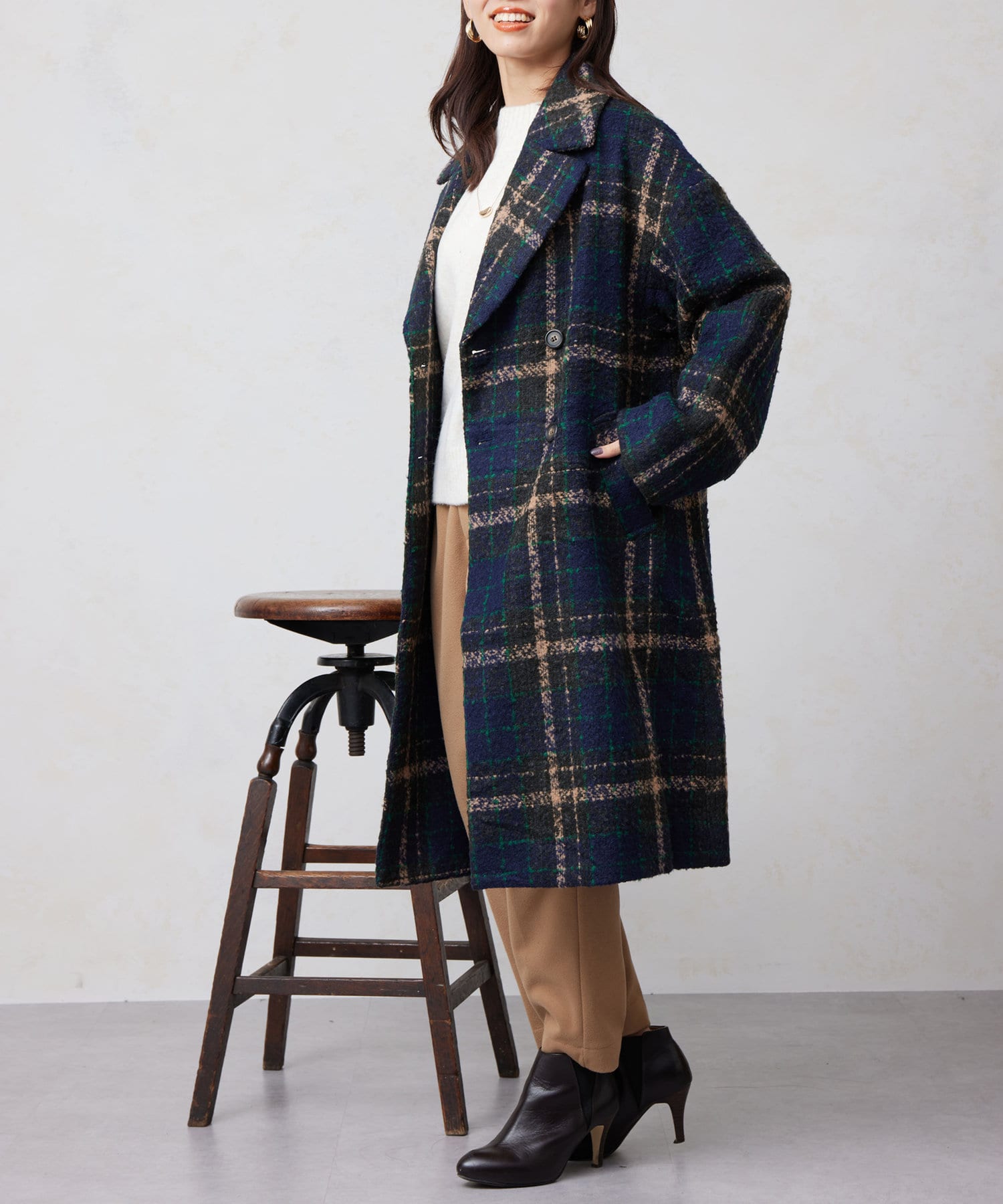 チェック×ブークレ素材が存在感を放つ主役級コート