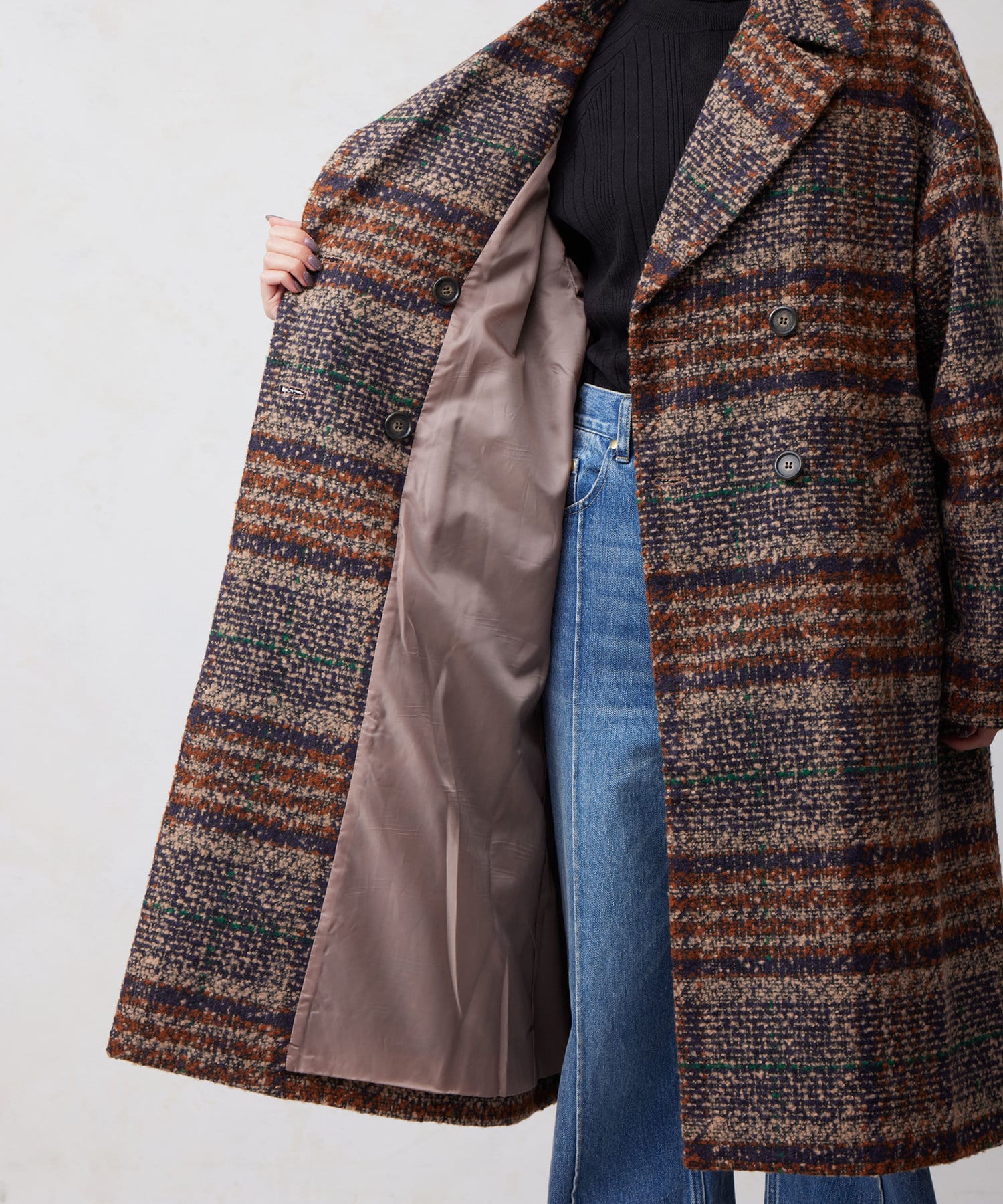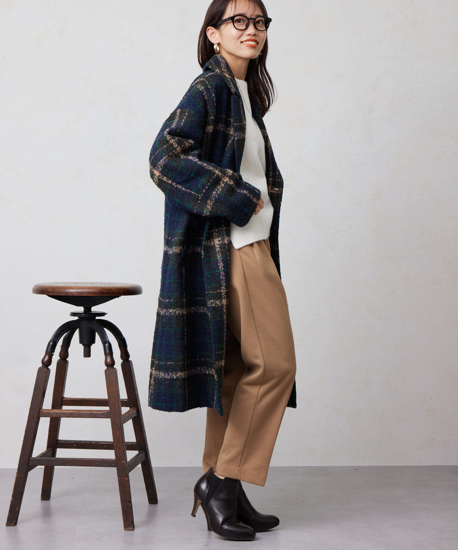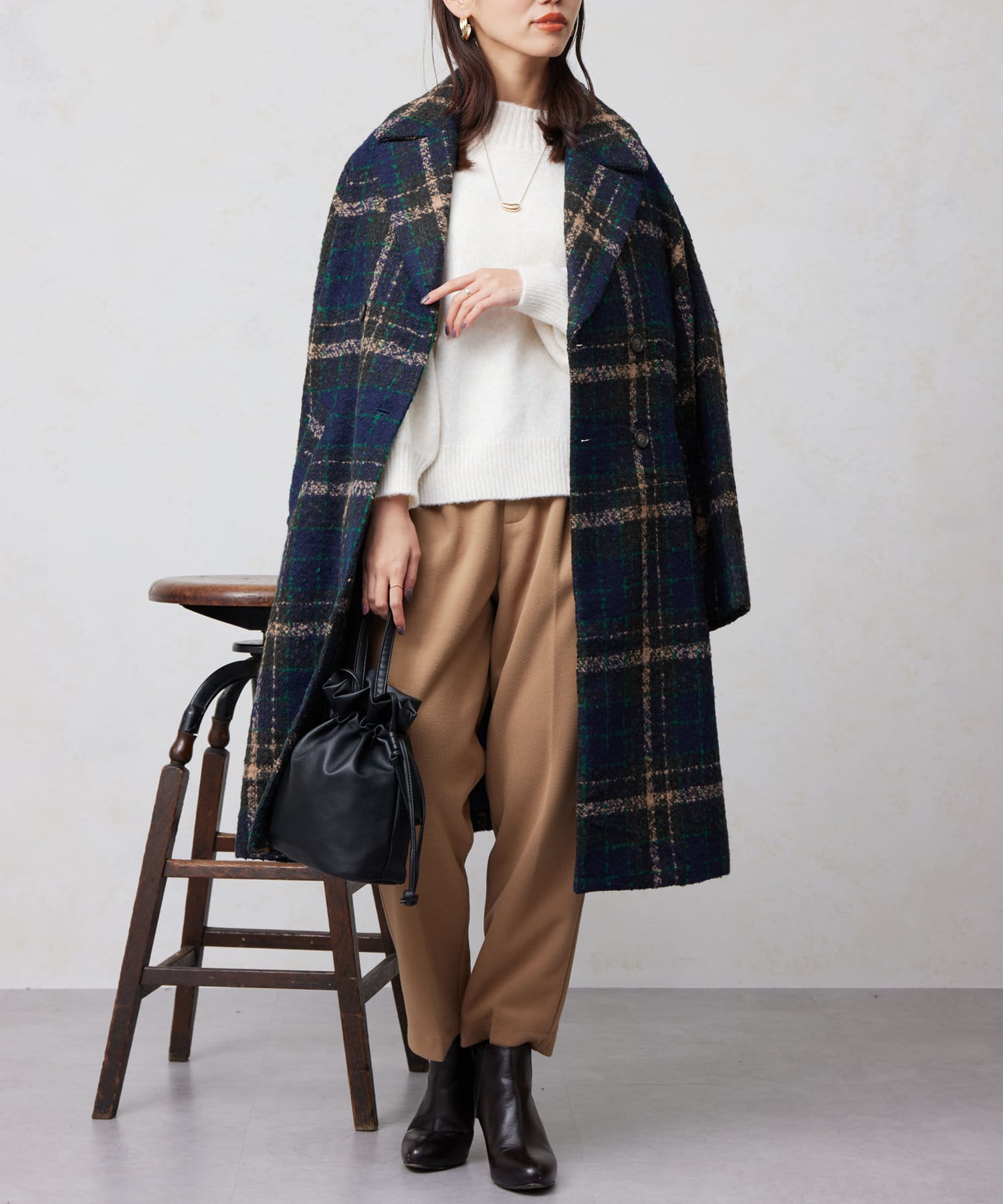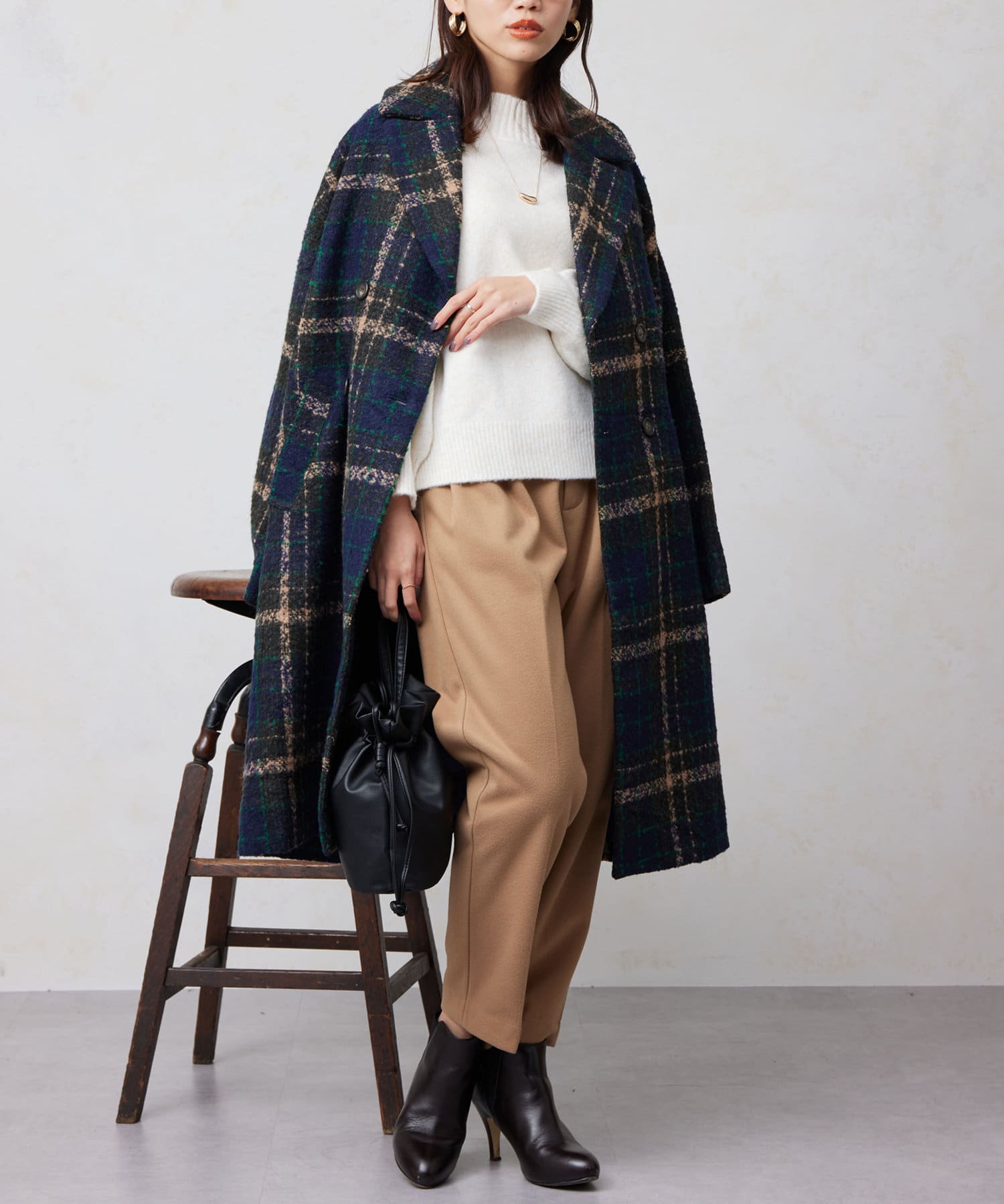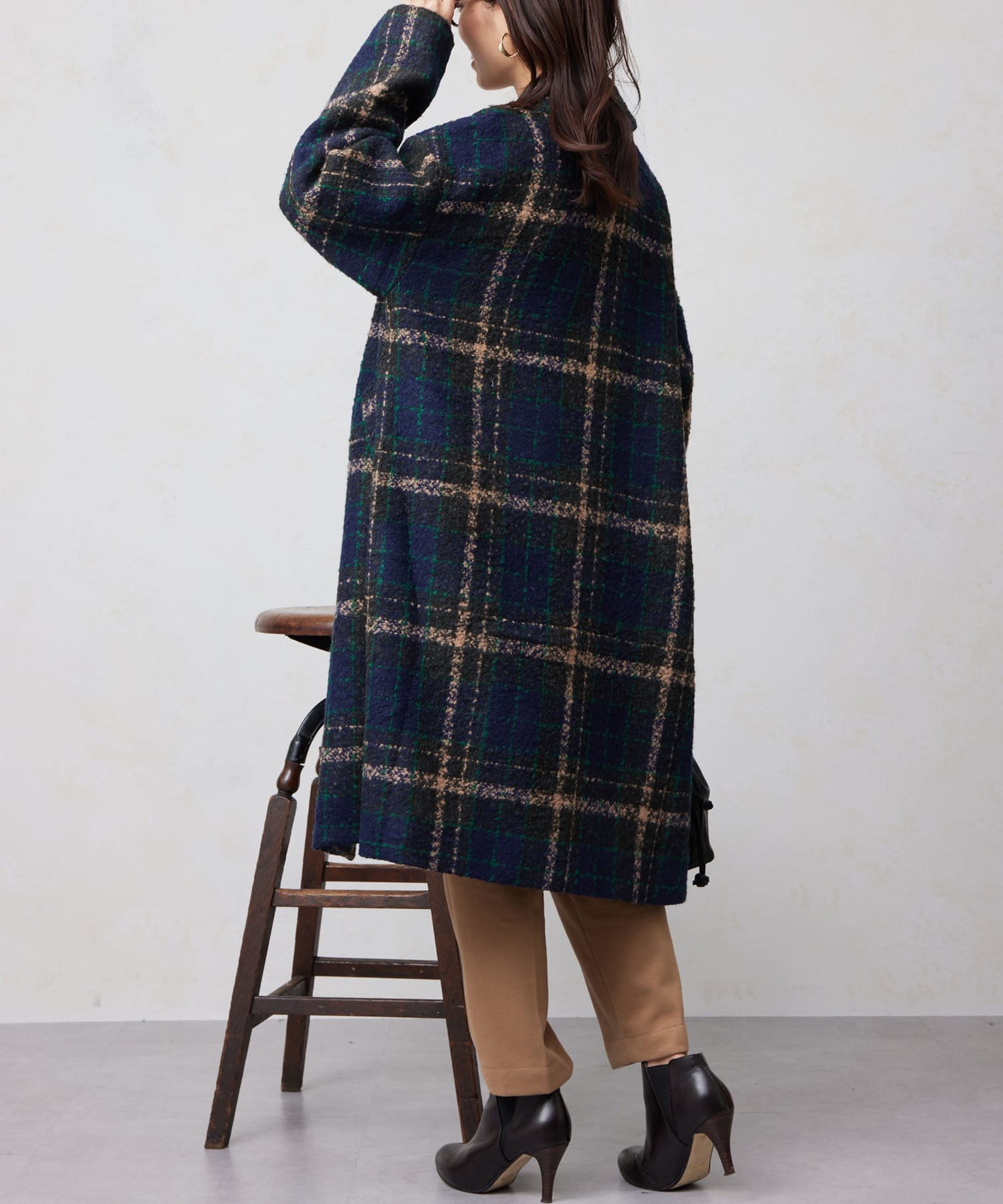 チェック×ブークレ素材が存在感を放つ主役級コート