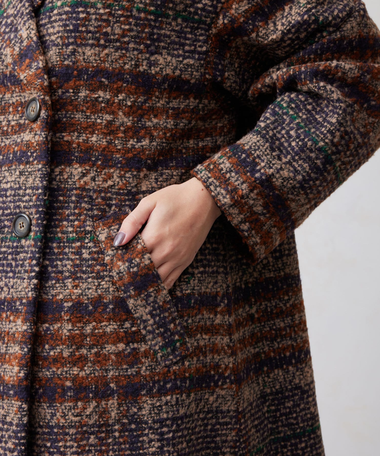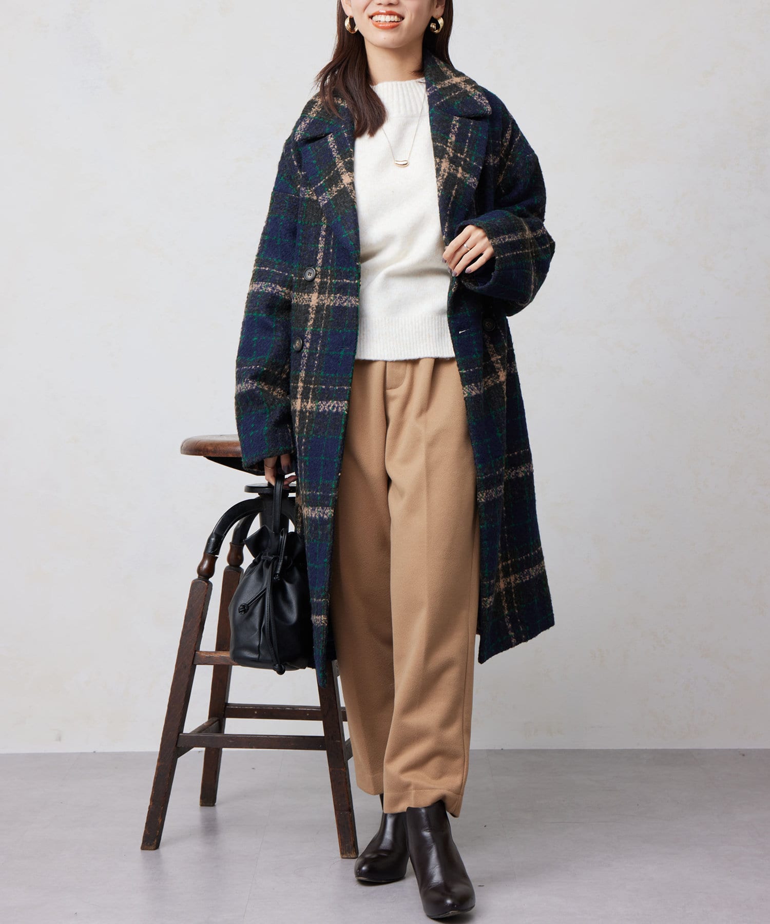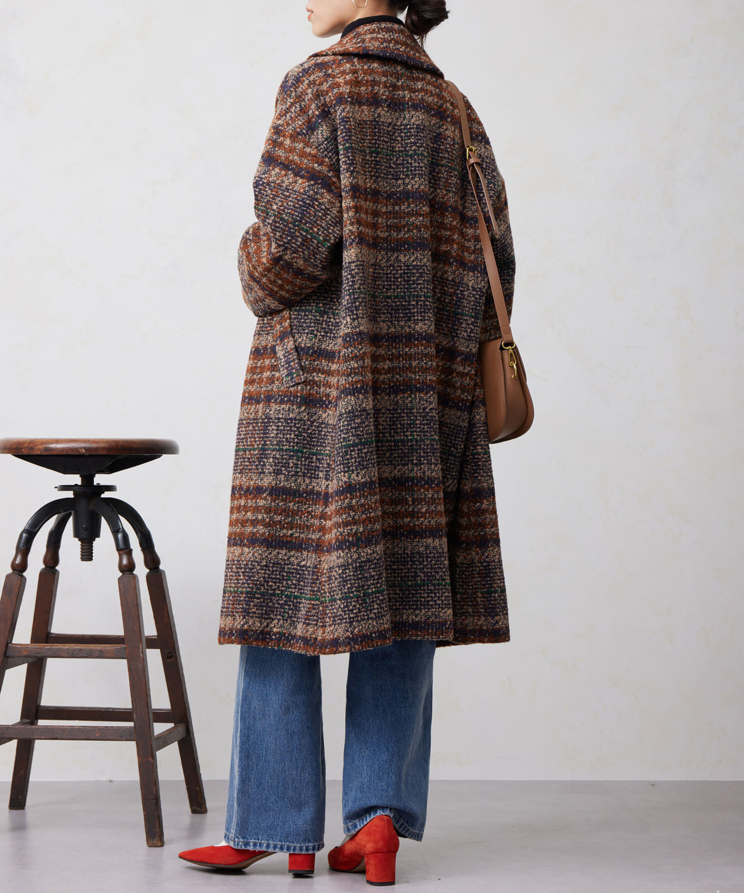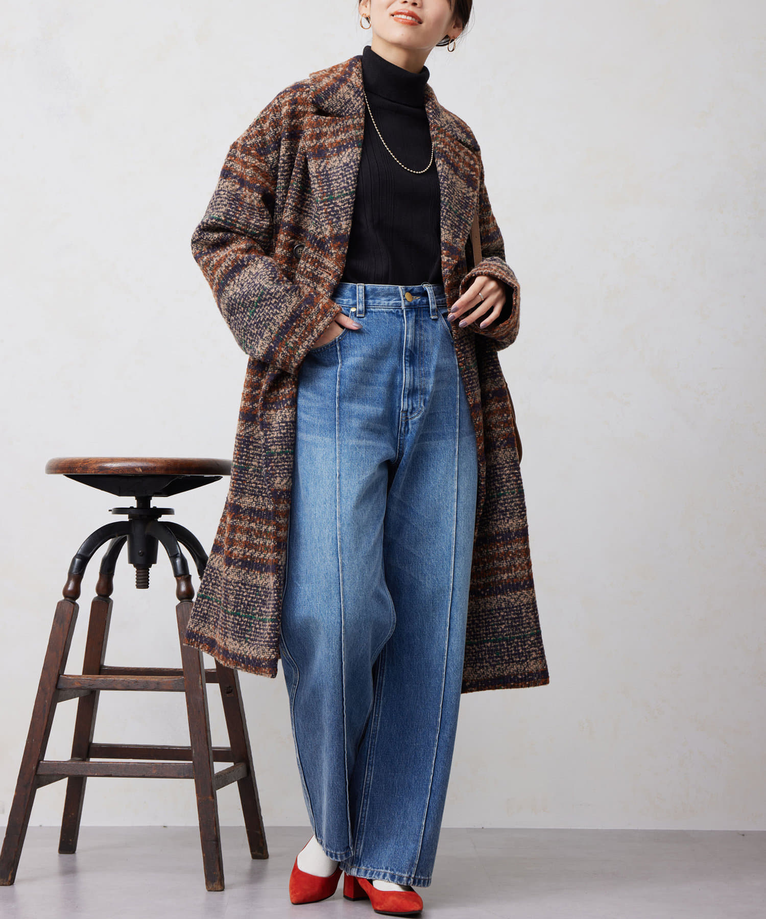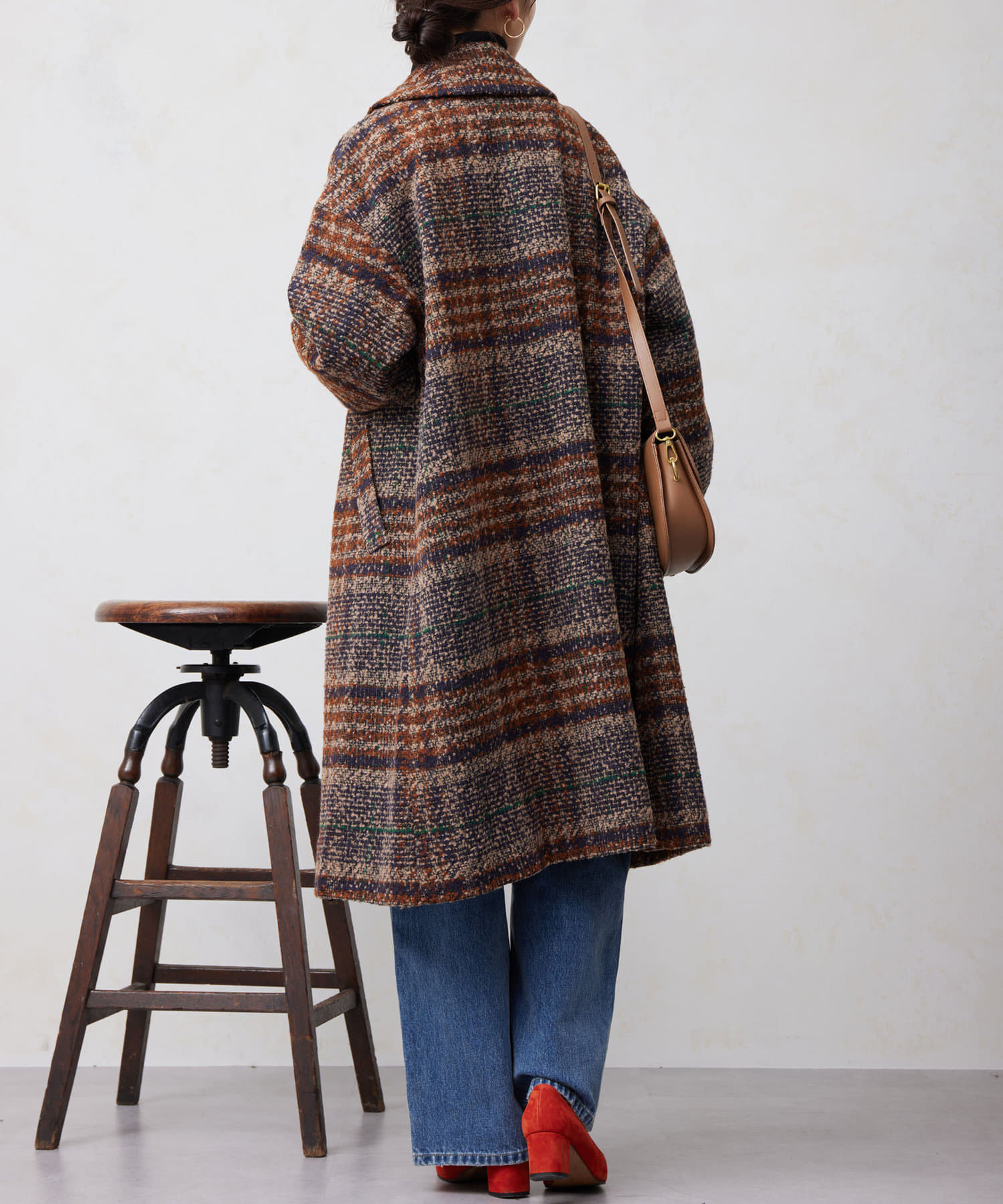 チェック×ブークレ素材が存在感を放つ主役級コート