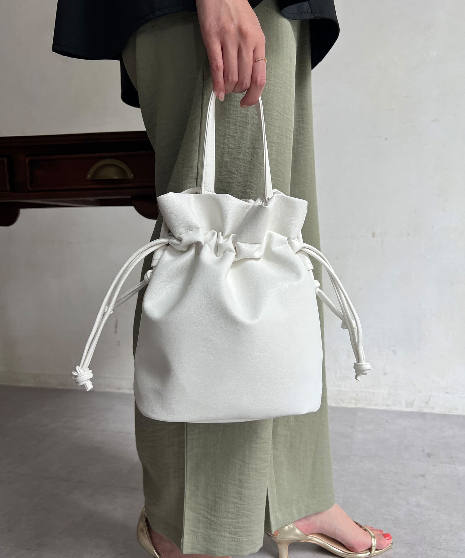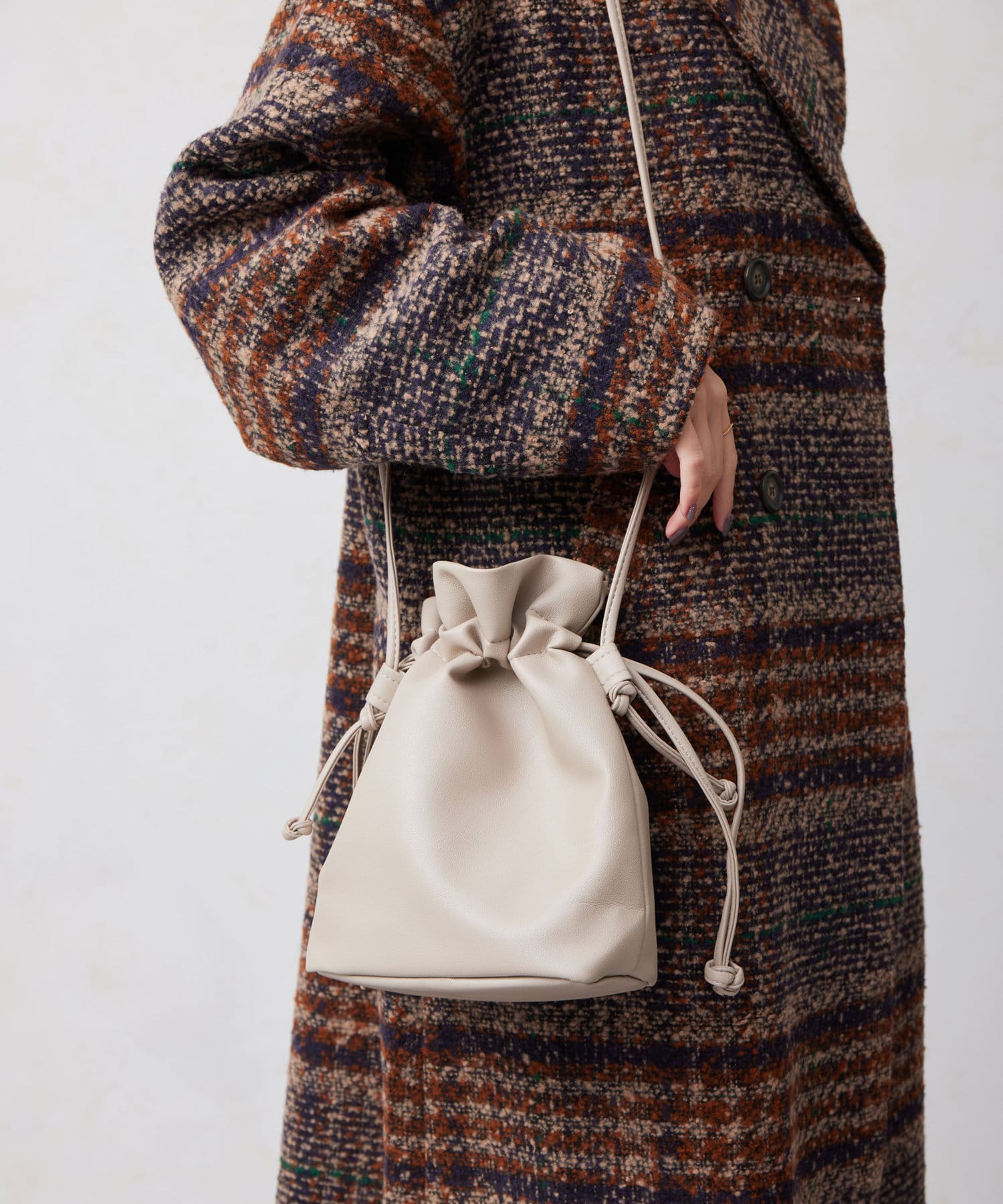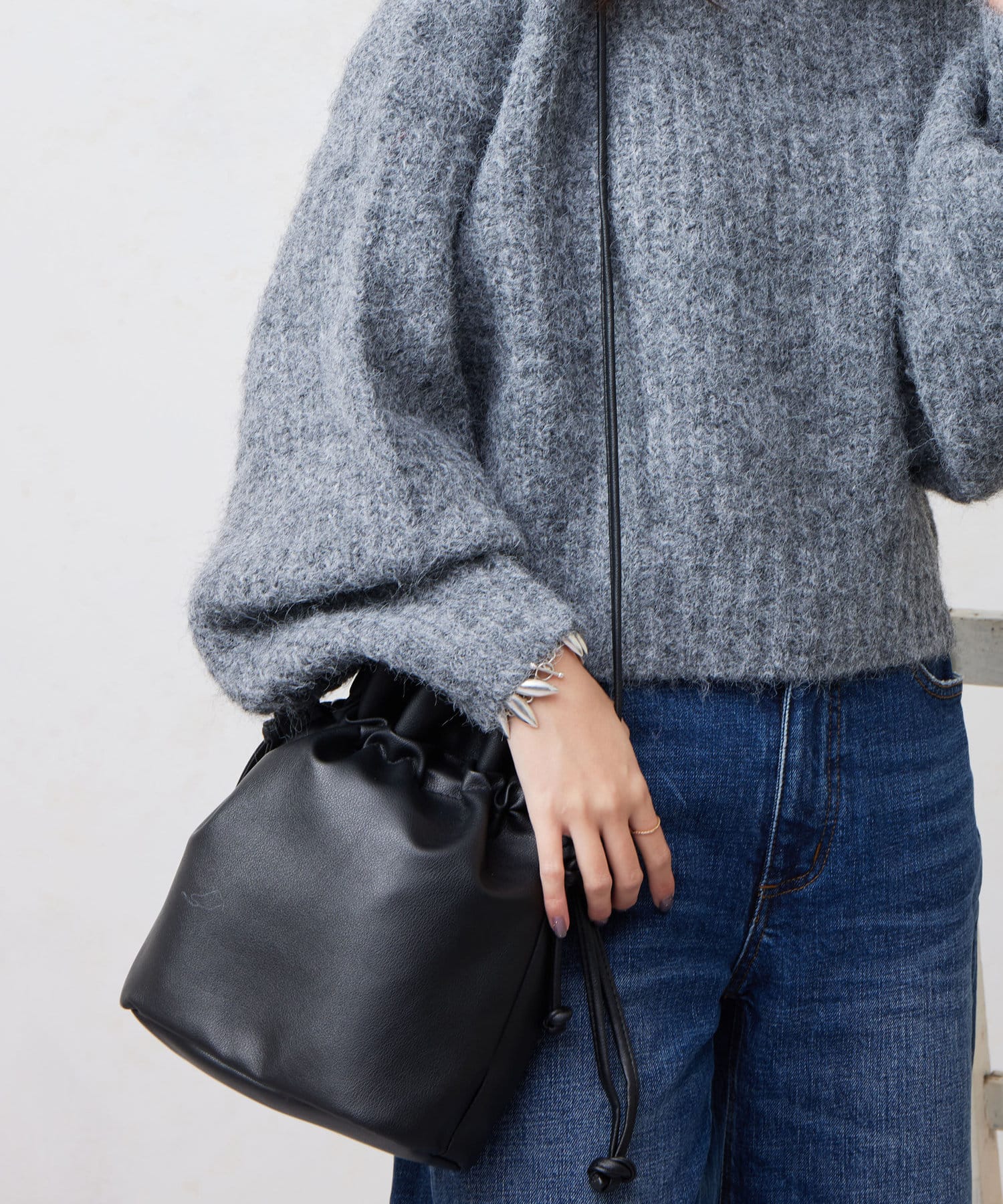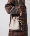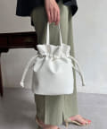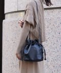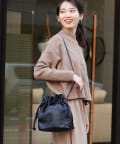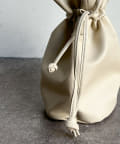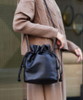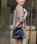 巾着の丸みのあるデザインが女性らしい印象に。