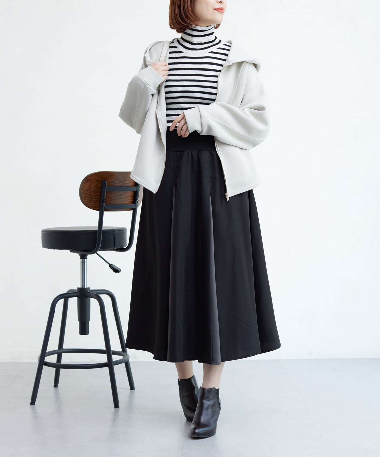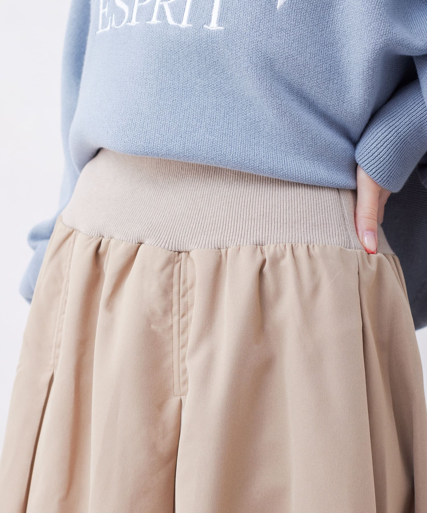 ウエスト太めのゴム仕様。ストレスなく着用でき、