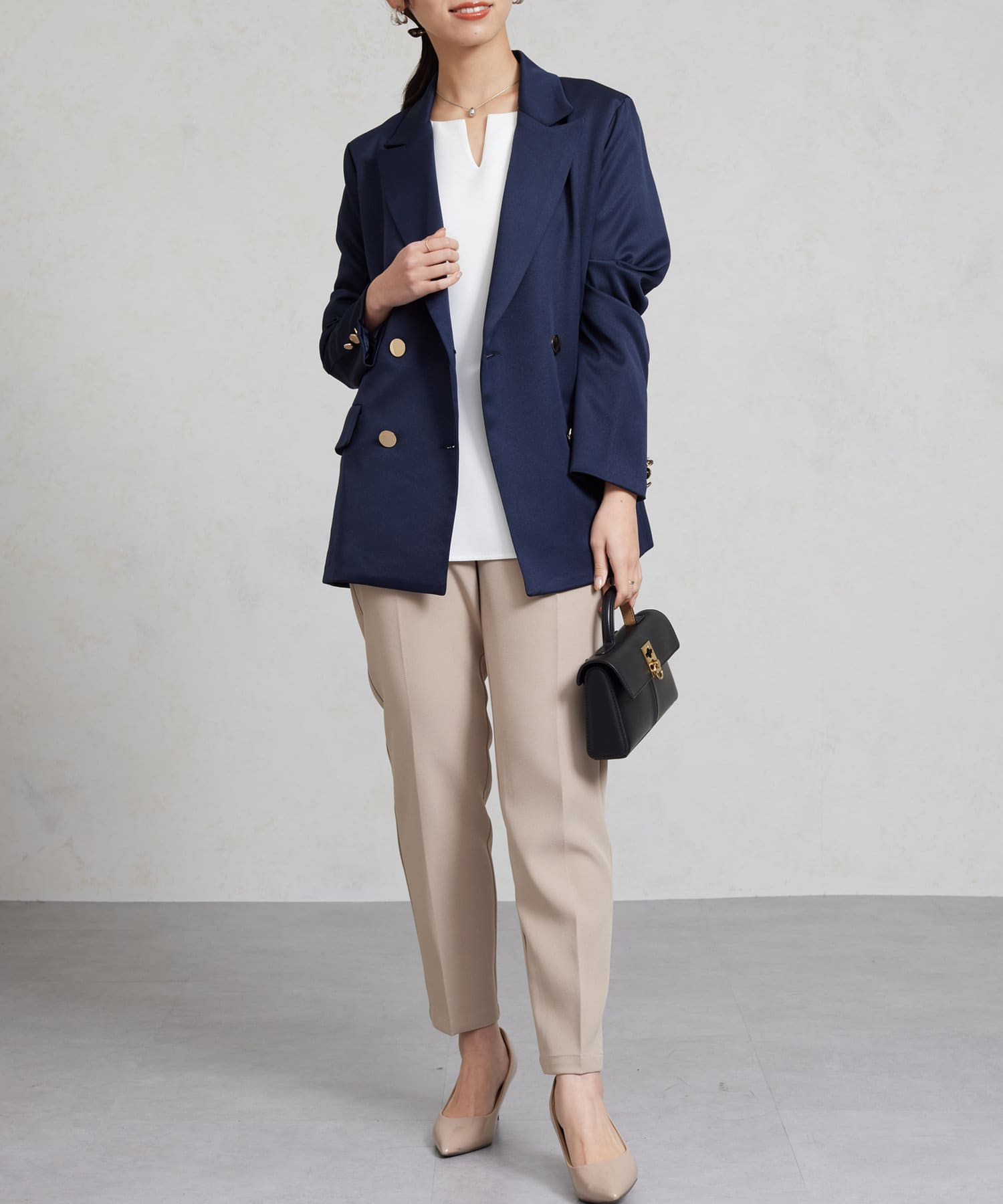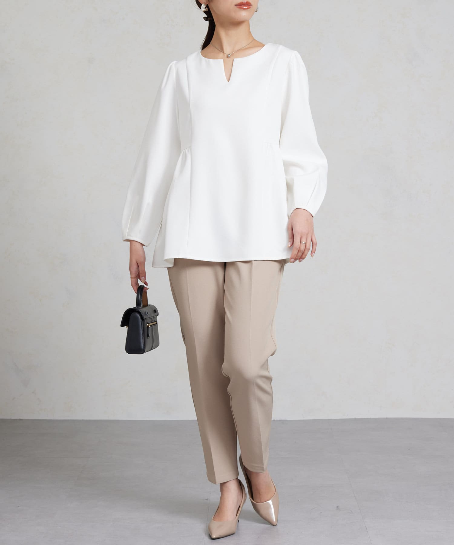同生地のペプラムブラウスと合わせてセレモニースタイルや