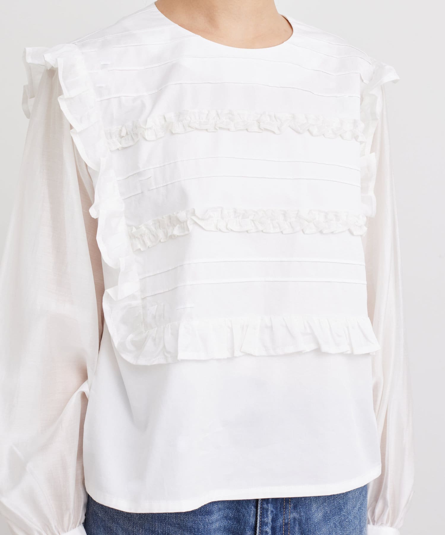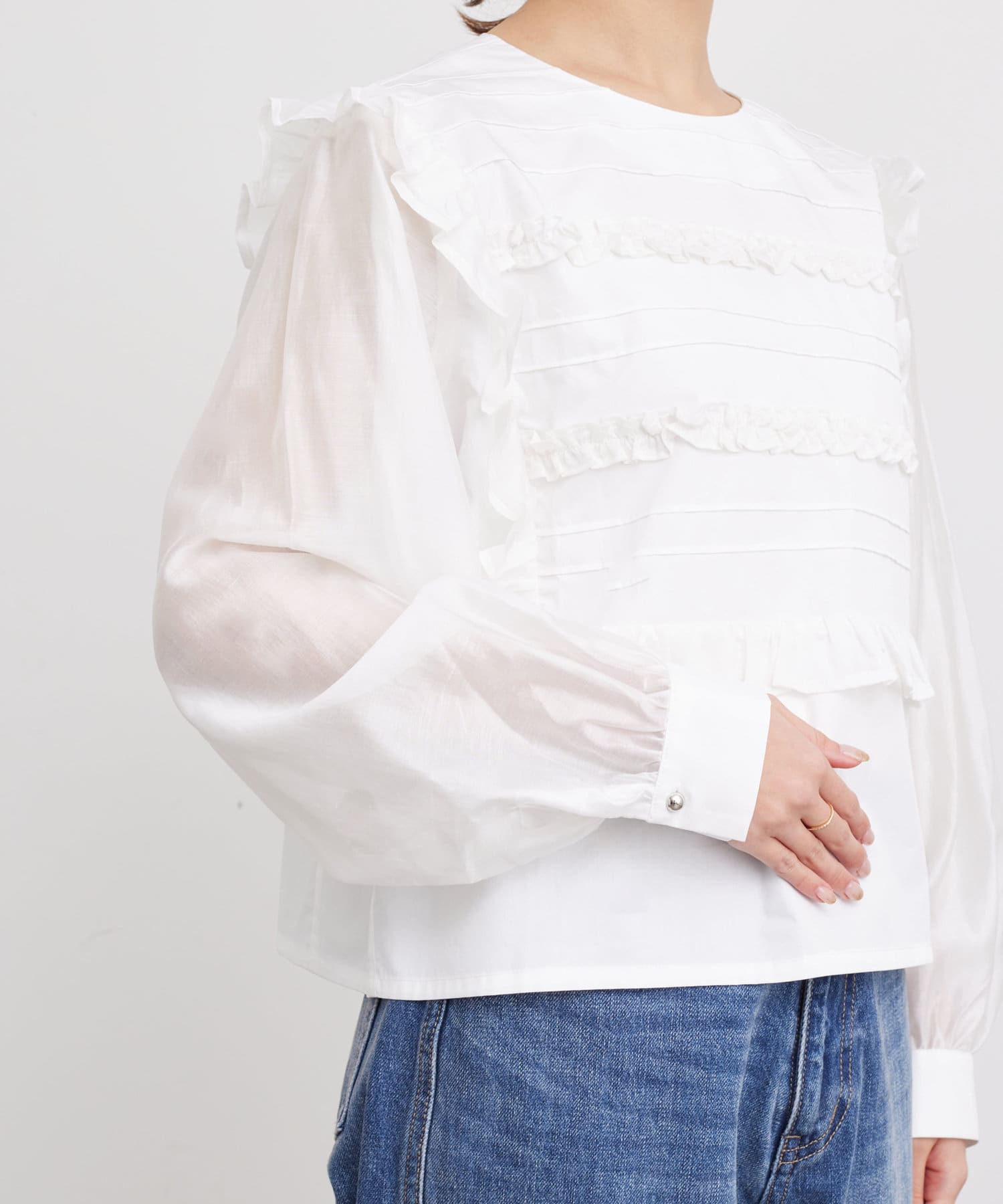 【セレモニー対応可】フロントフリル袖シアーシャツ