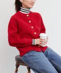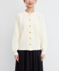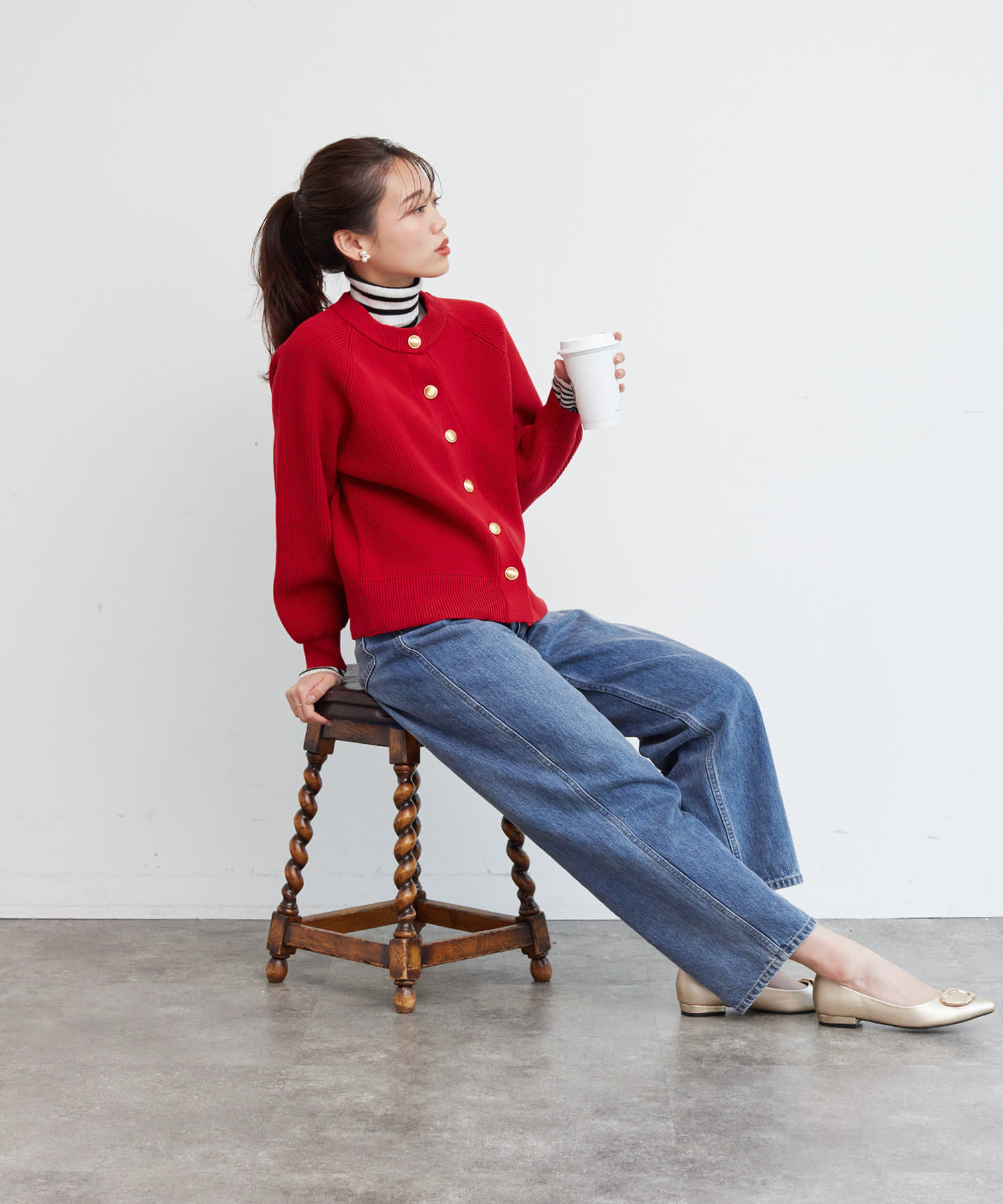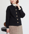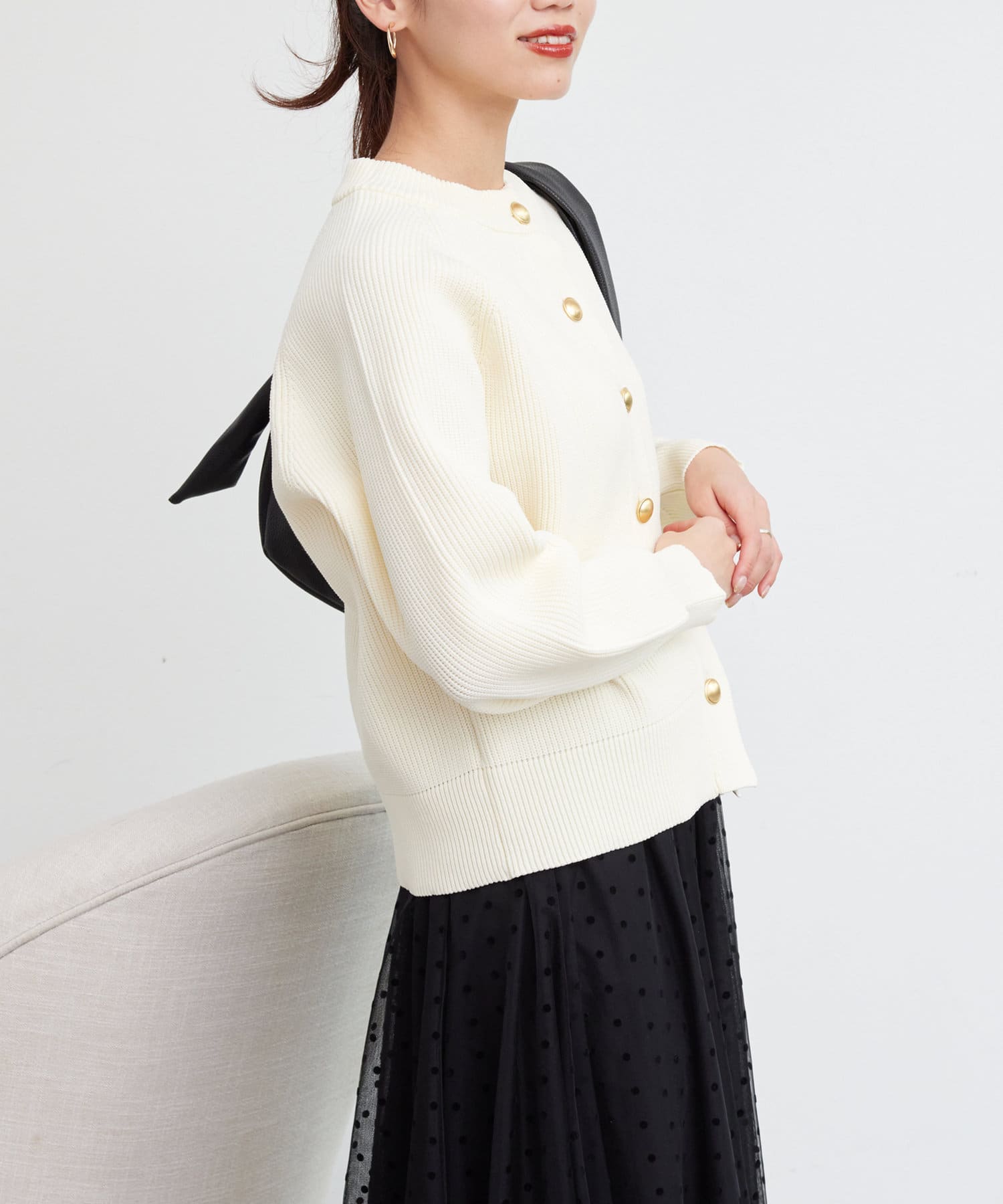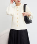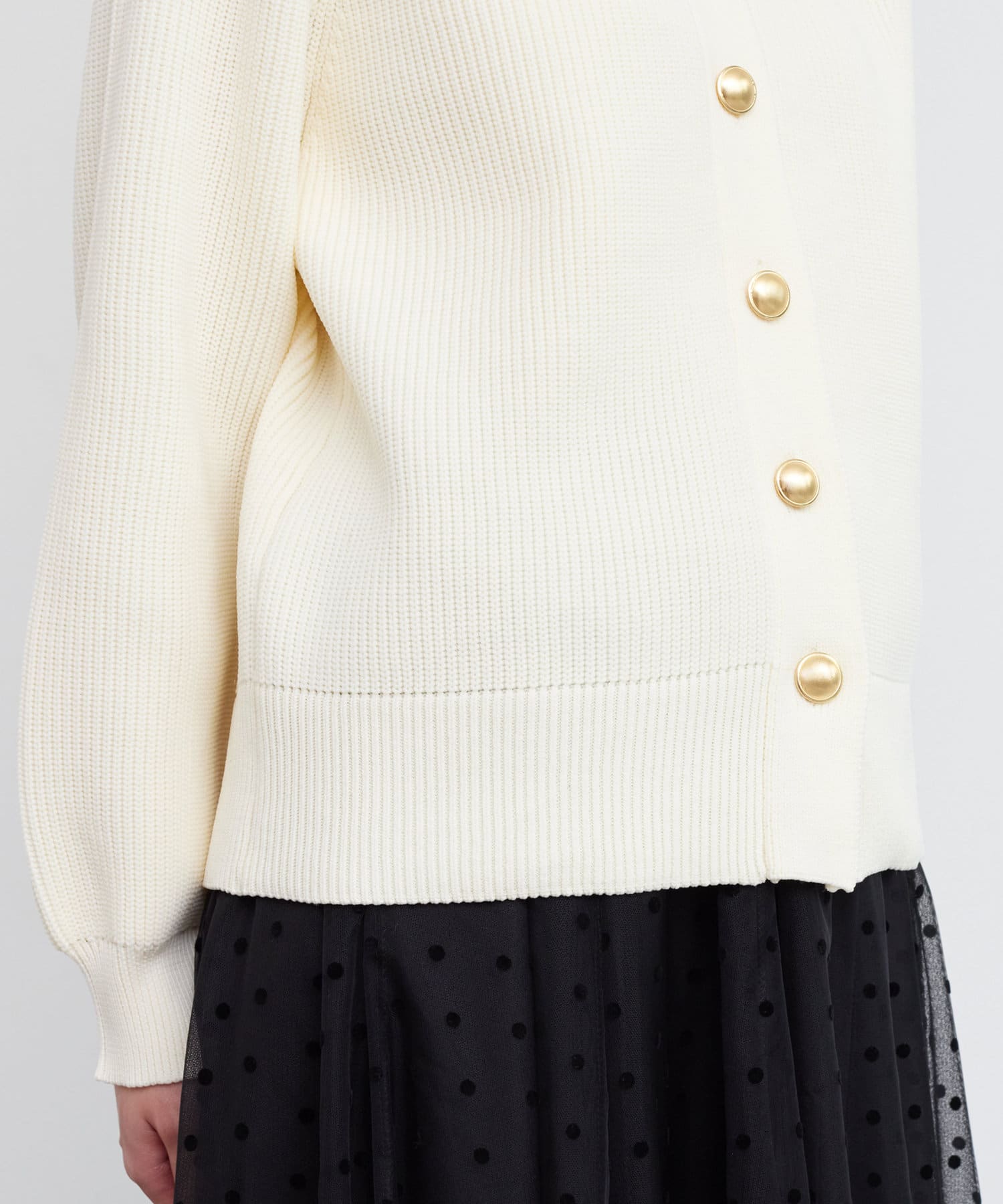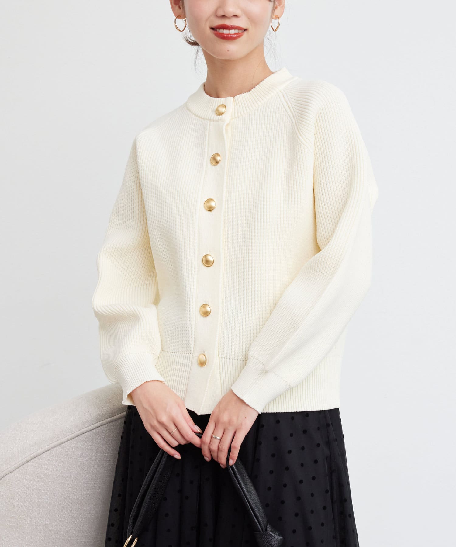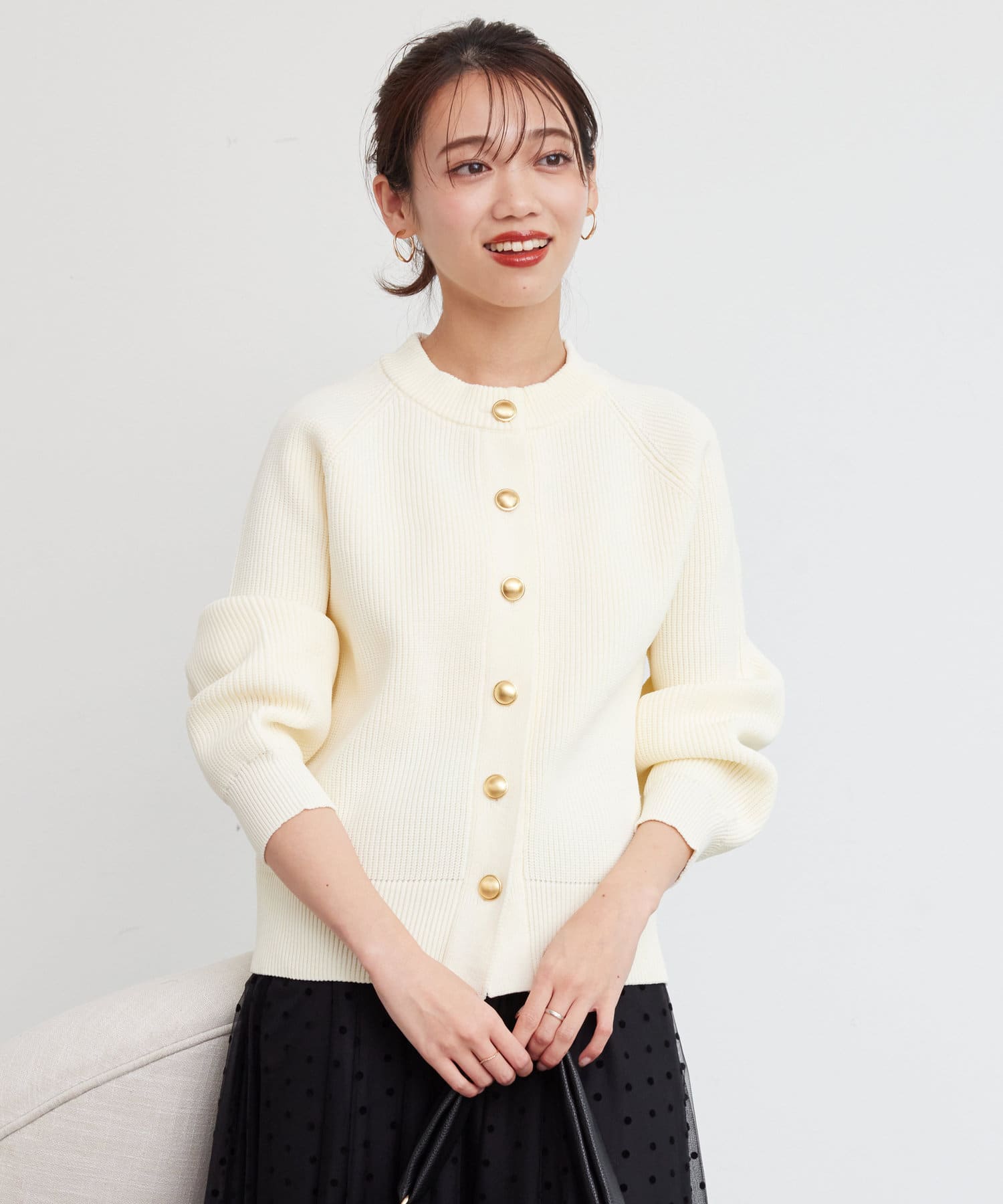 ゴールドボタンがアクセントの華やかなカーディガン。
