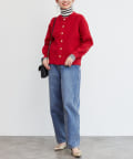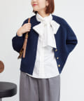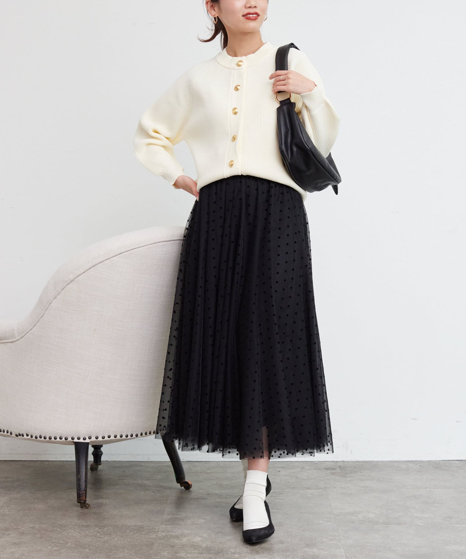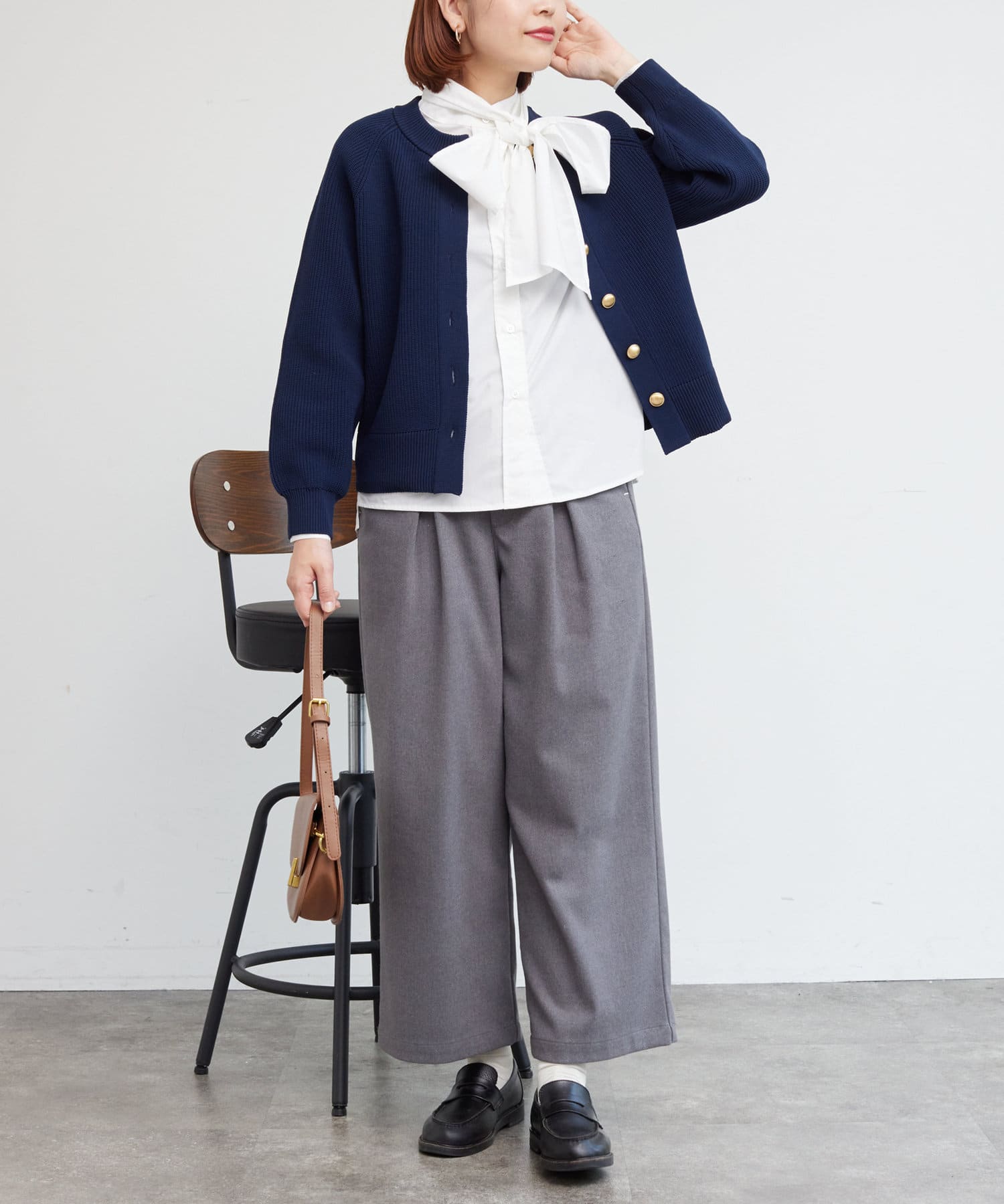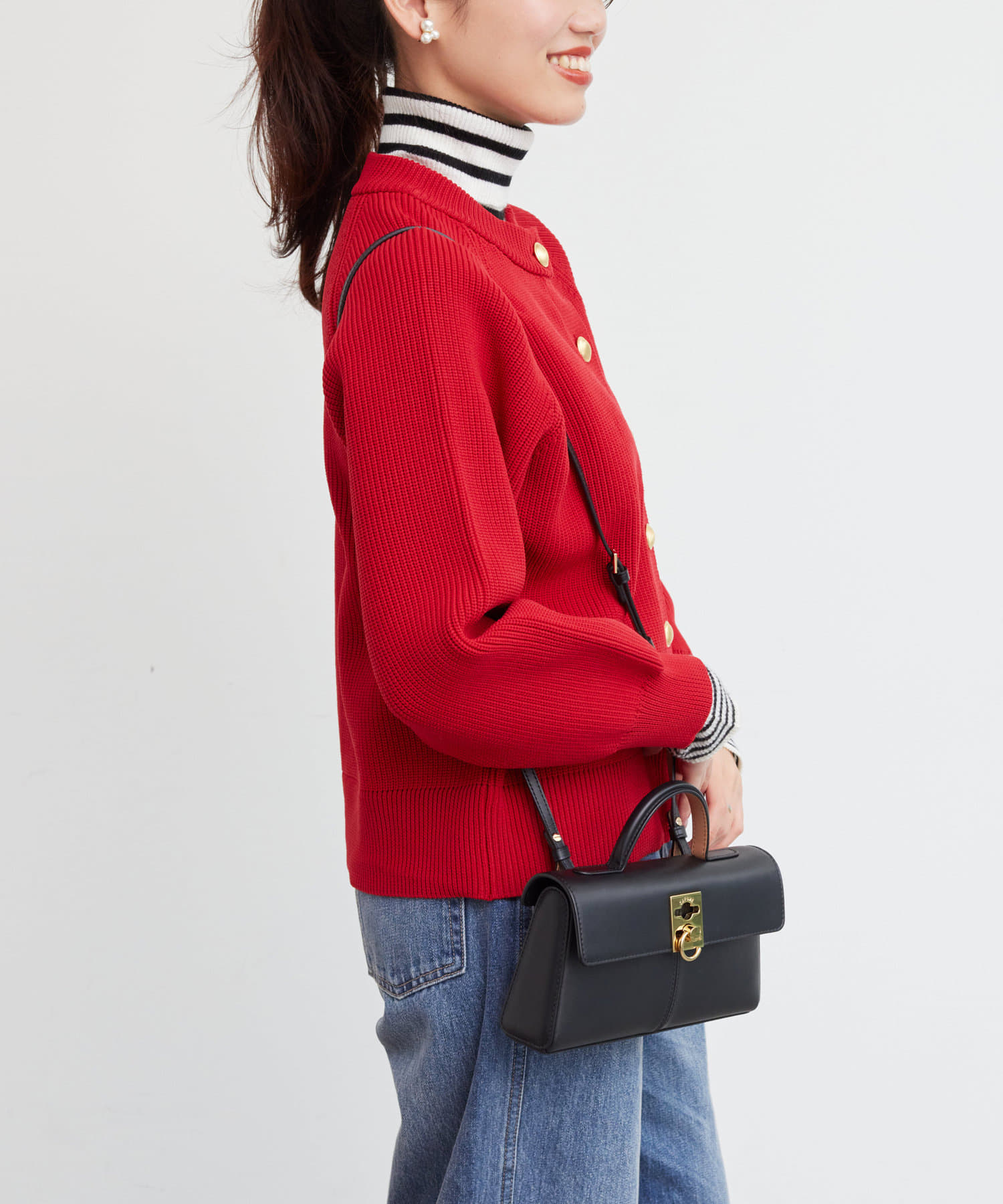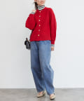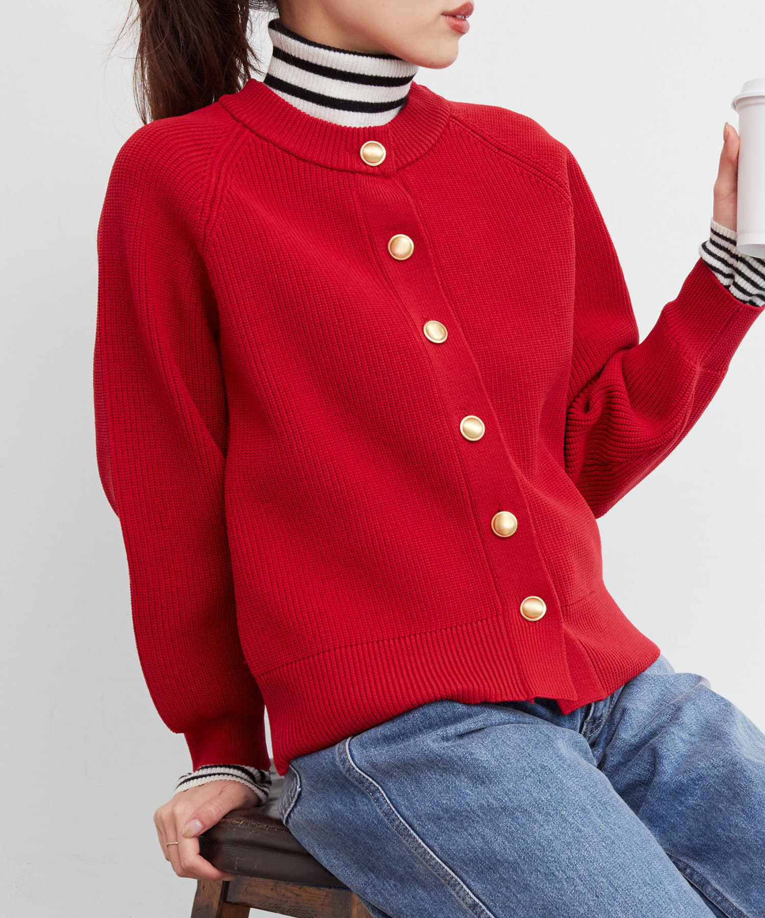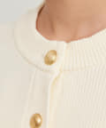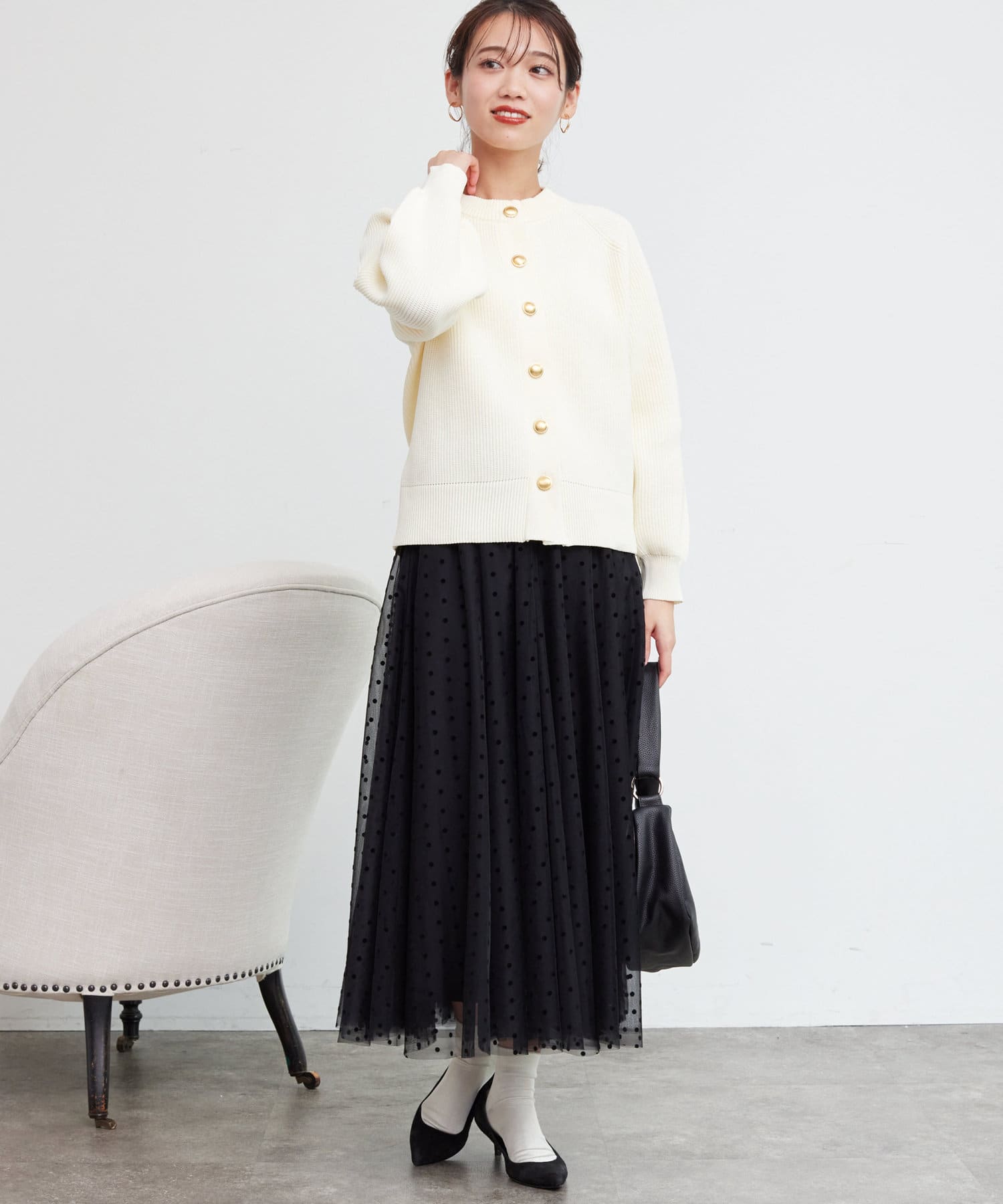 ゴールドボタンがアクセントの華やかなカーディガン。
