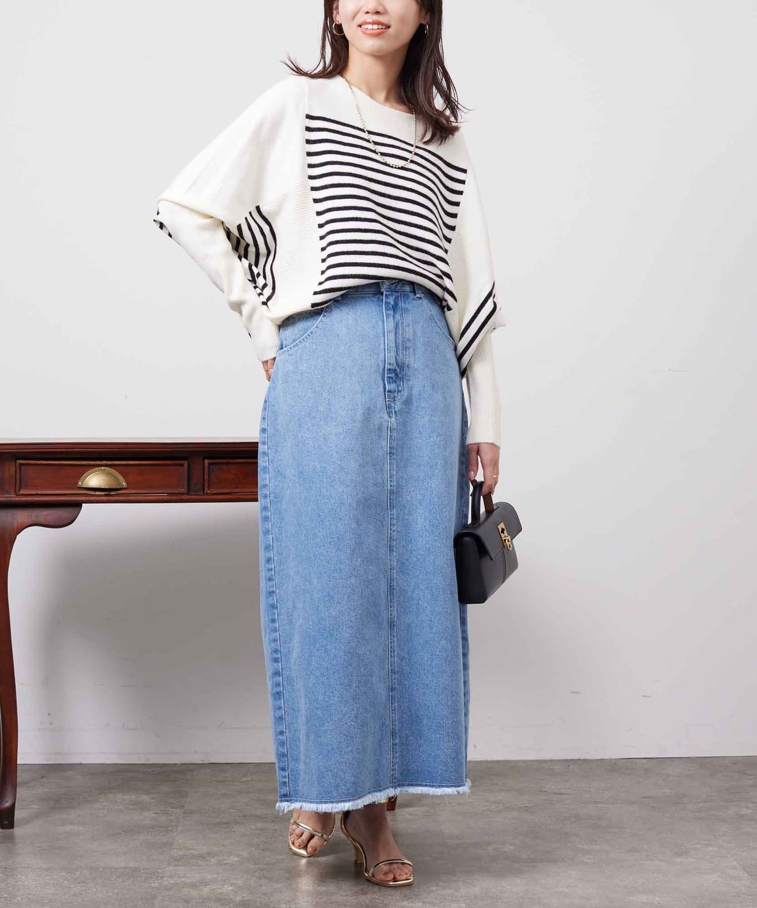 などと相性抜群です。ボトムスを選ばない合わせやすい丈感なので