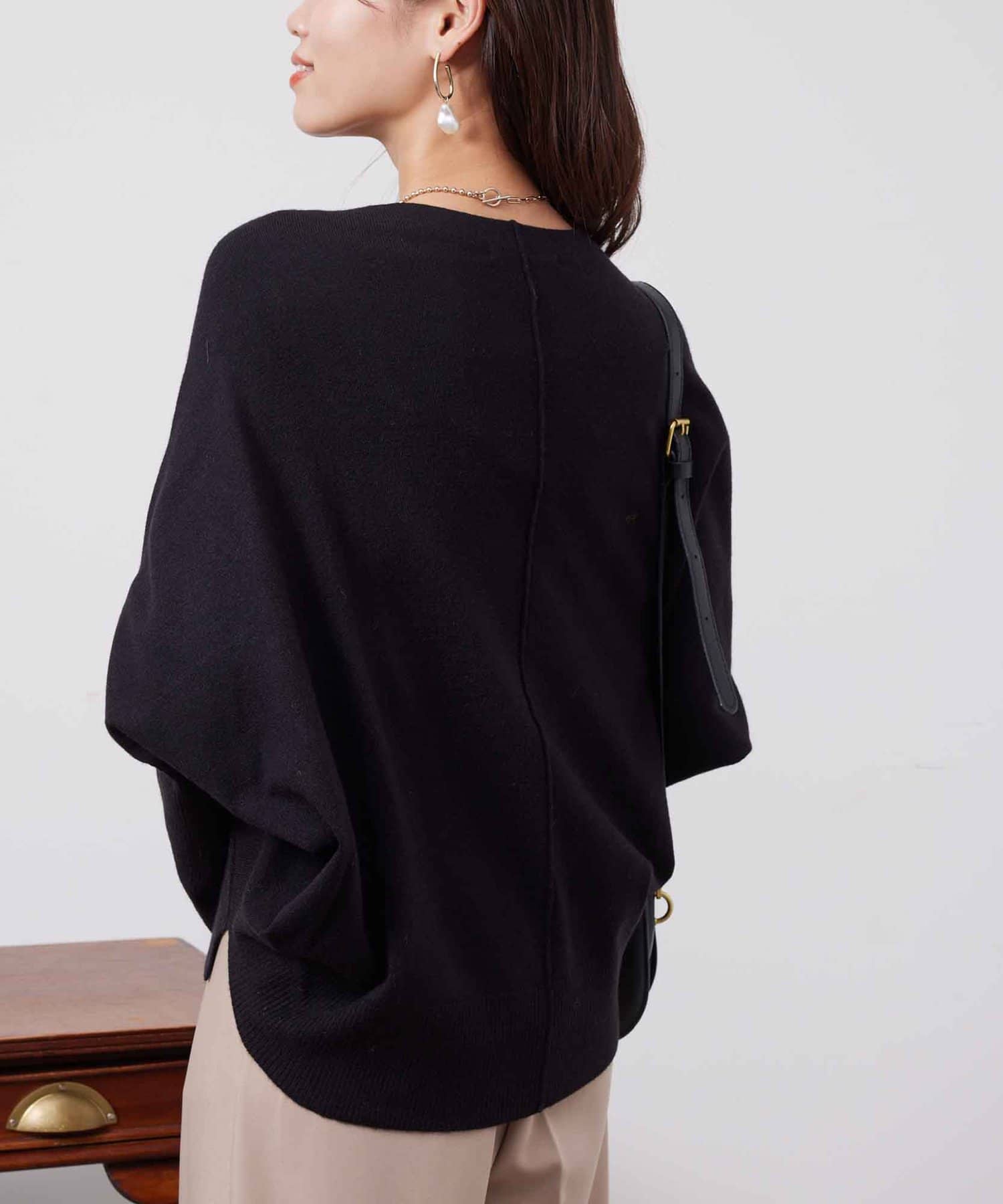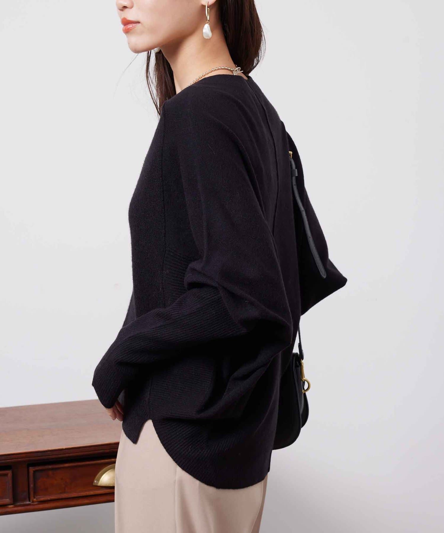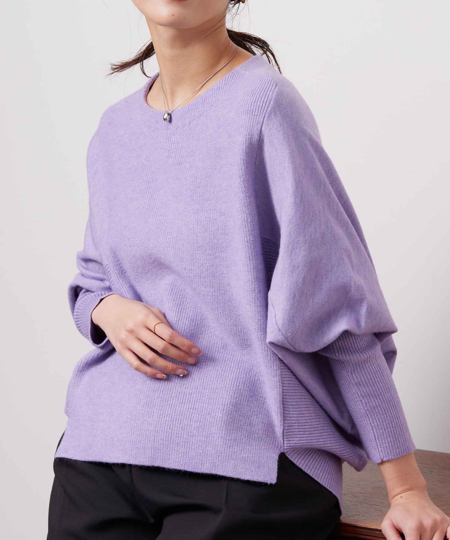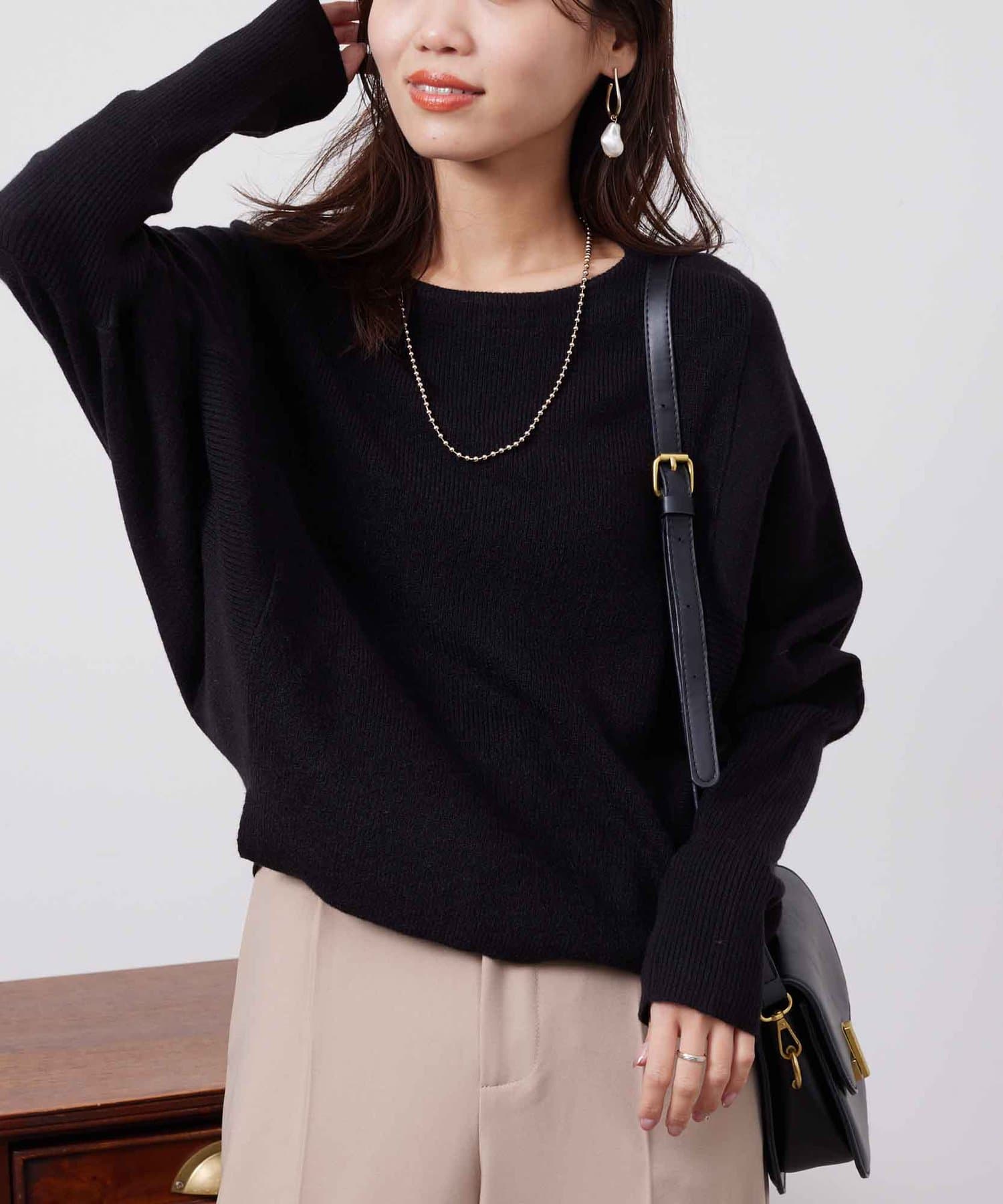 お家で手軽にお洗濯ができるドルマン型のニット。
