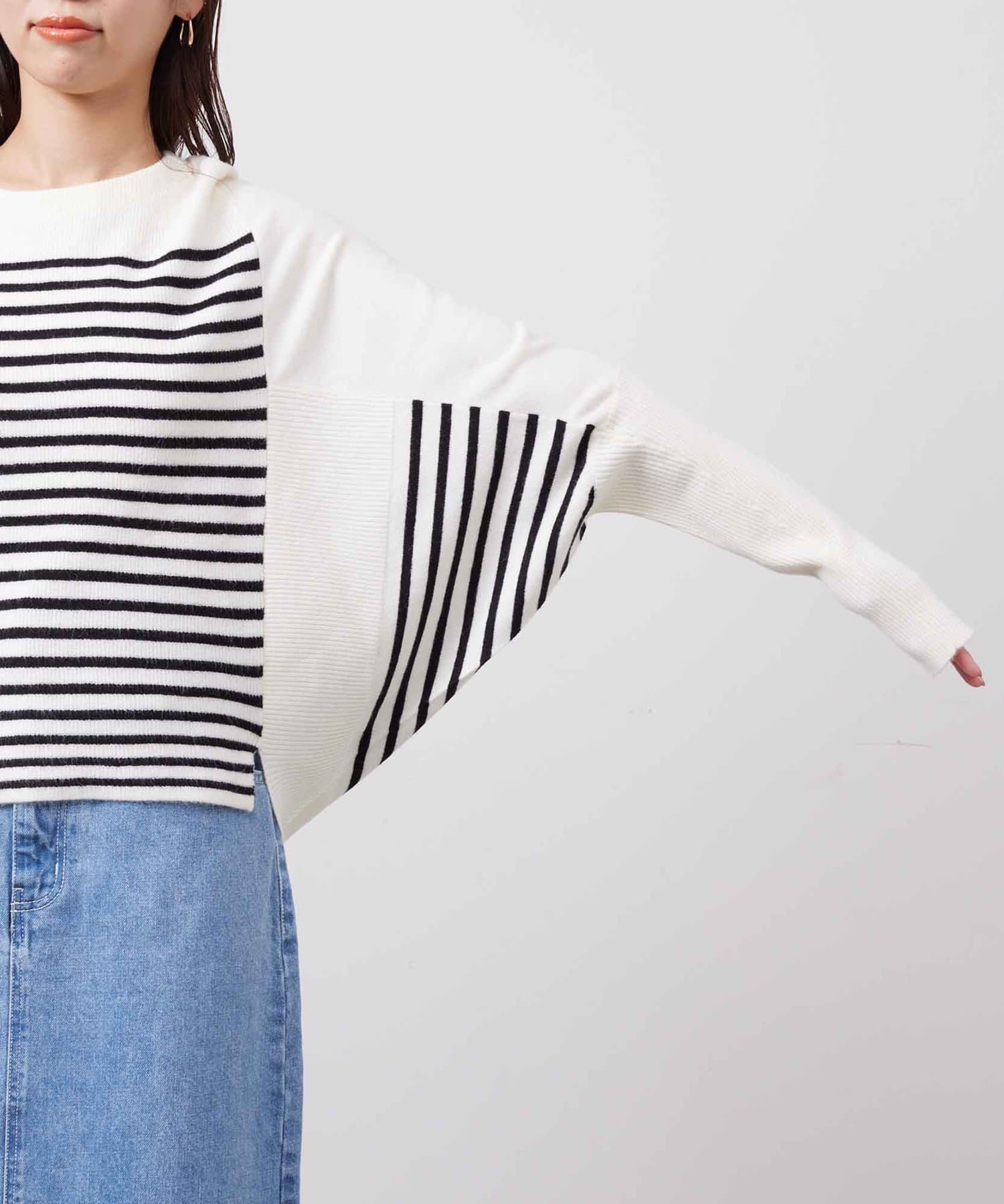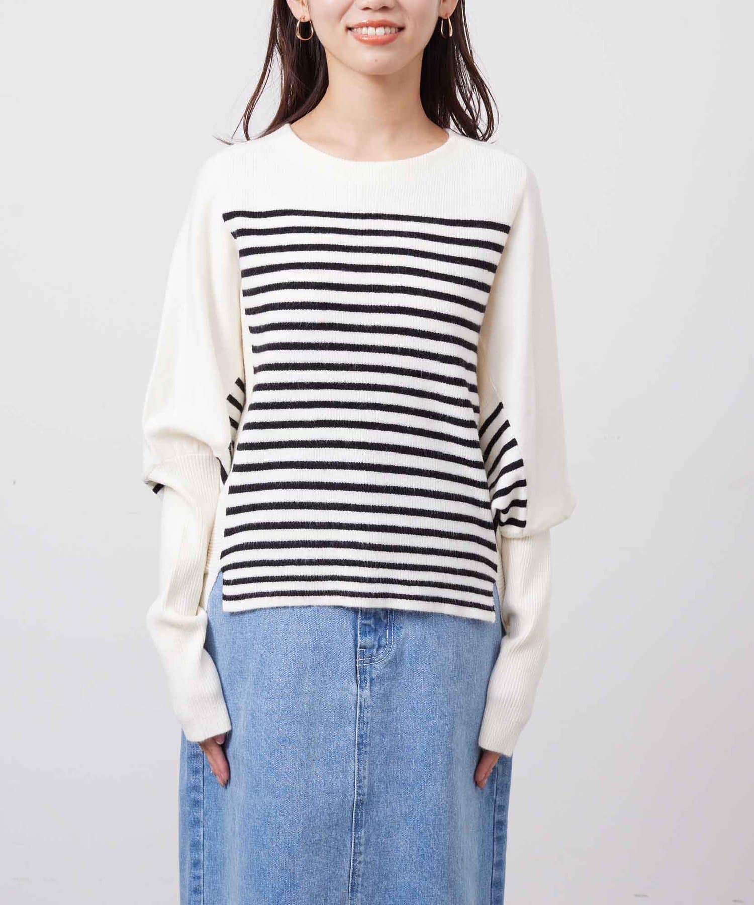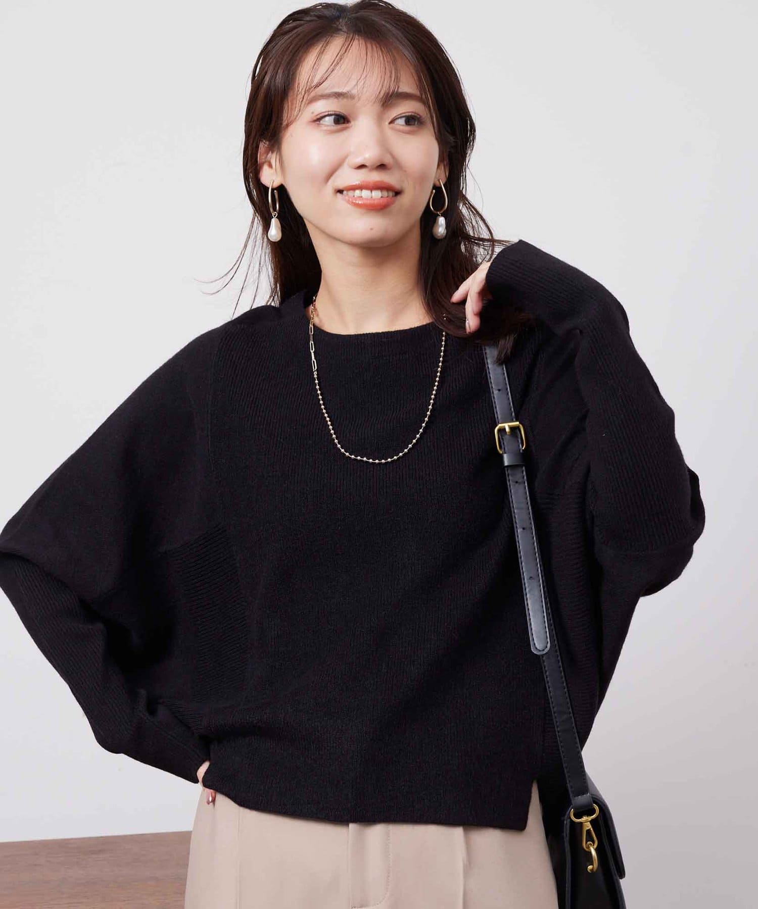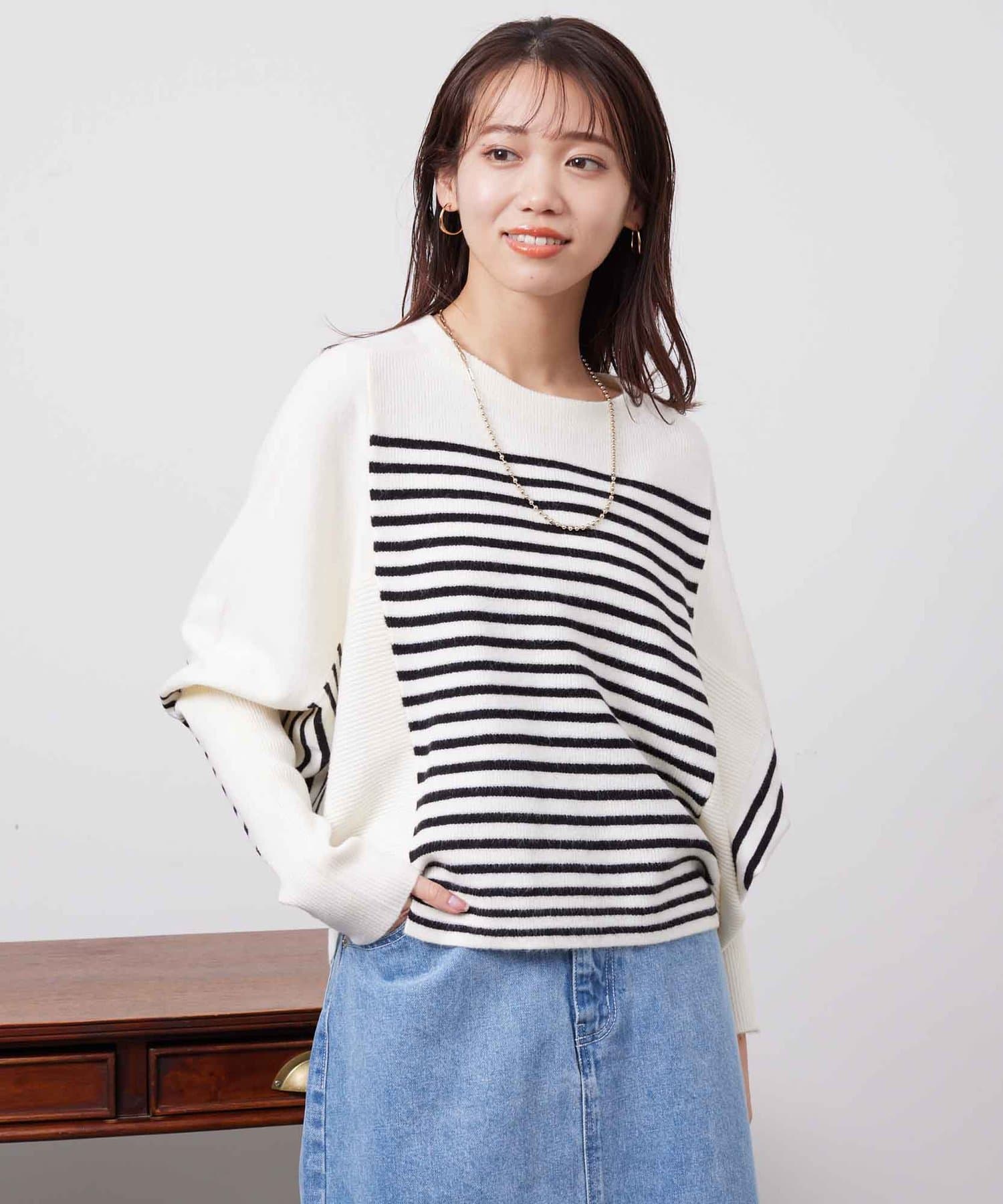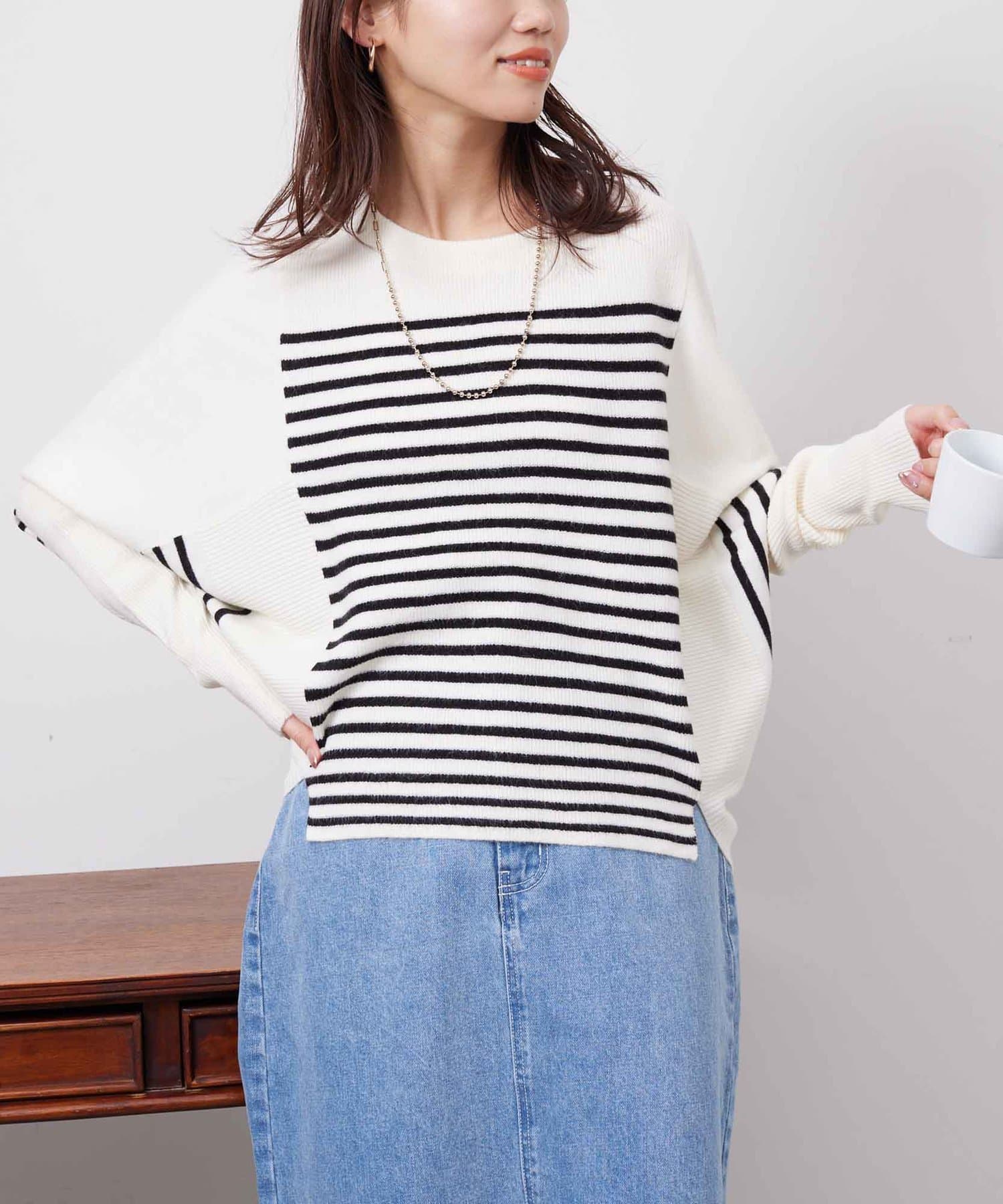 お家で手軽にお洗濯ができるドルマン型のニット。