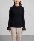 袖口に広がったフレアスリーブがトレンド感のある一枚です。