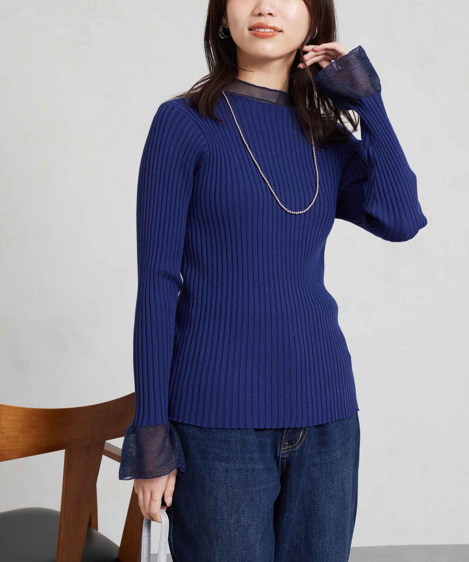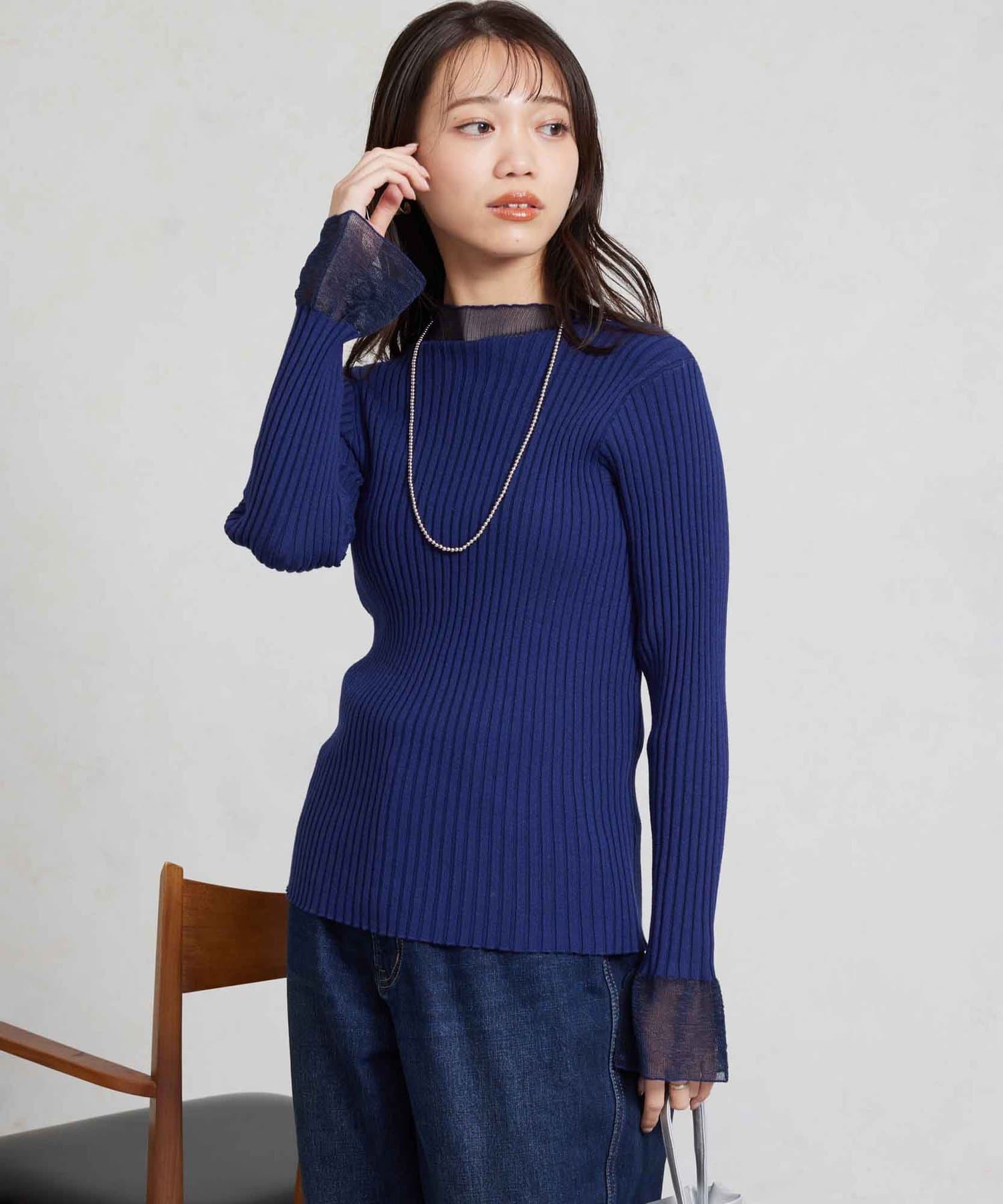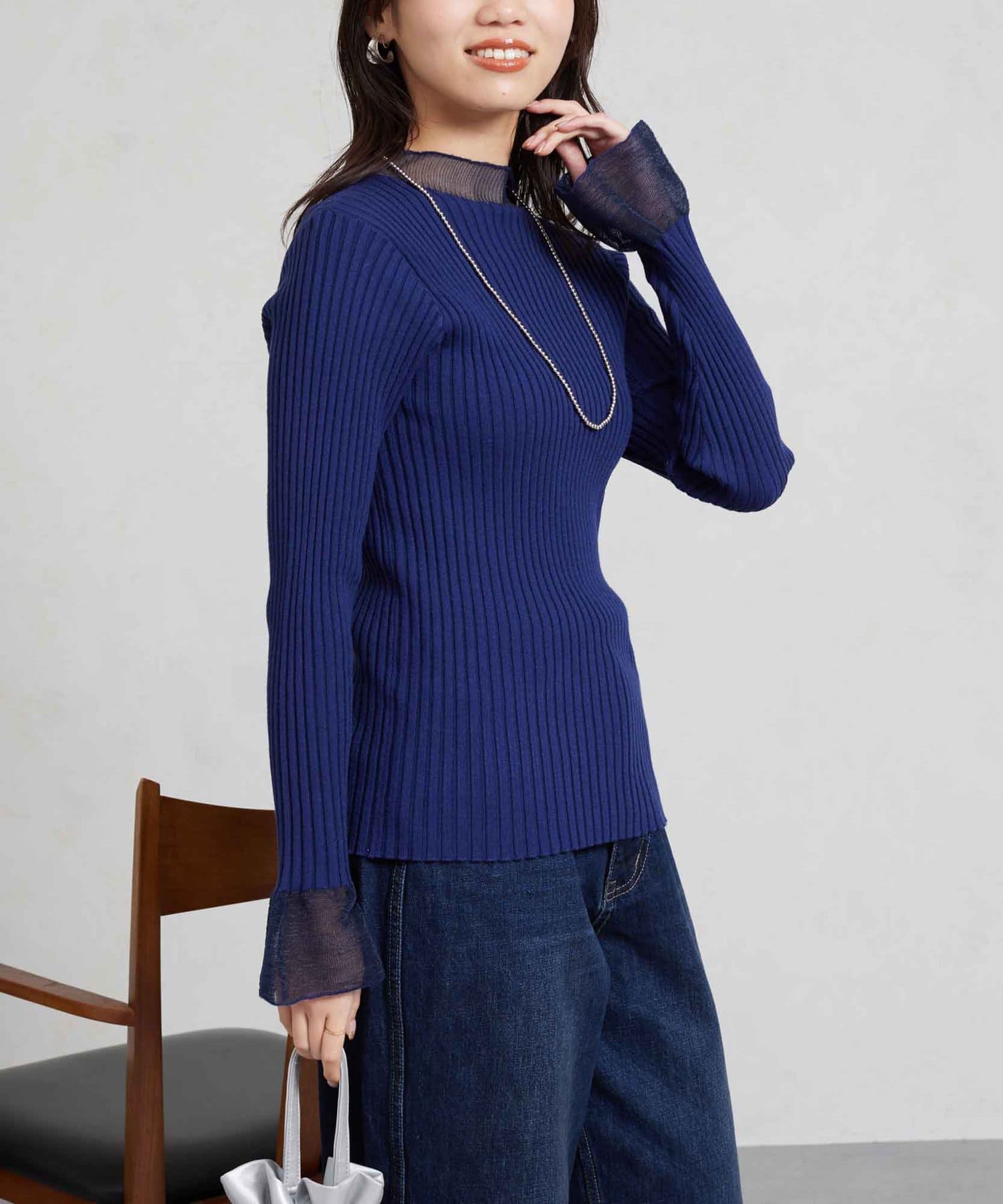 TOP > Chez toi > レディース > トップス > ニット/セーター > シアー切替インナーニットプルオーバー