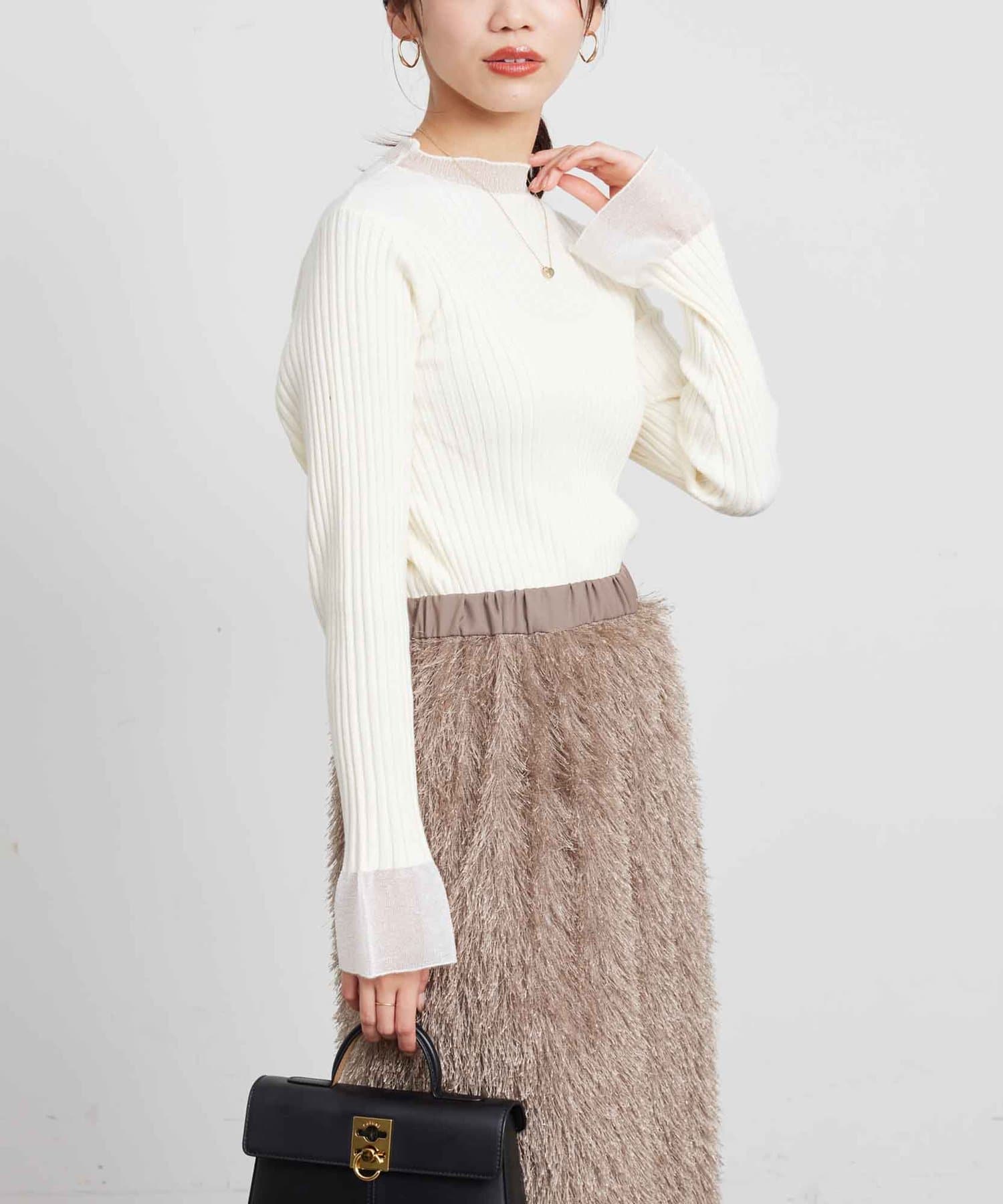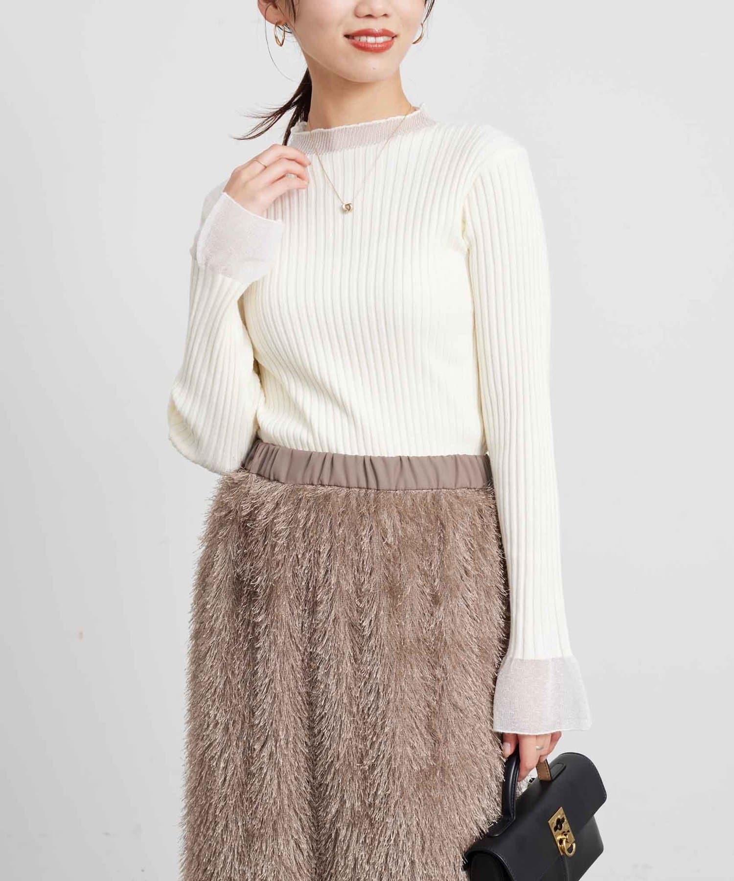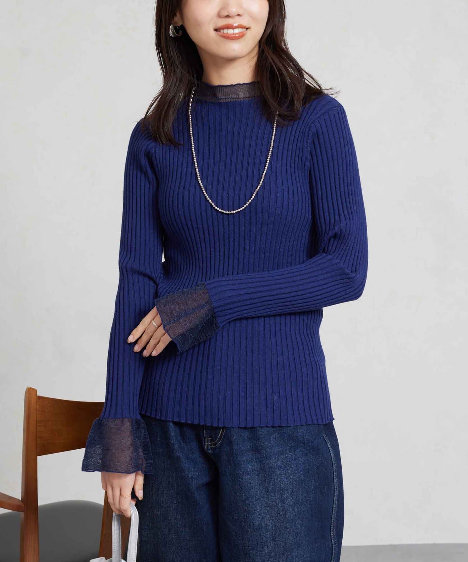 TOP > Chez toi > レディース > トップス > ニット/セーター > シアー切替インナーニットプルオーバー