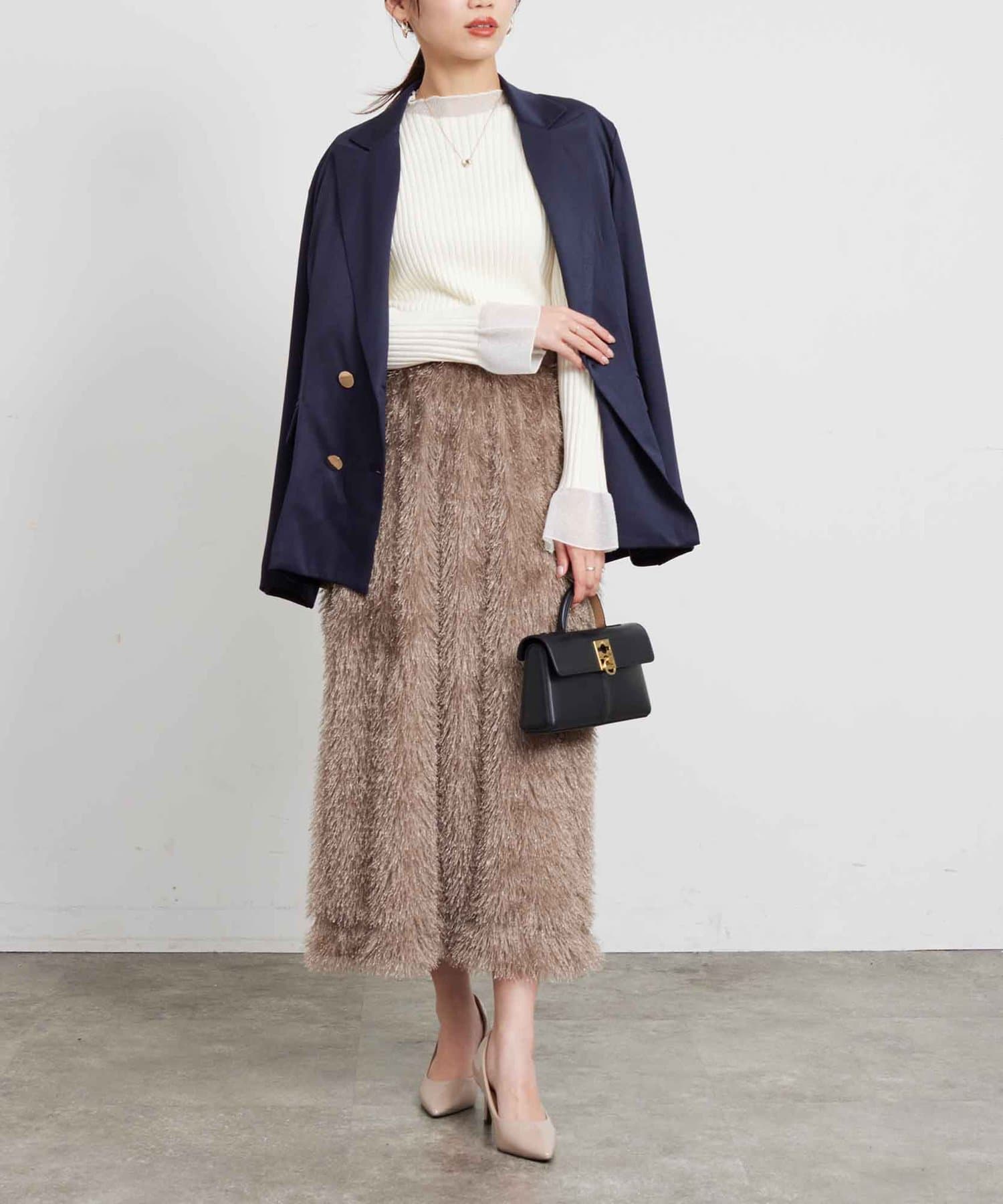 シアー部分は長めなのでアウターの下から覗かせてもこなれ見えな印象に。