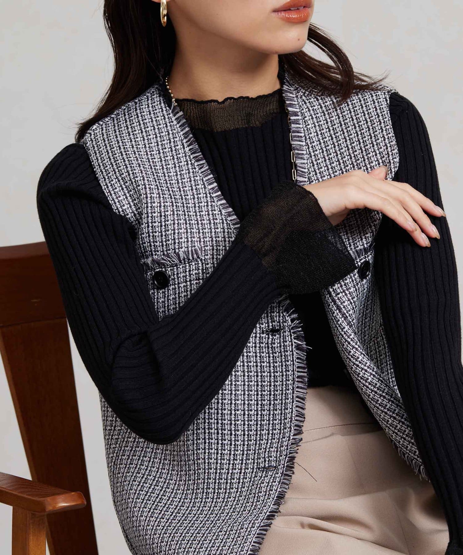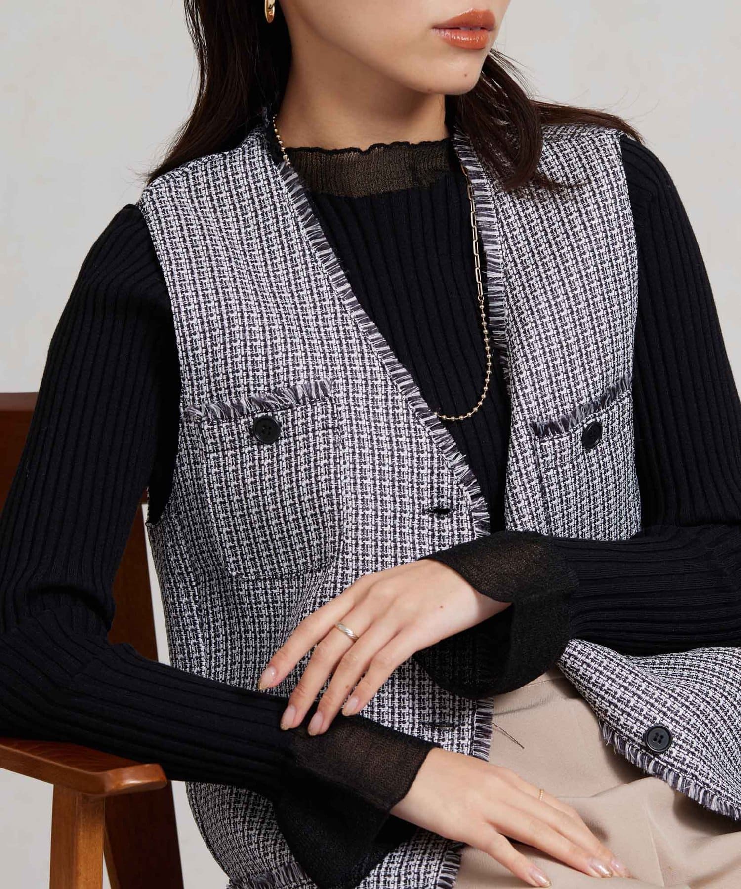 テーラードジャケットのインナーとして今年らしい着こなしに。