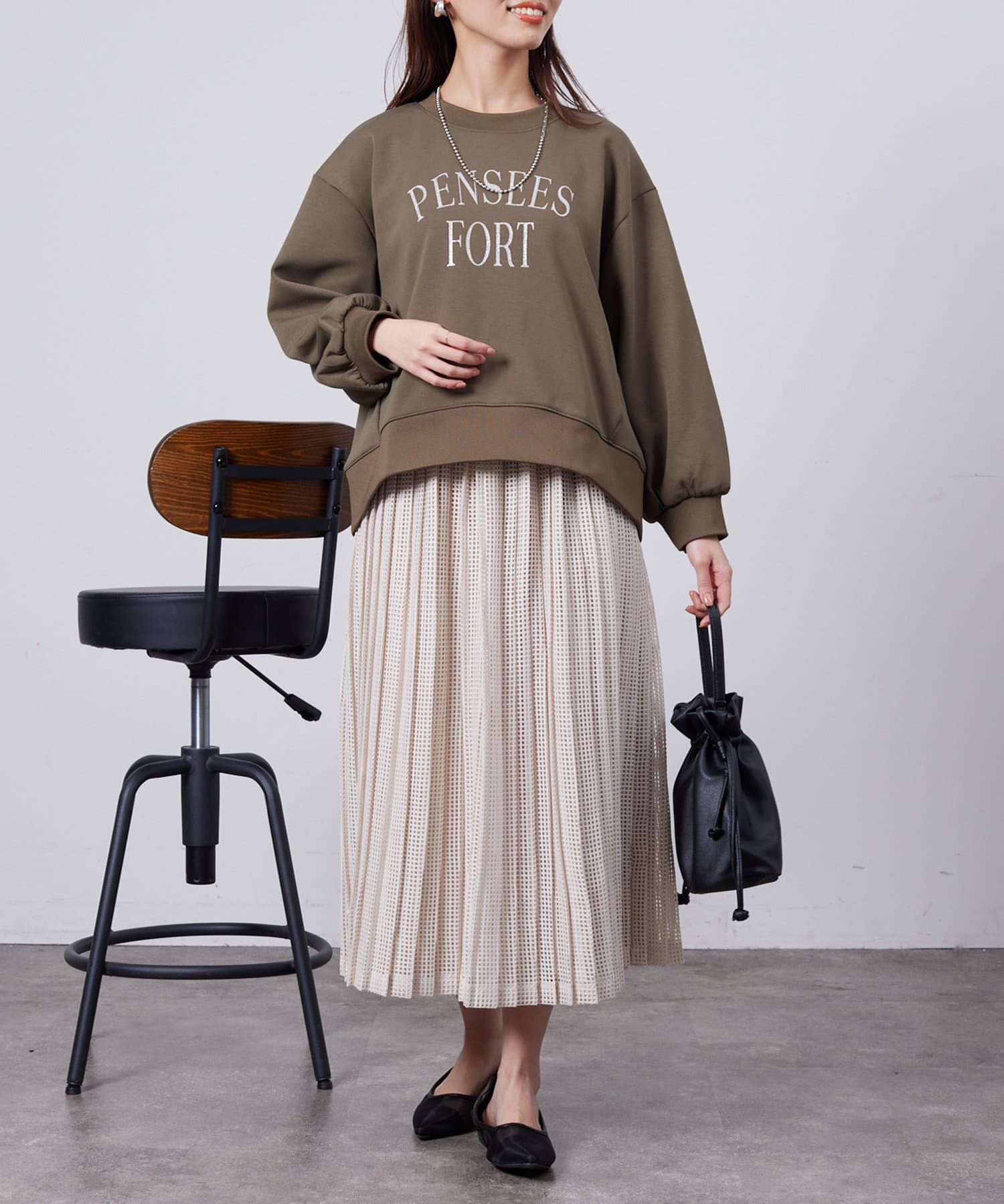 パンツでもスカートでも合わせやすいシルエットです。