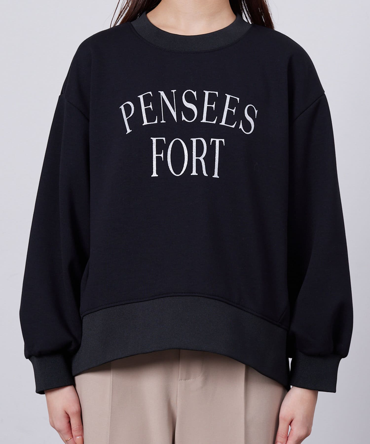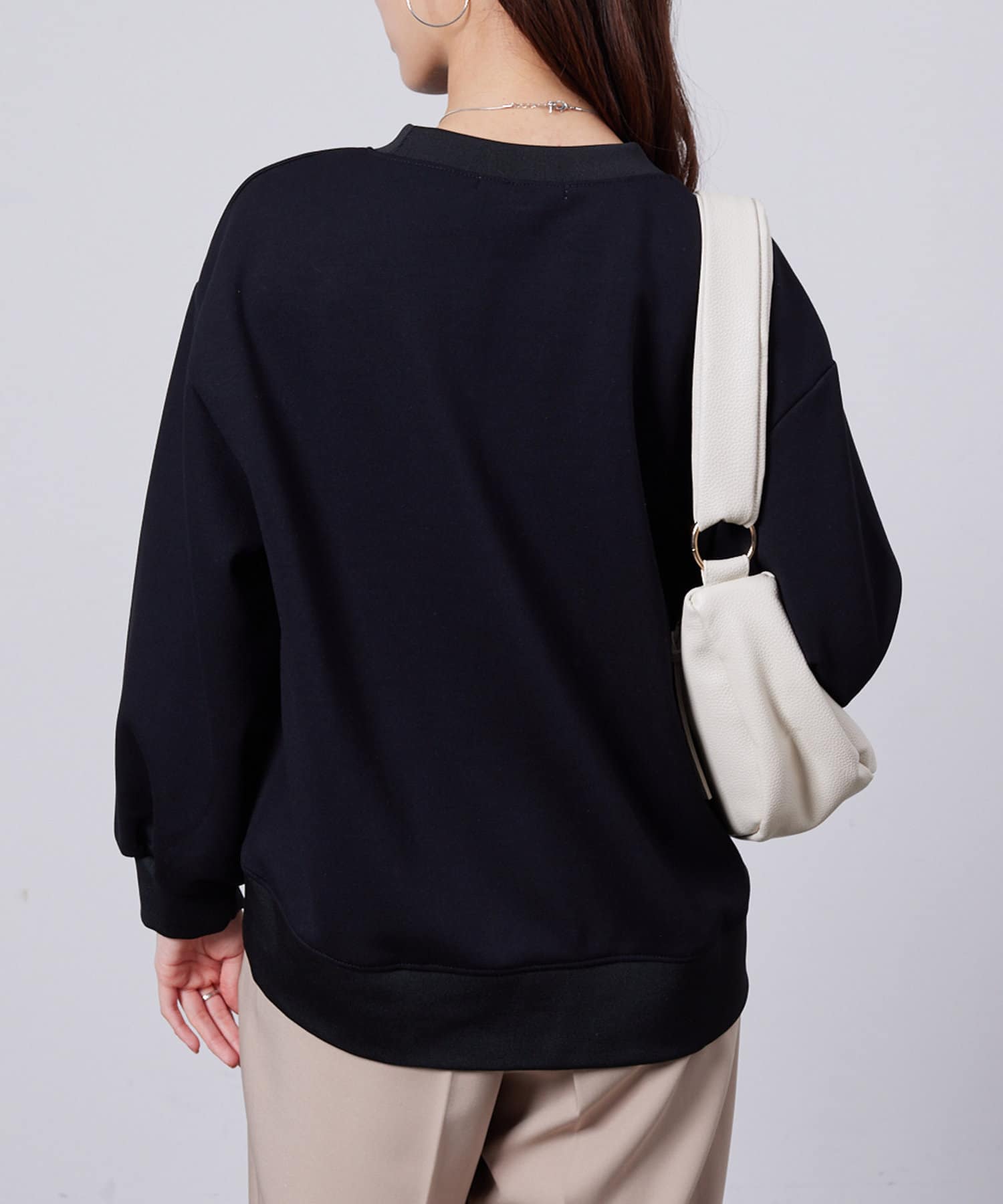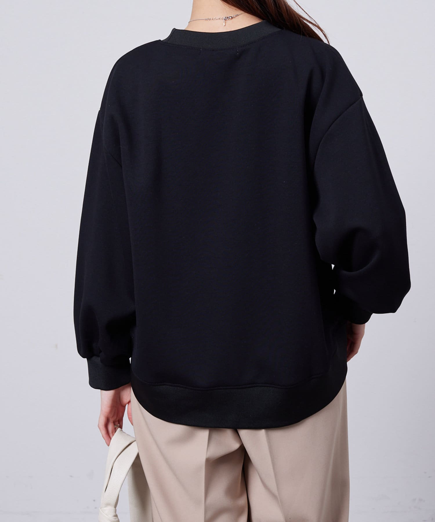 張りのあるボンディング素材を使用し大人のカジュアルなプルオーバー。