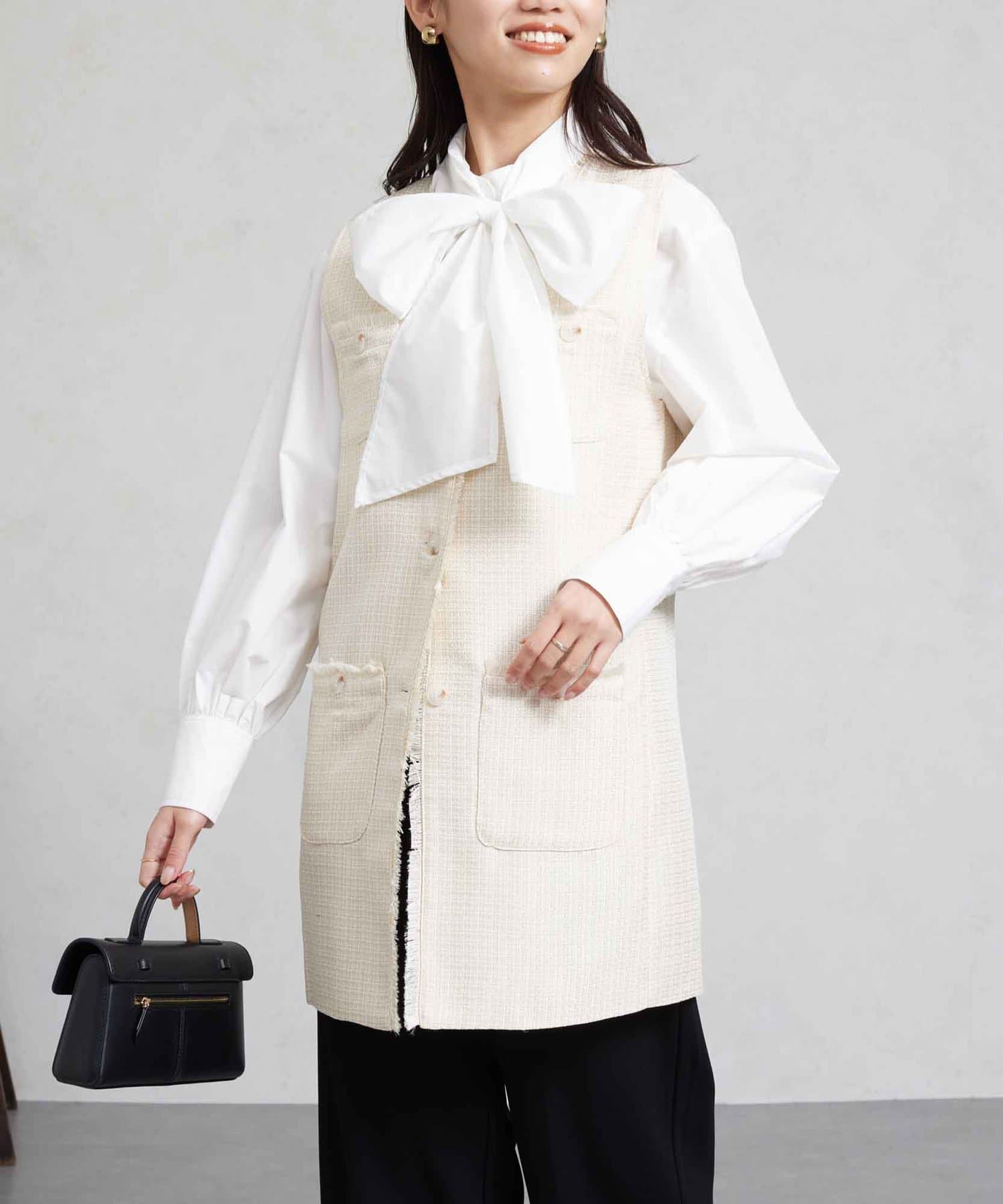 今季注目のボウタイブラウスやㇱアーニットに合わせた