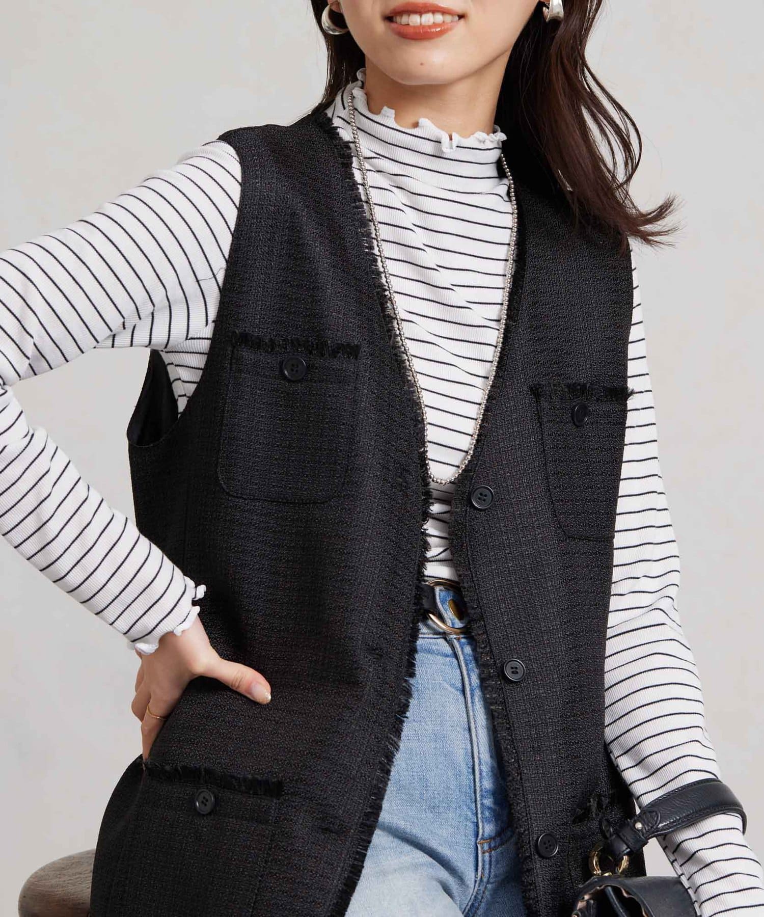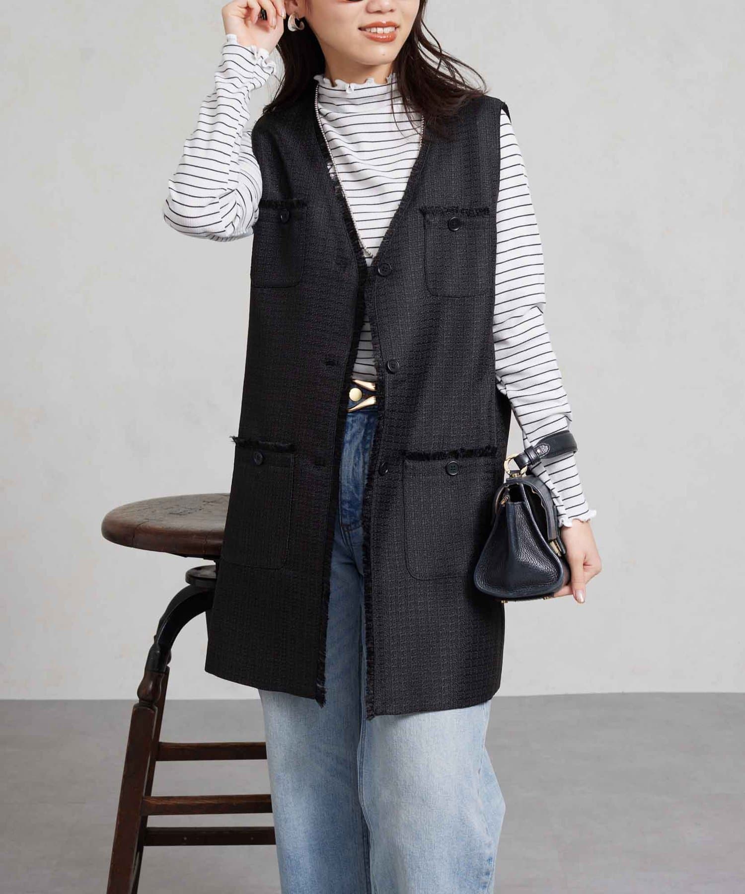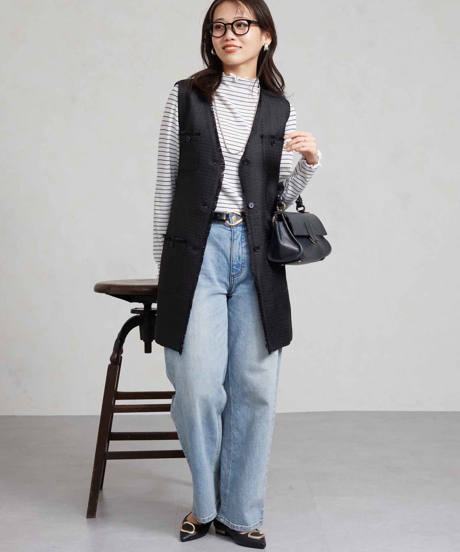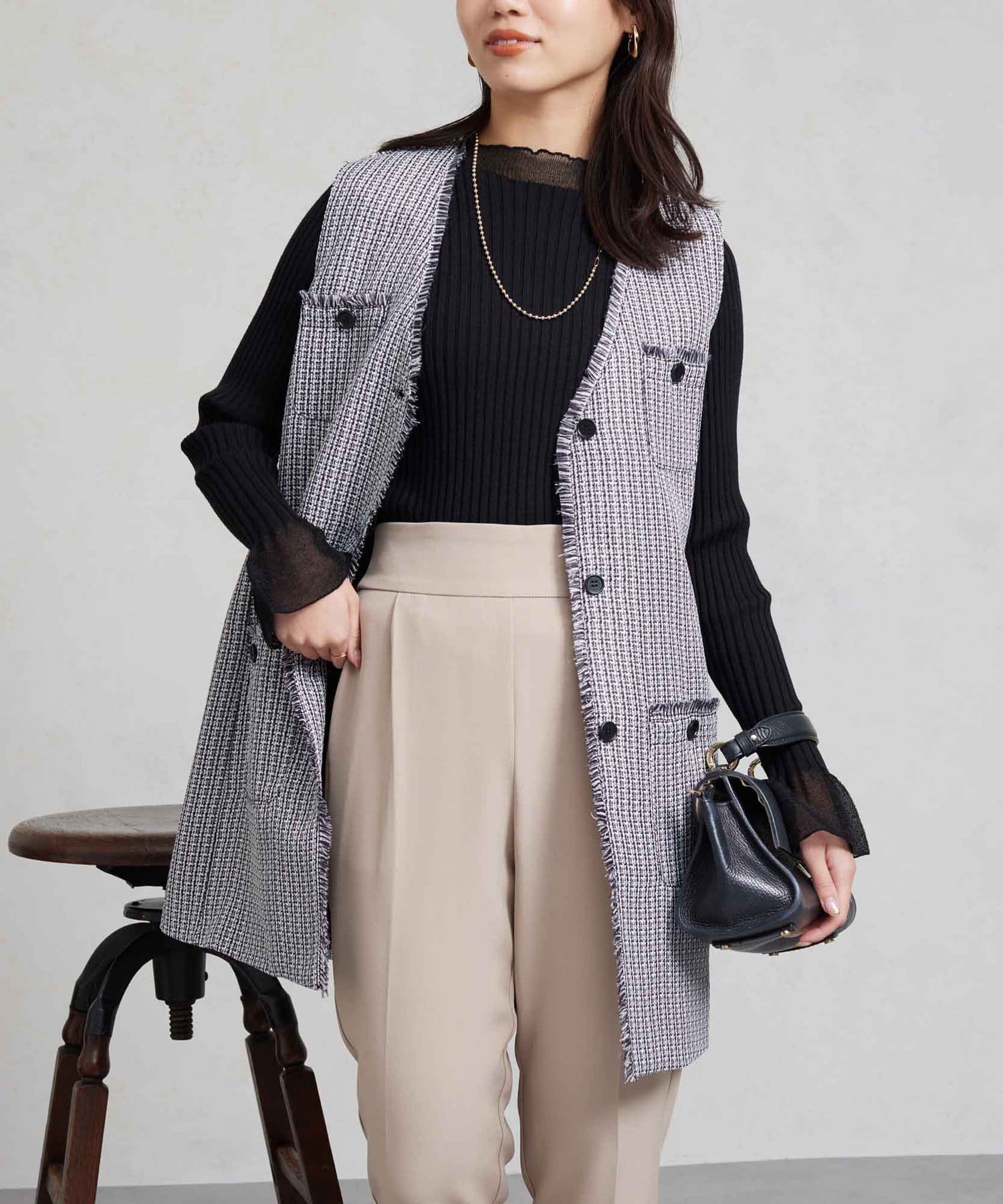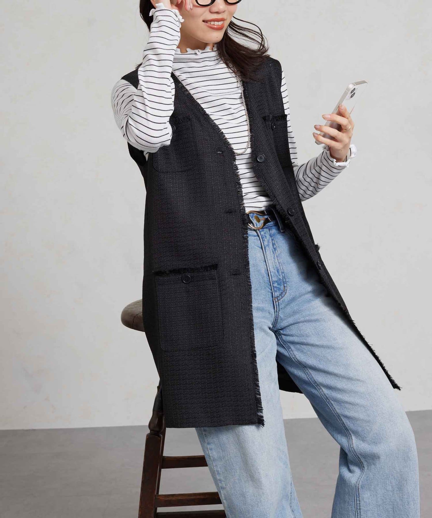 長めの着丈で縦ラインシルエットを作ってくれるので