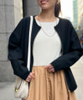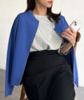施し、可愛らしい印象に。ノーカラーですっきりと着こなしていただけます。