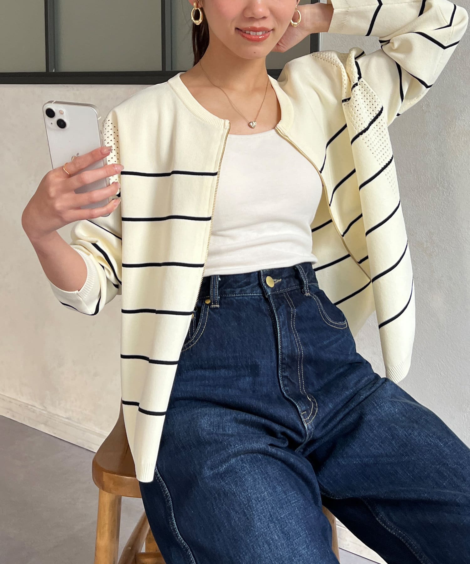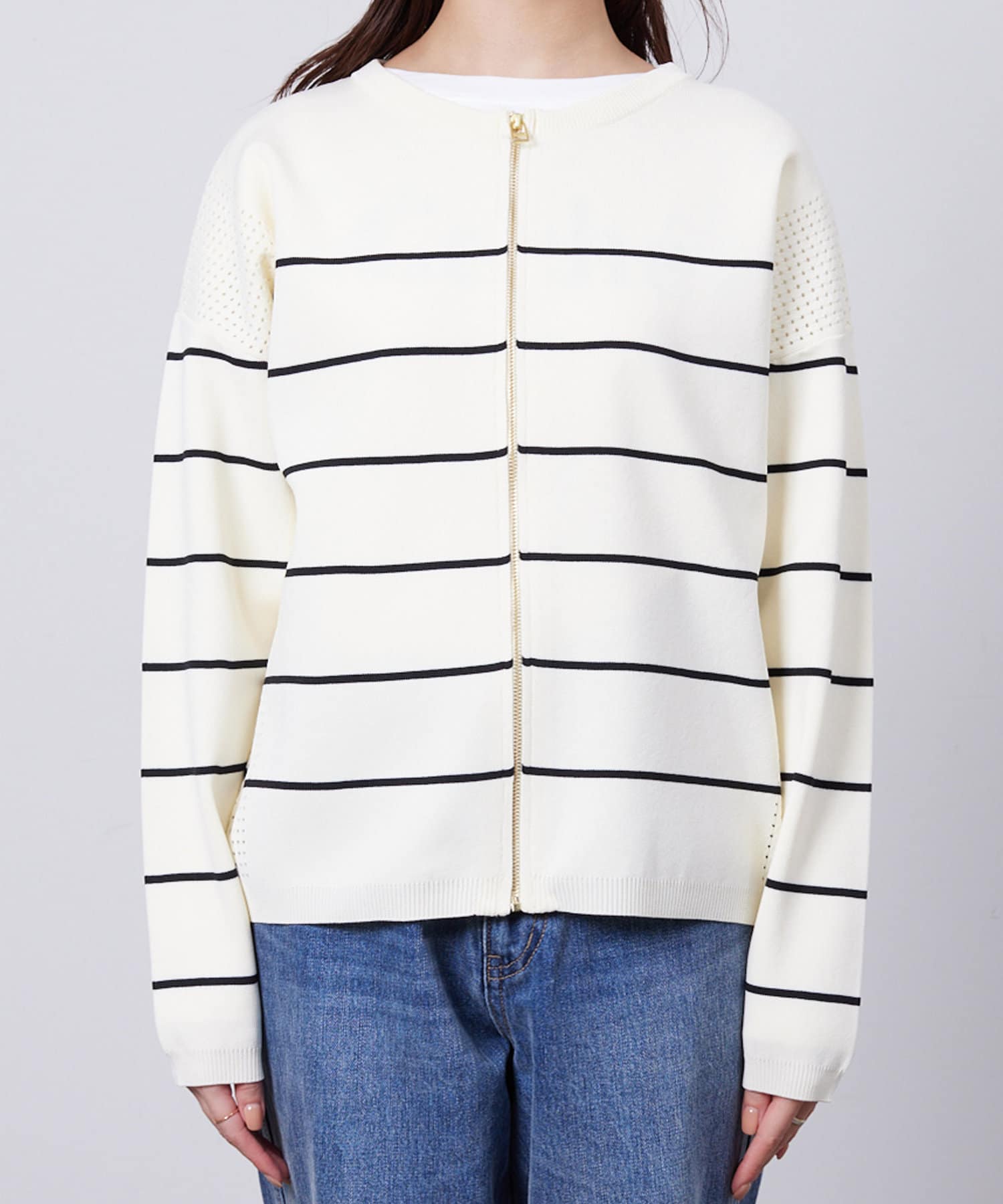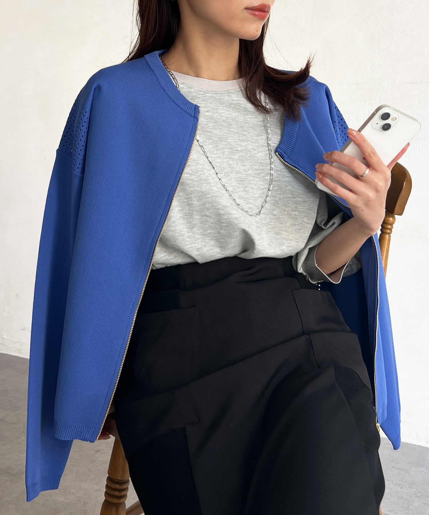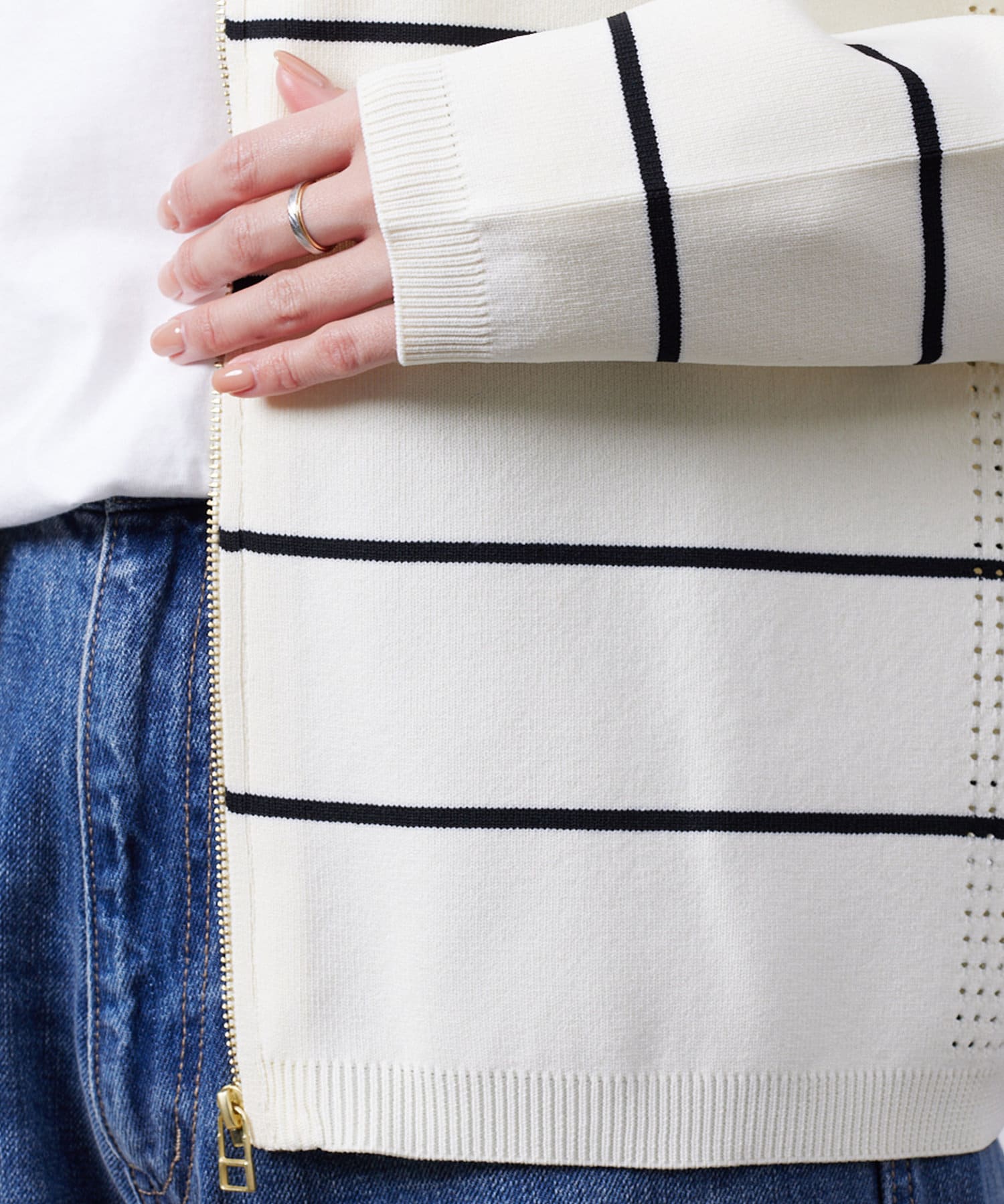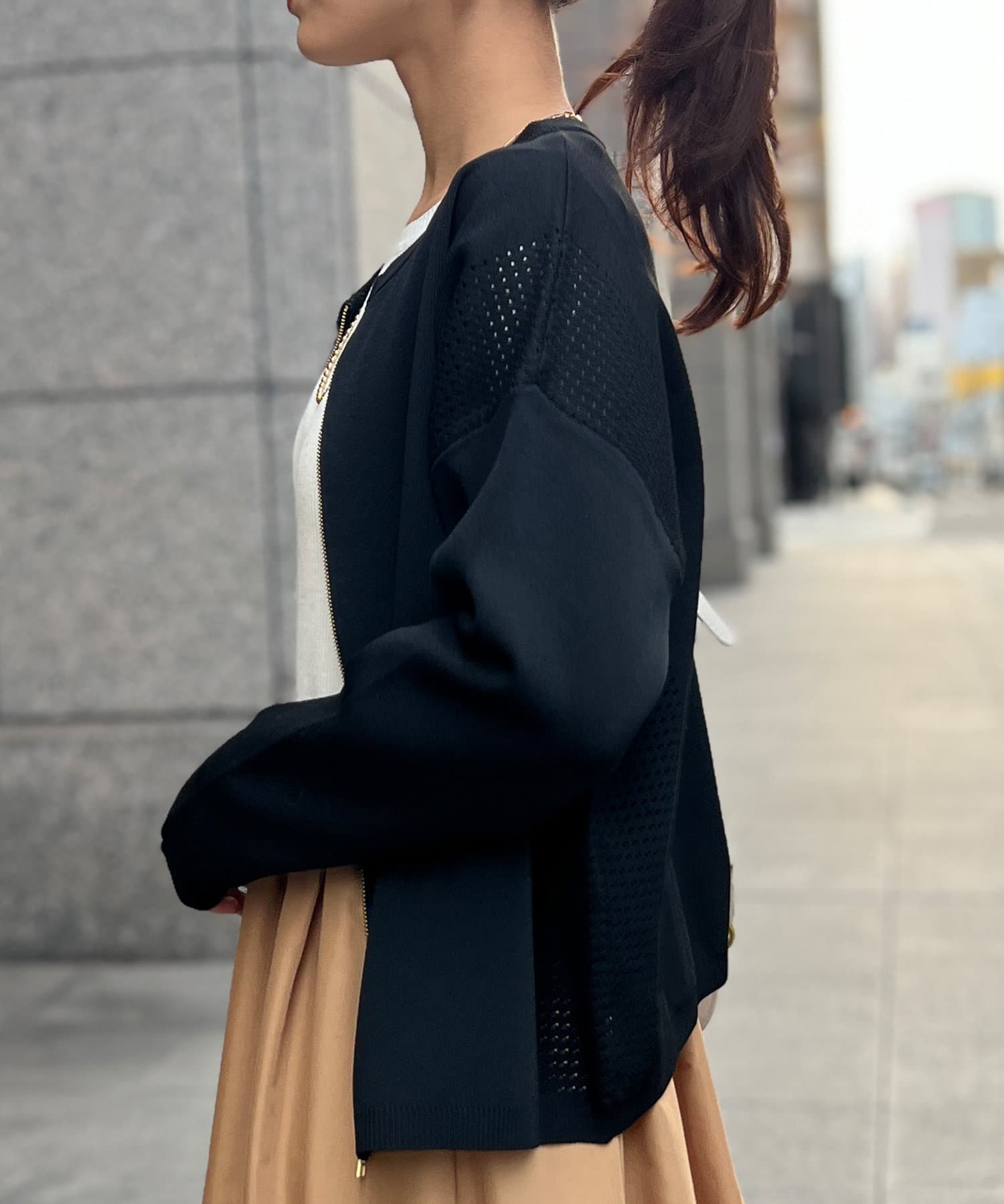 Chez toi(シェトワ) 軽量ニットアイレットジップカーディガン