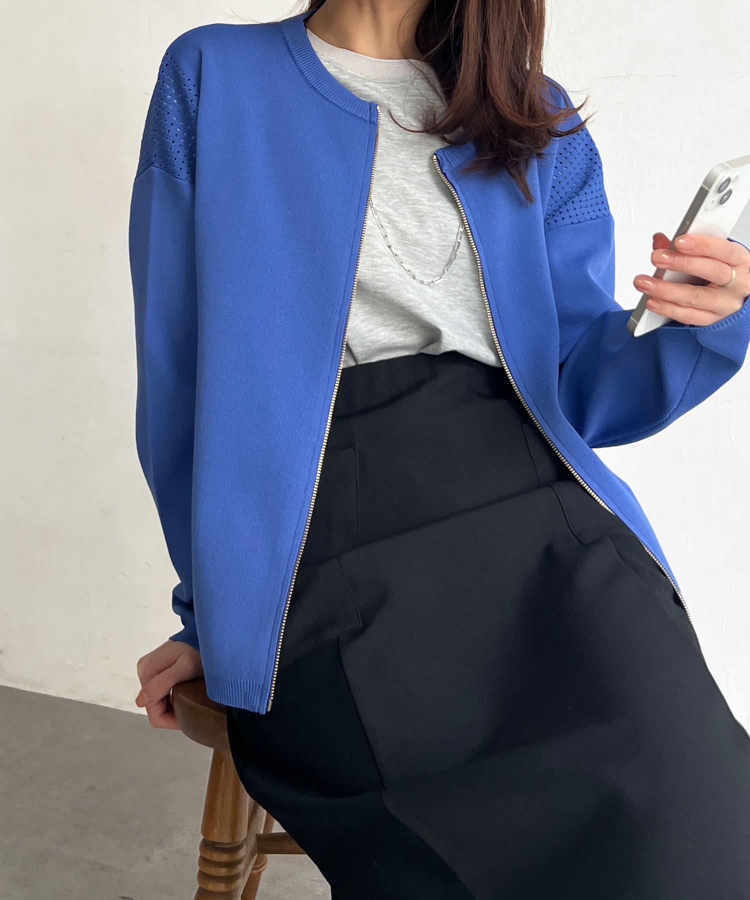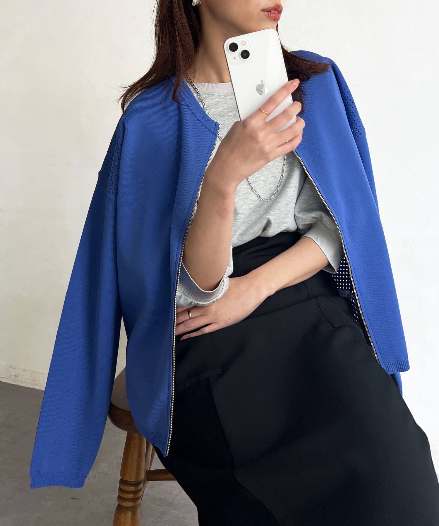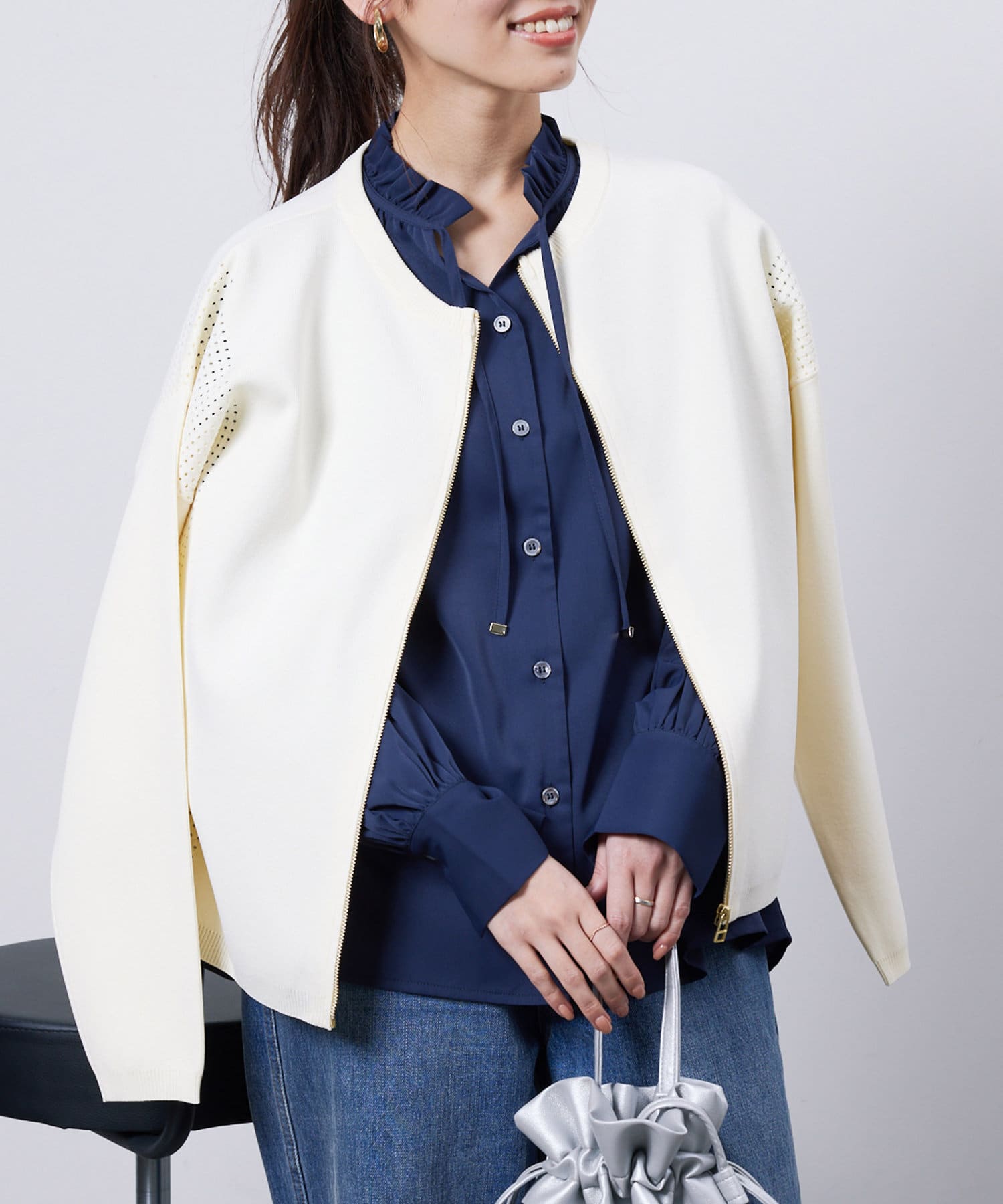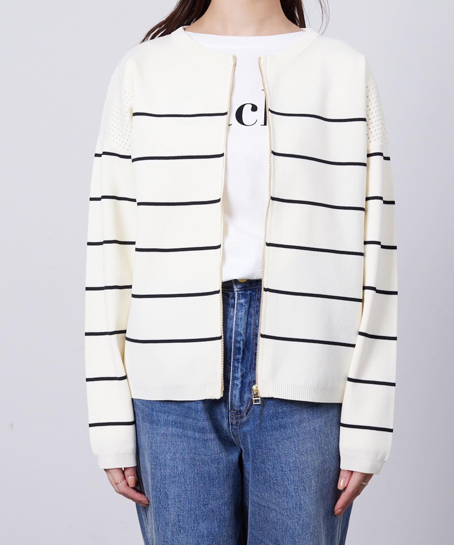 Chez toi(シェトワ) 軽量ニットアイレットジップカーディガン