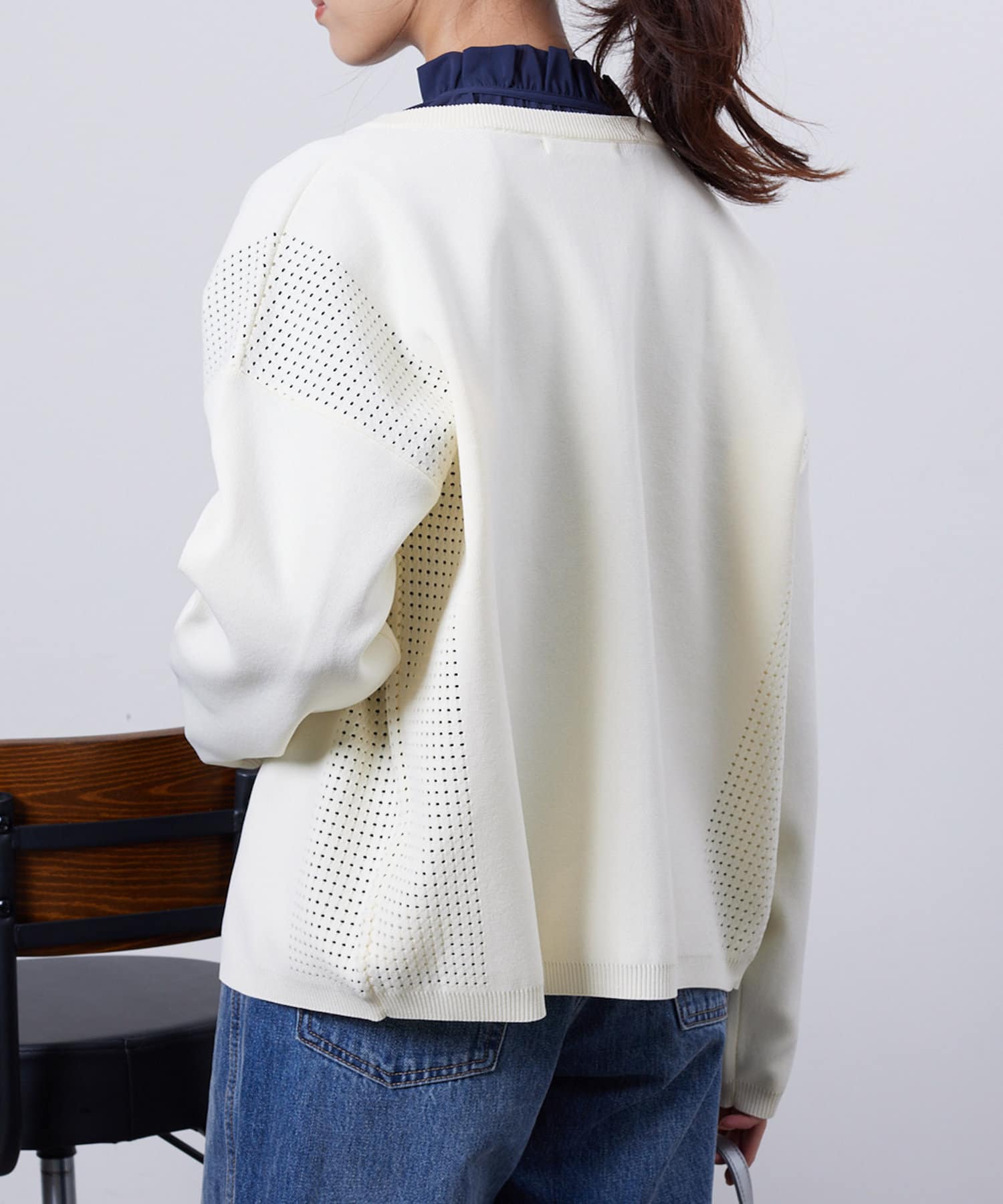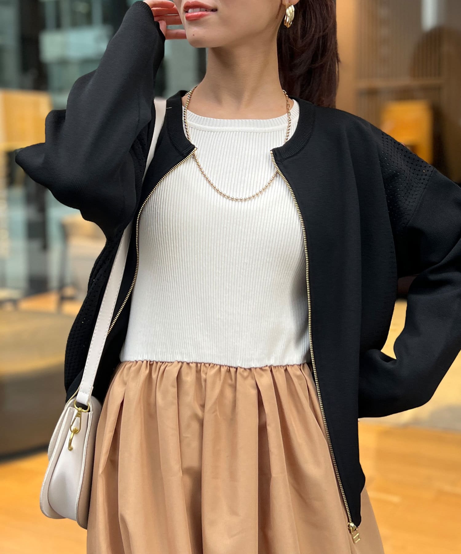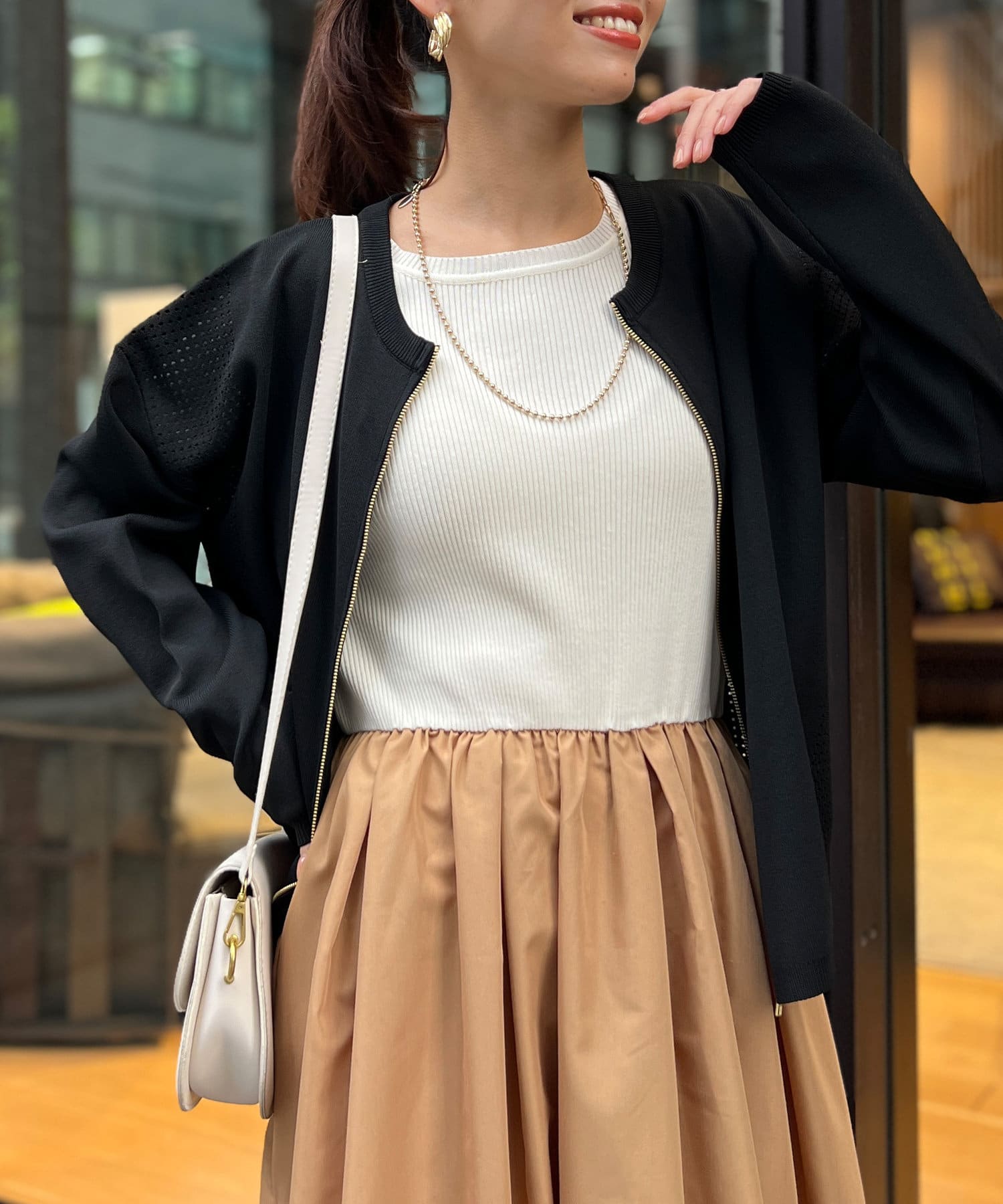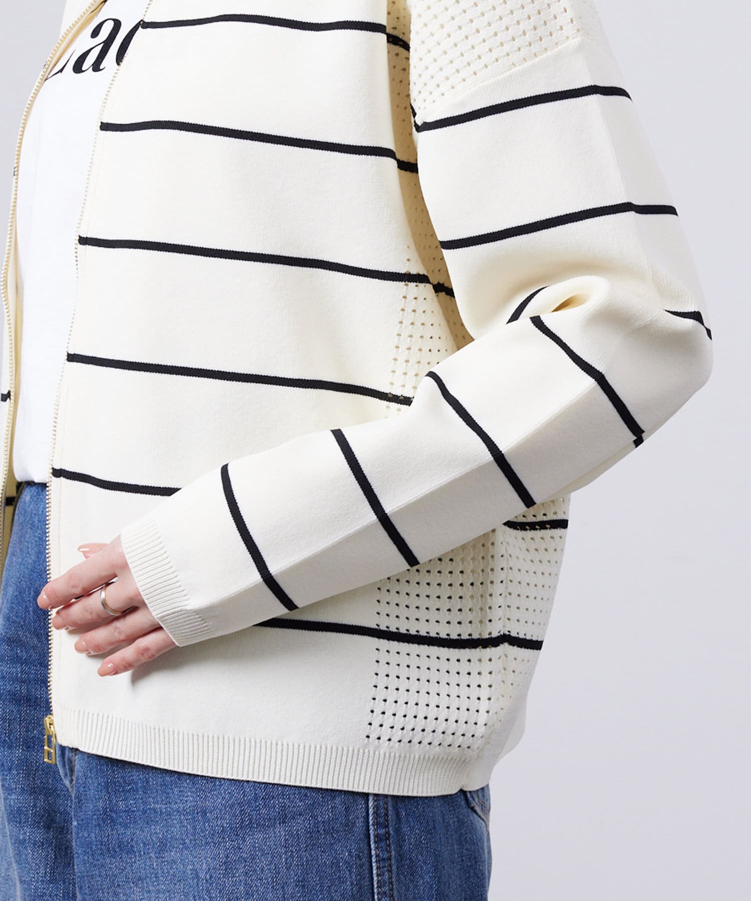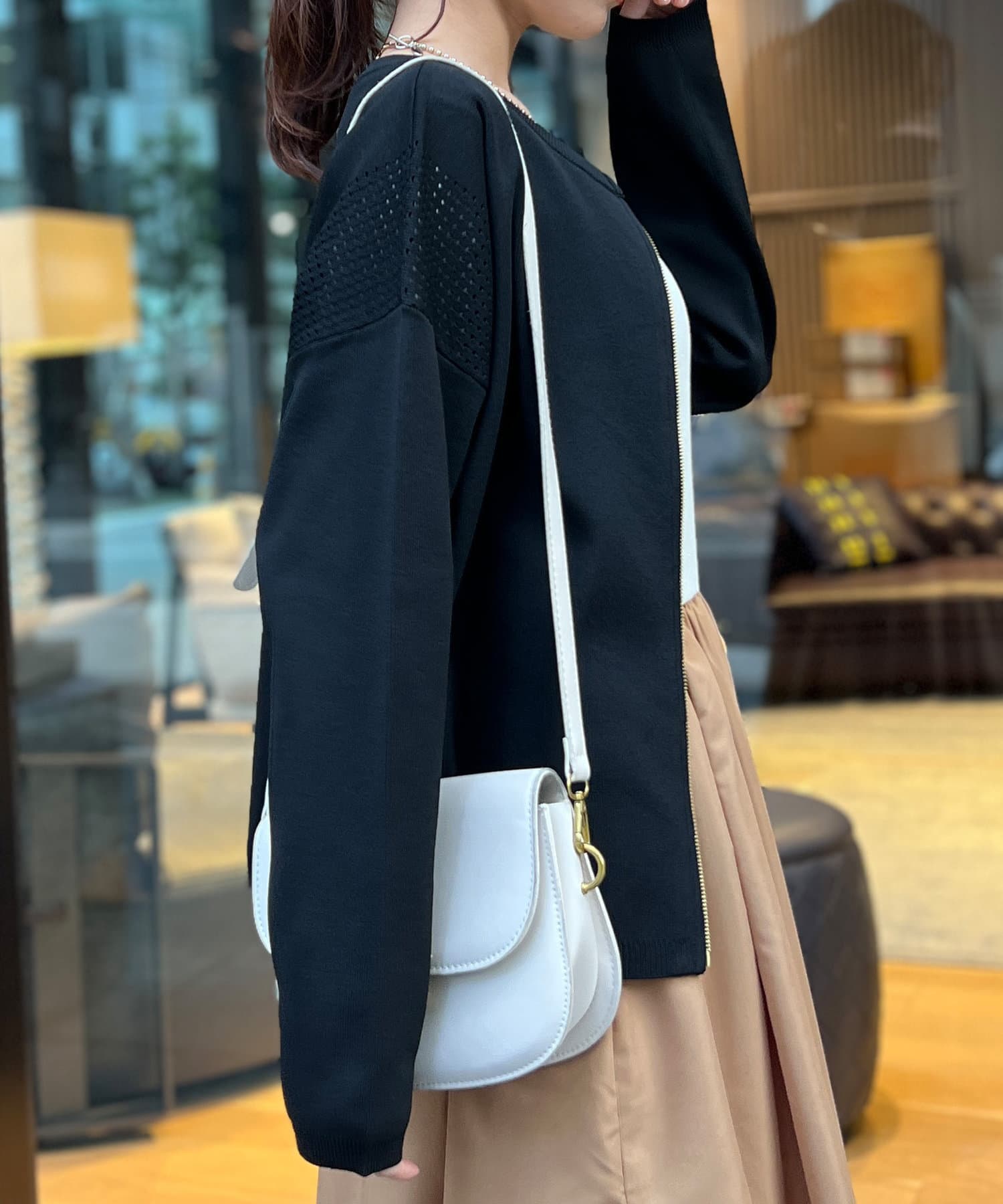Chez toi(シェトワ) 軽量ニットアイレットジップカーディガン