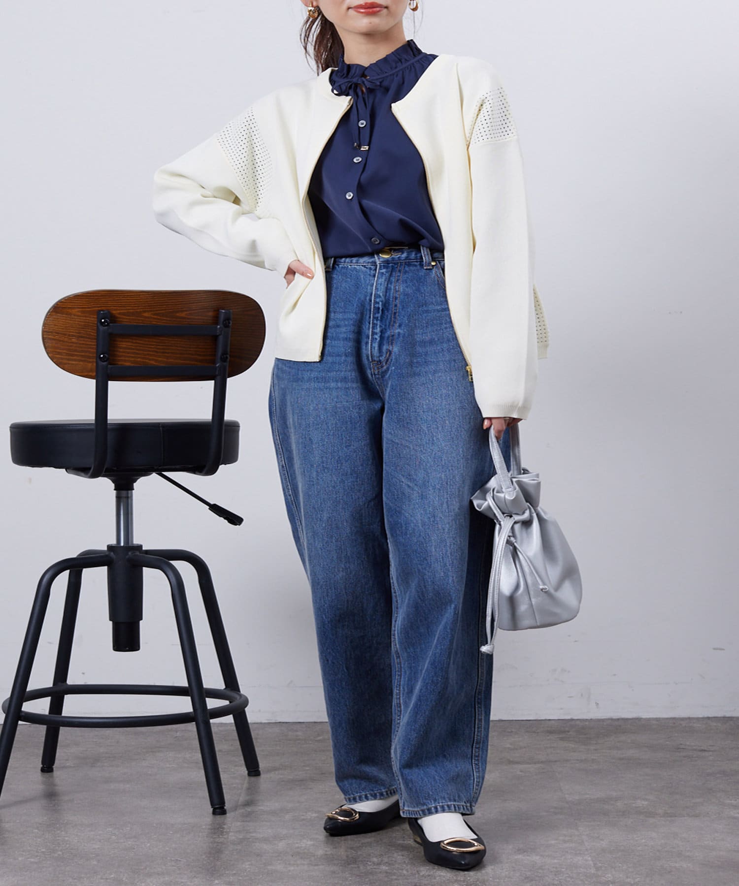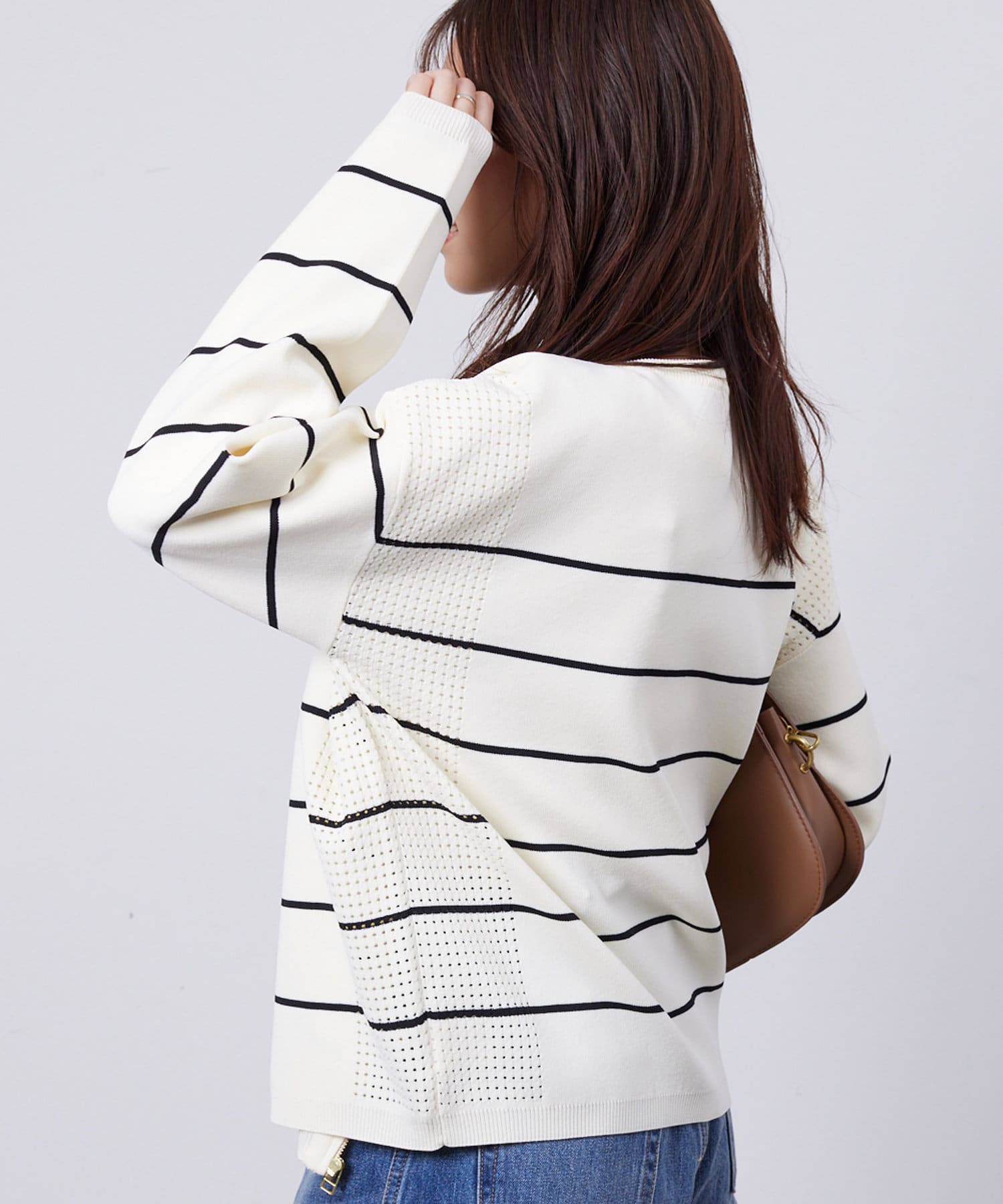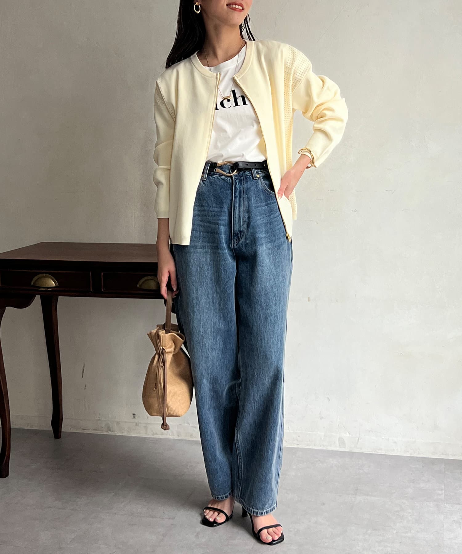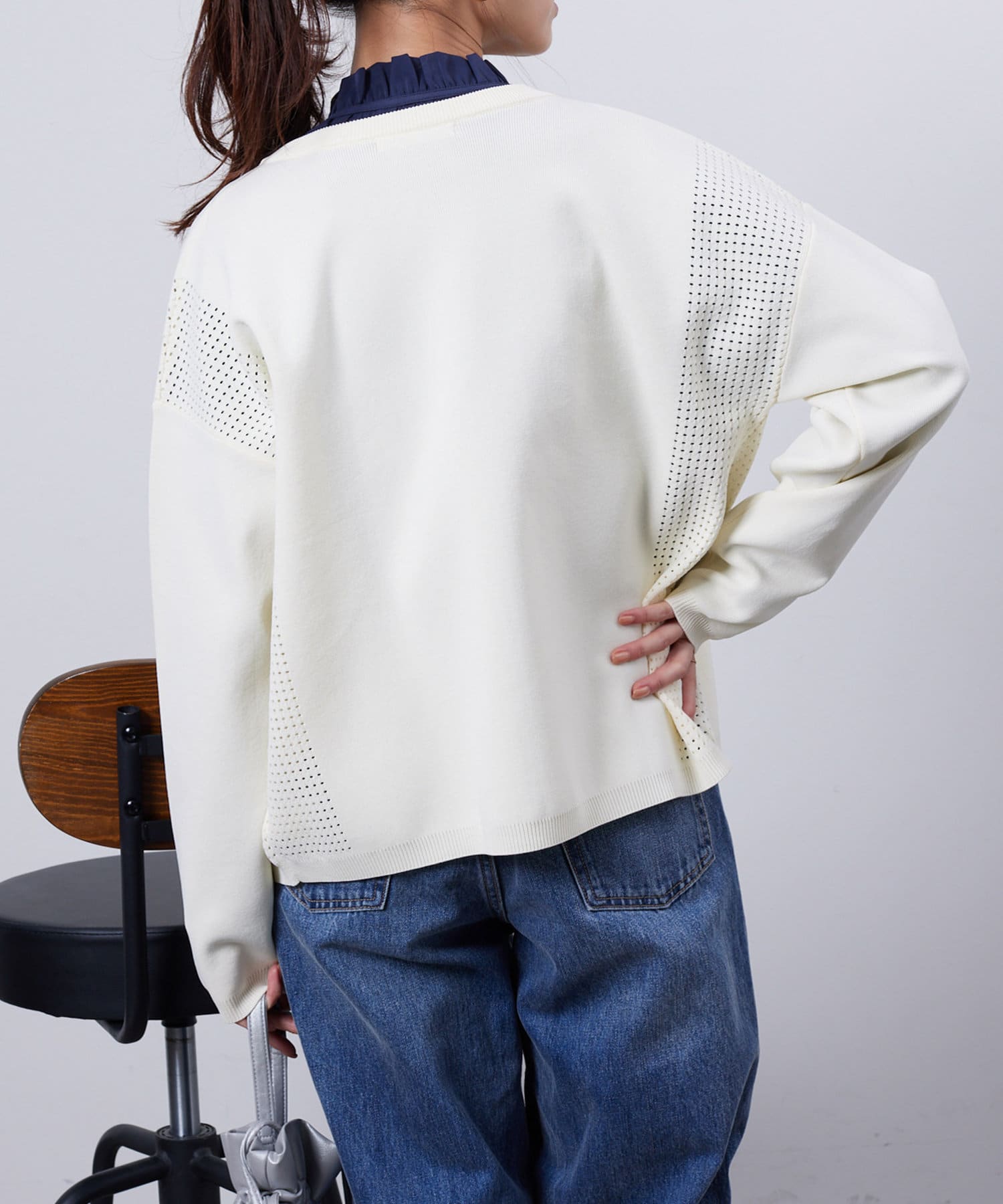 Chez toi(シェトワ) 軽量ニットアイレットジップカーディガン