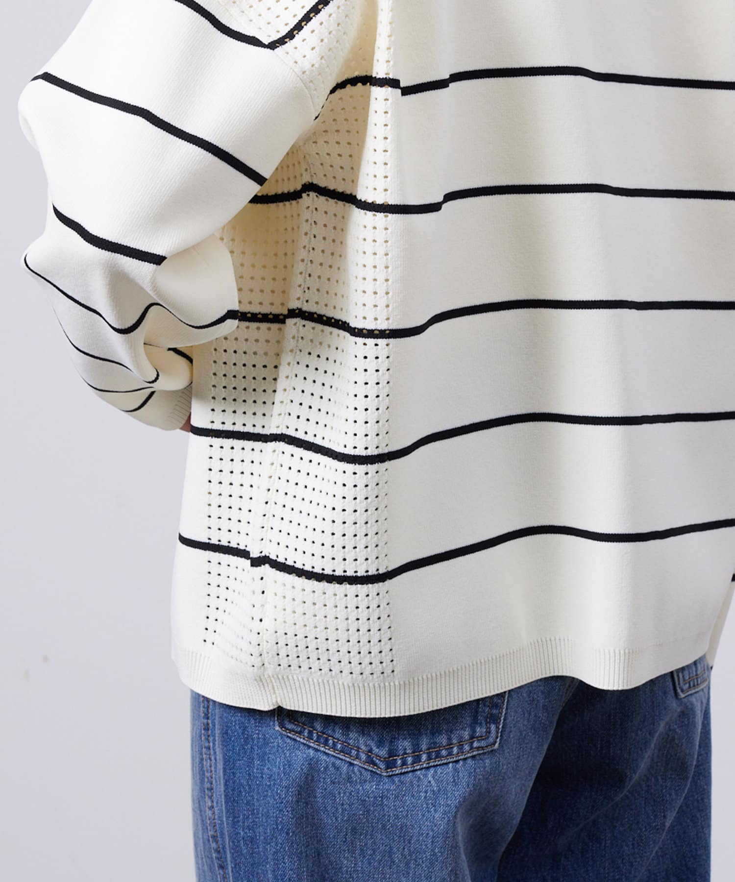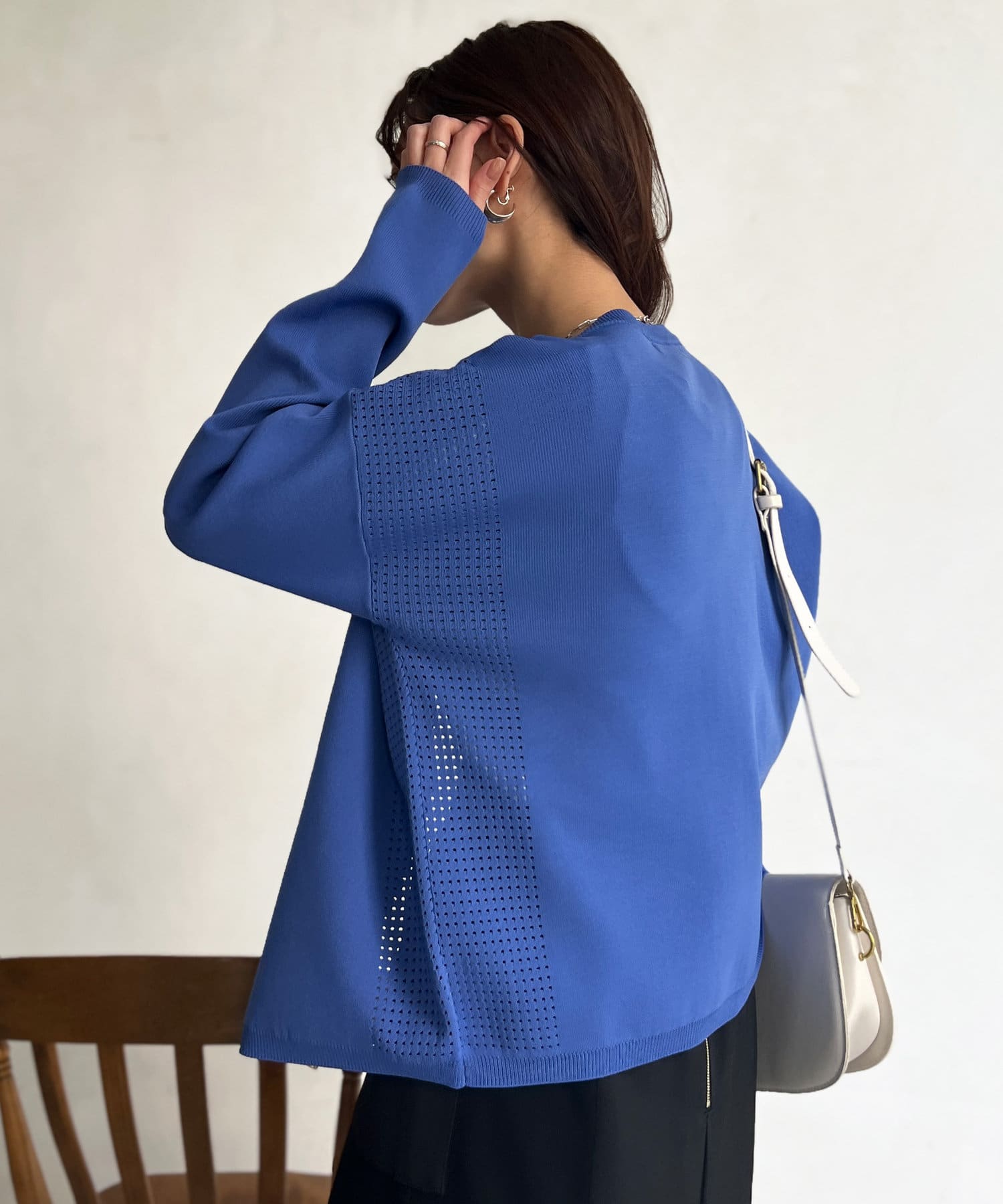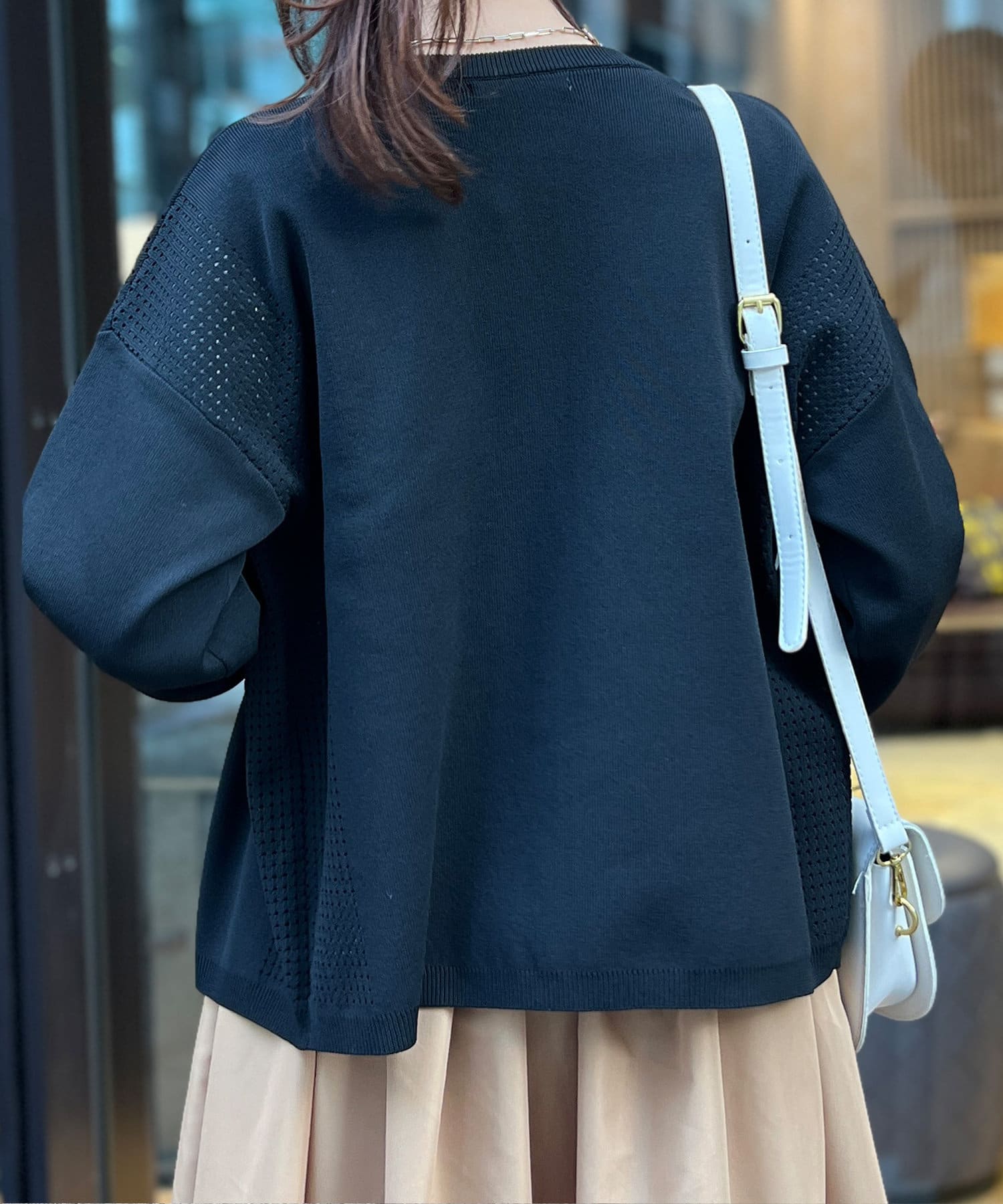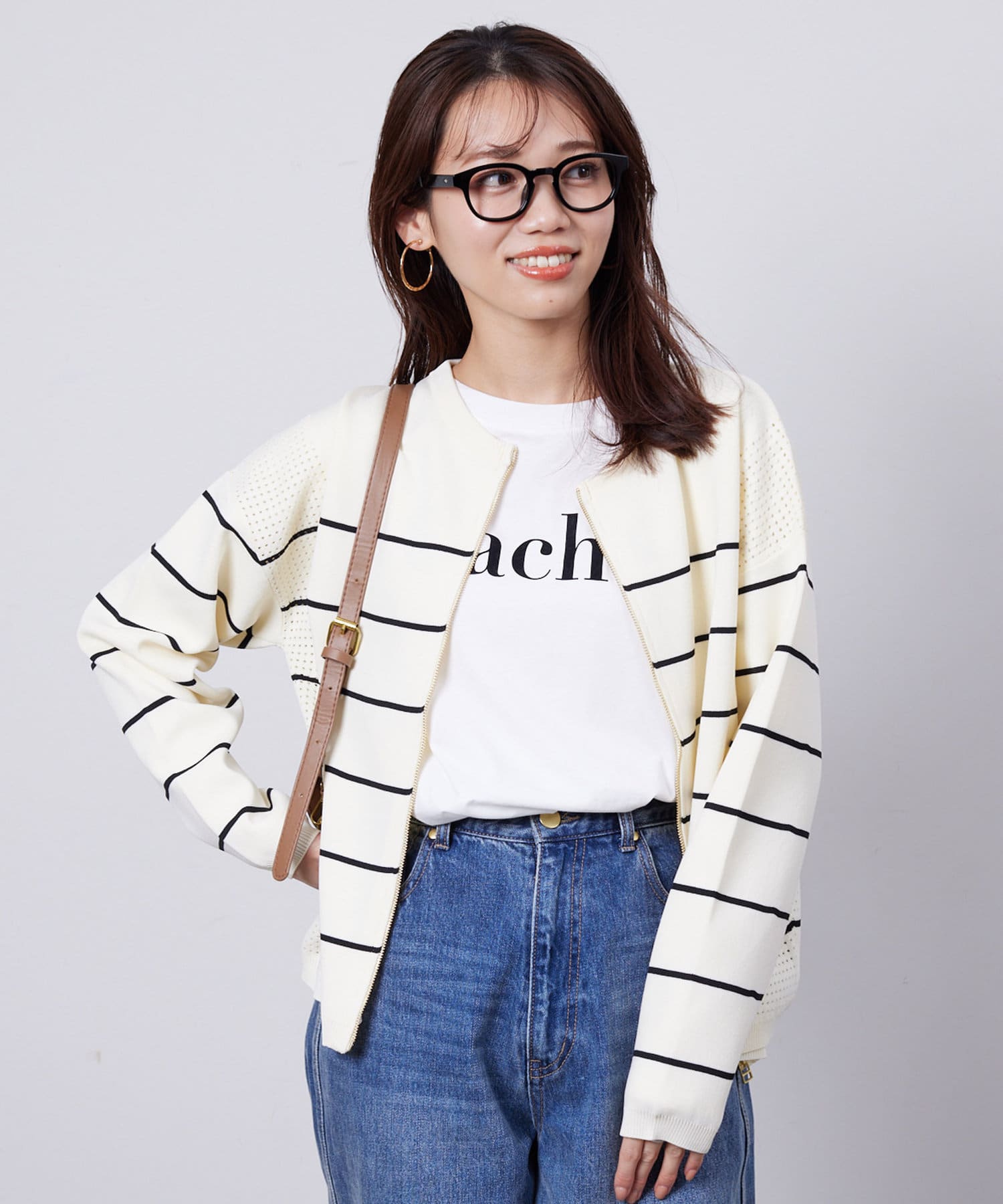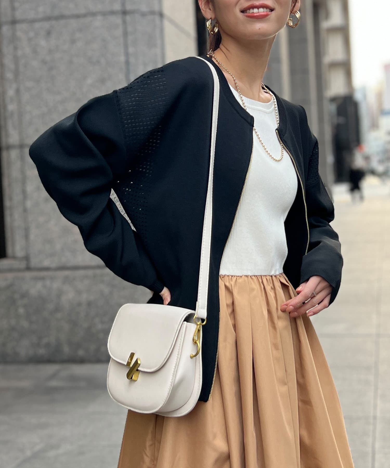 Chez toi(シェトワ) 軽量ニットアイレットジップカーディガン