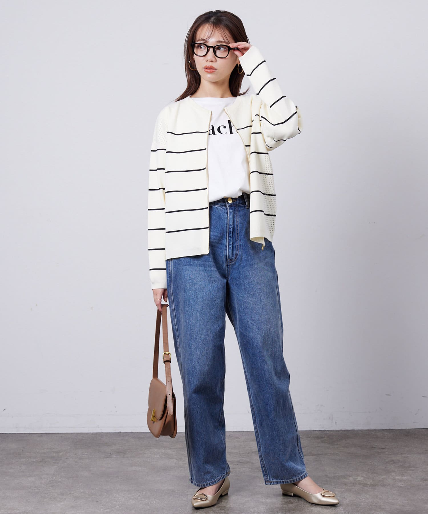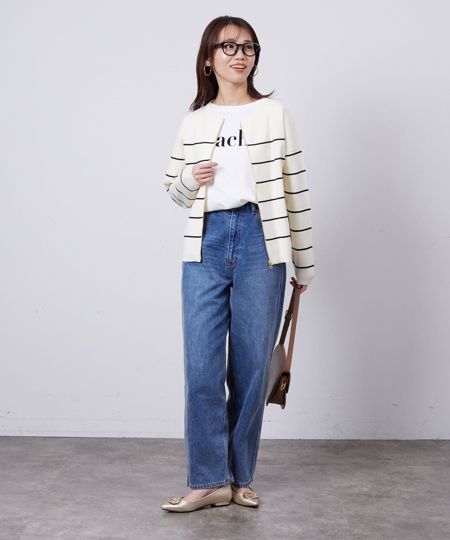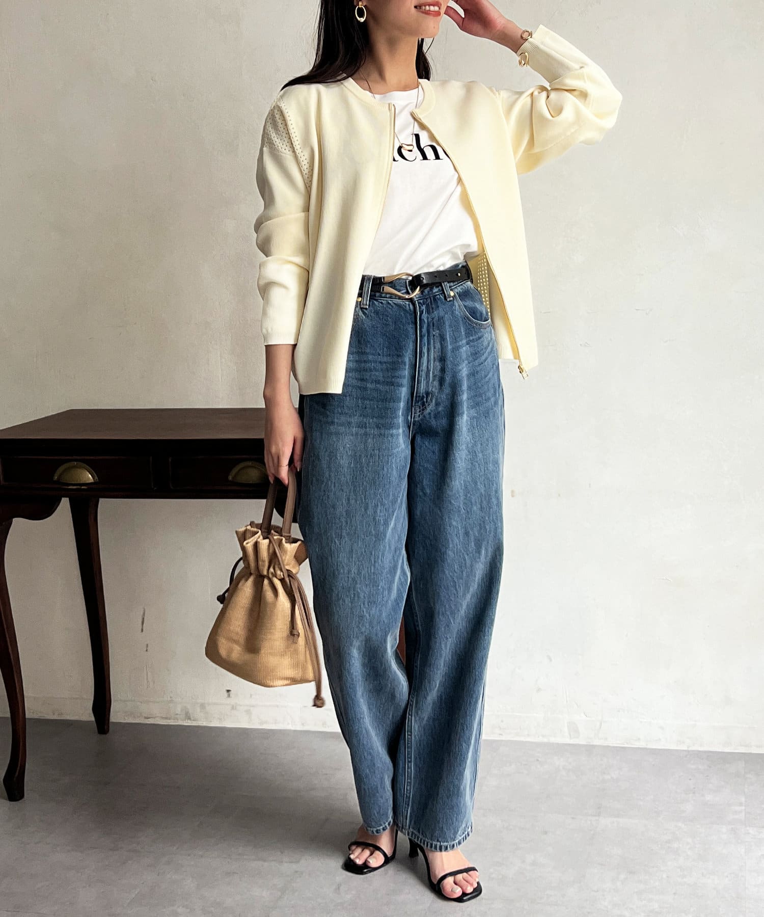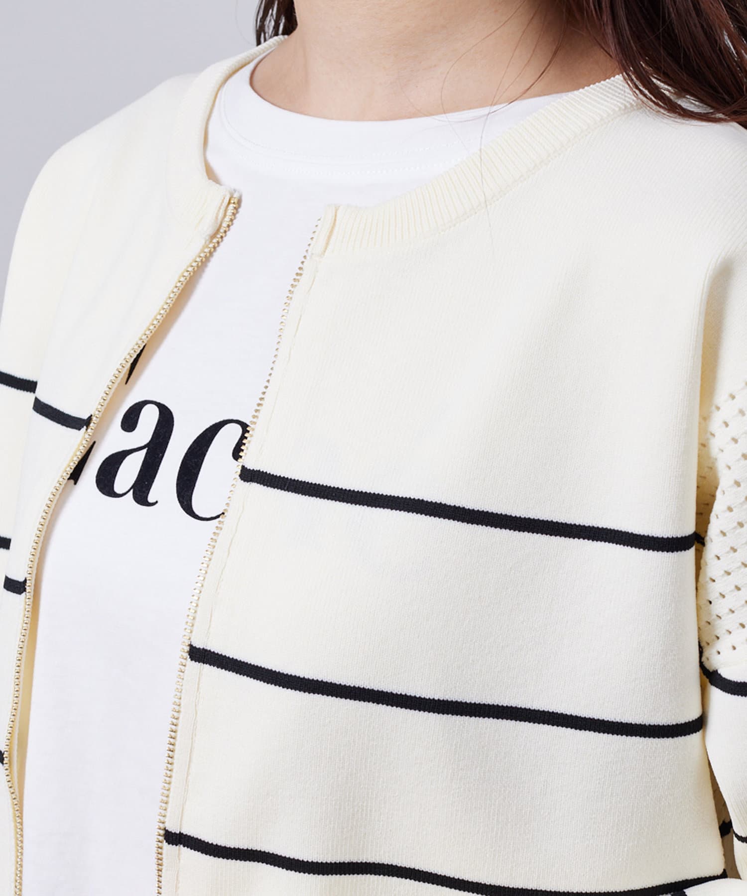 • Chez toi(シェトワ) 軽量ニットアイレットジップカーディガン