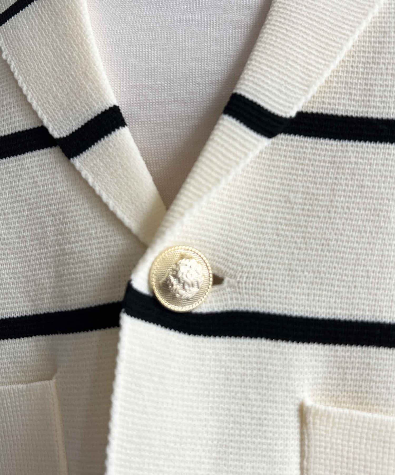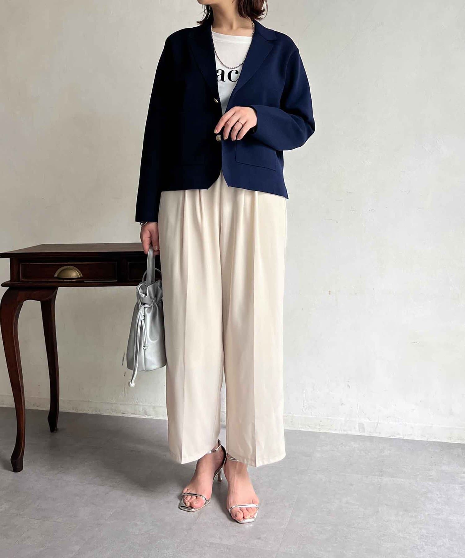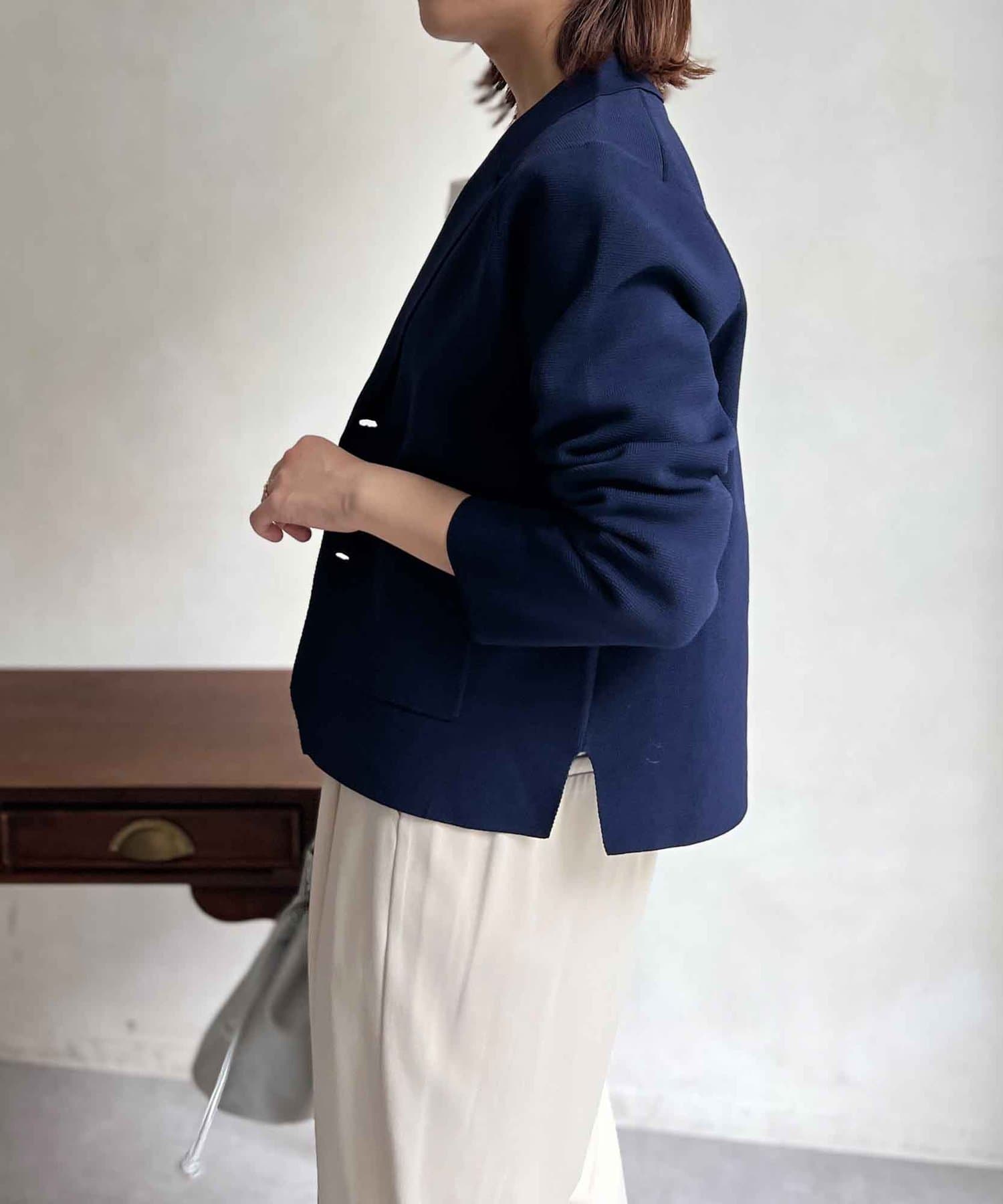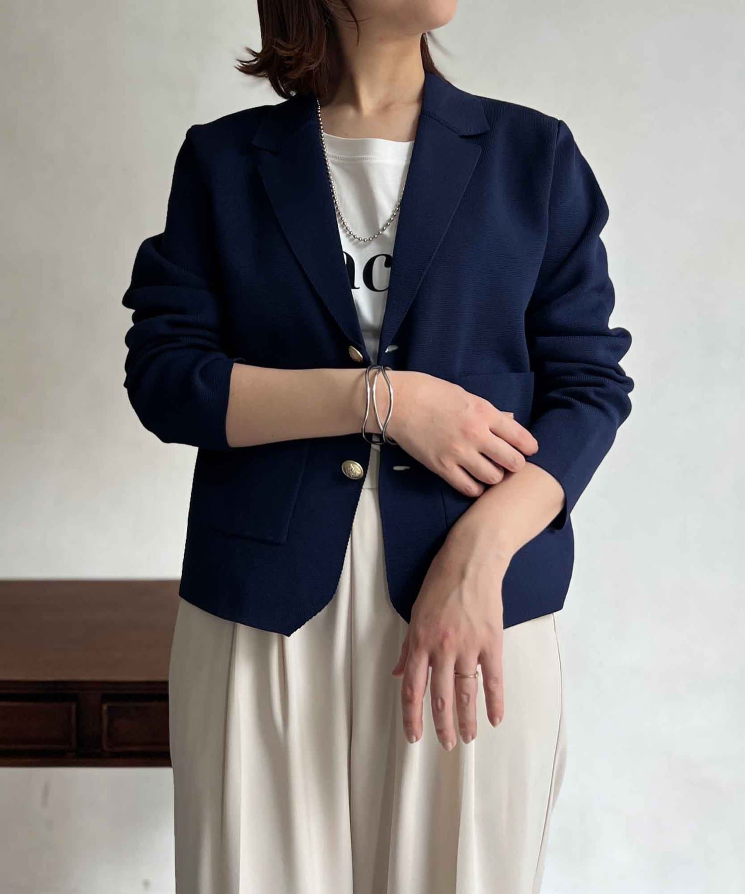 今季注目のテーラードジャケットにニット素材は登場