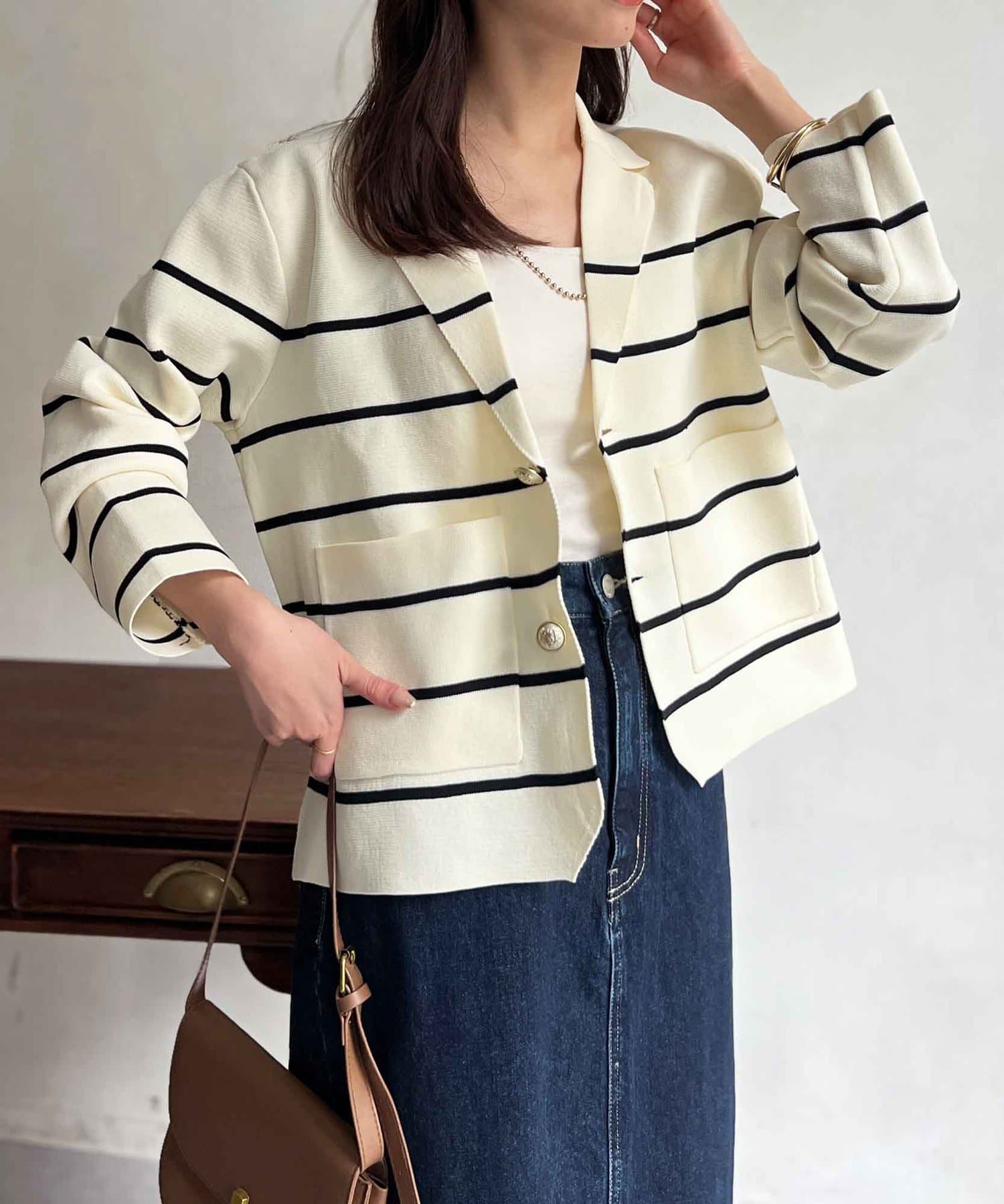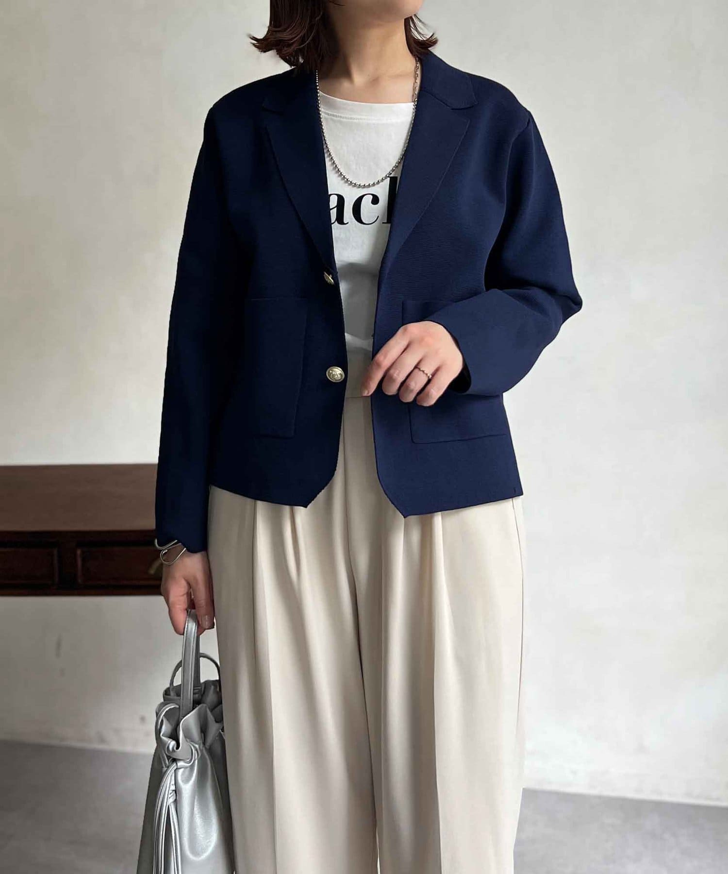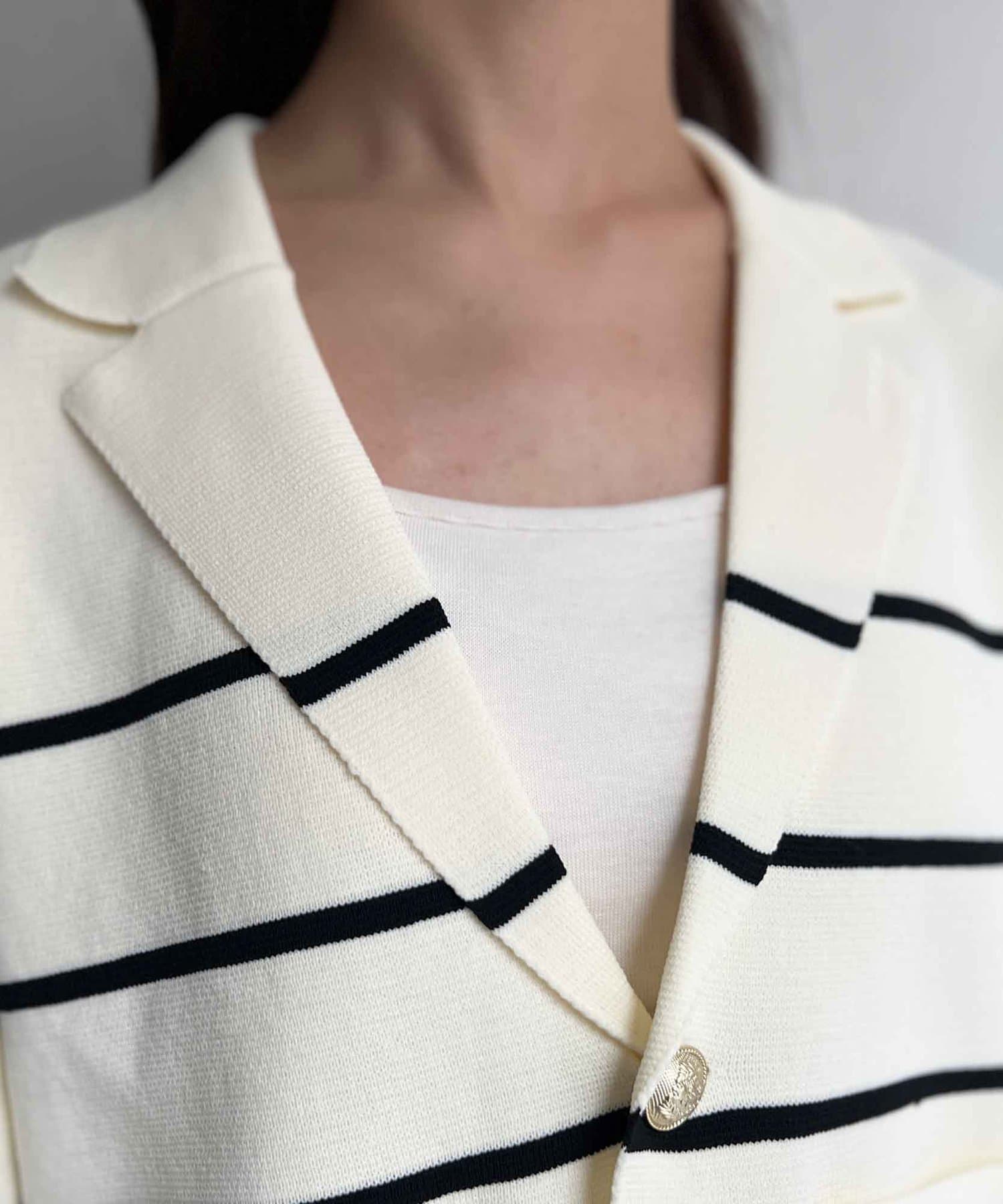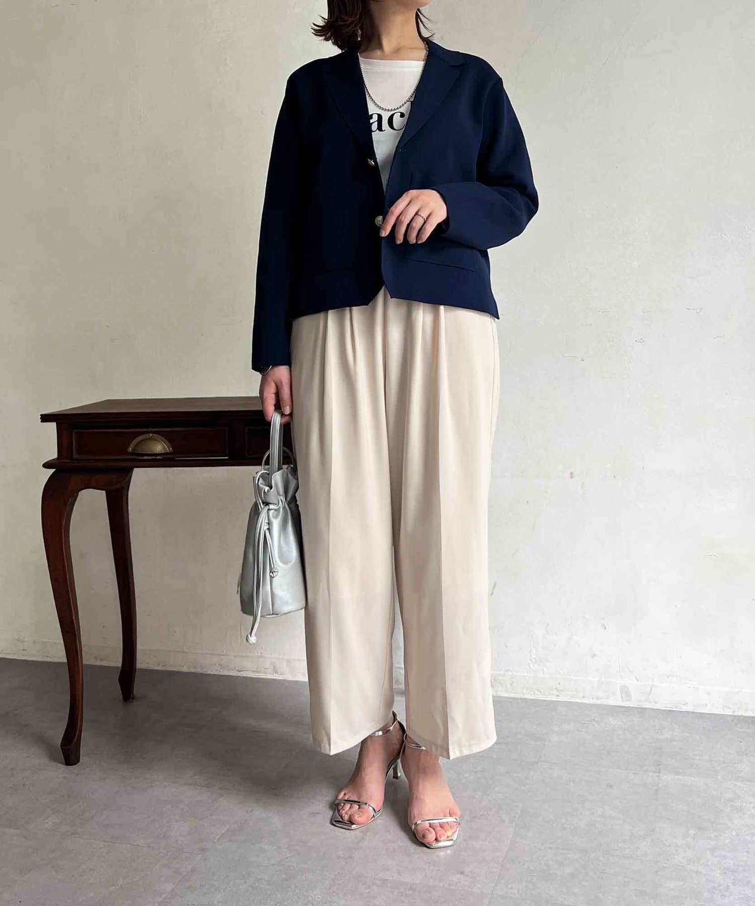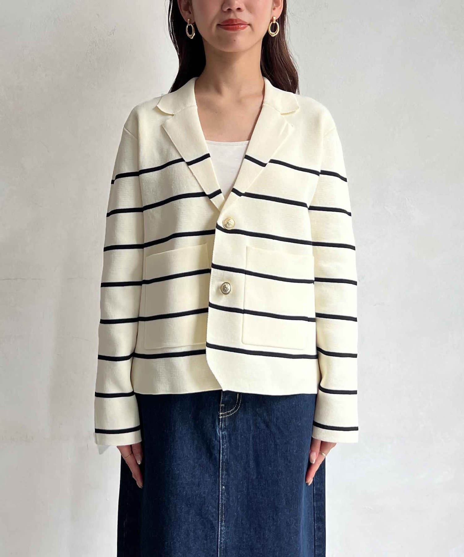 今季注目のテーラードジャケットにニット素材は登場