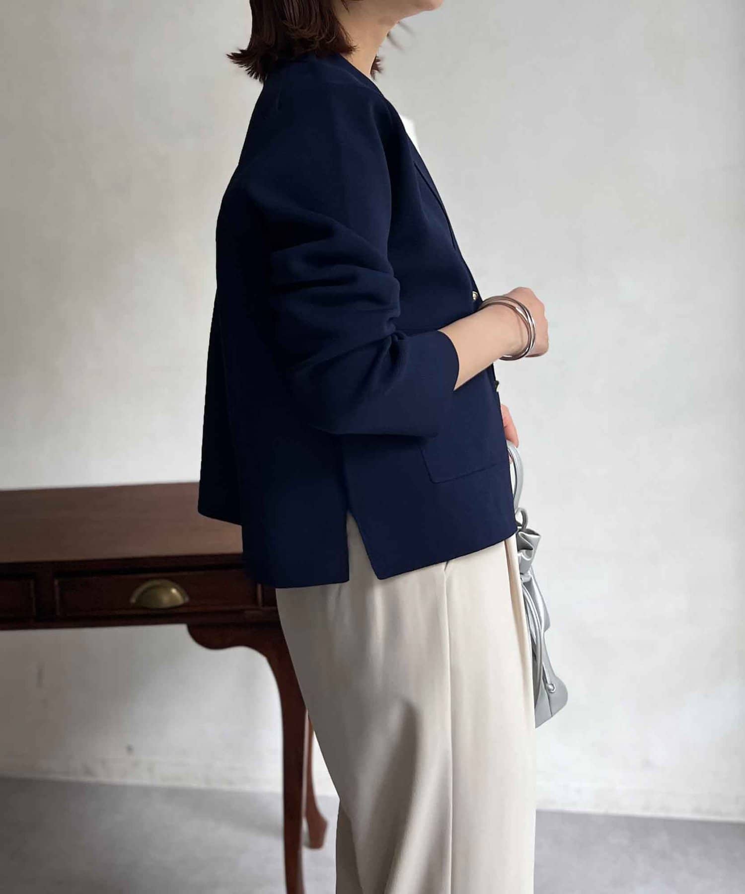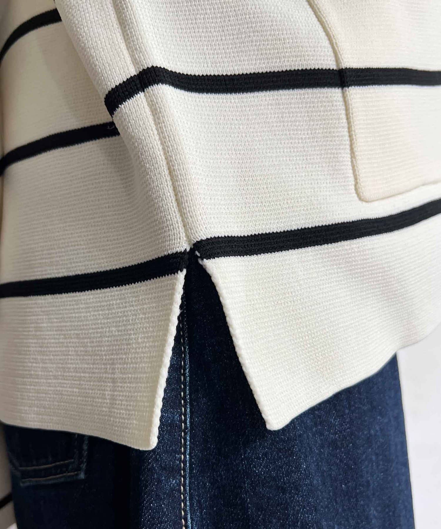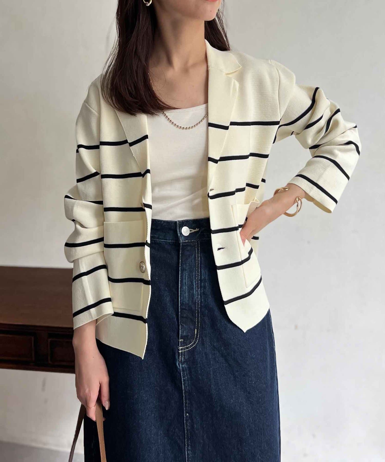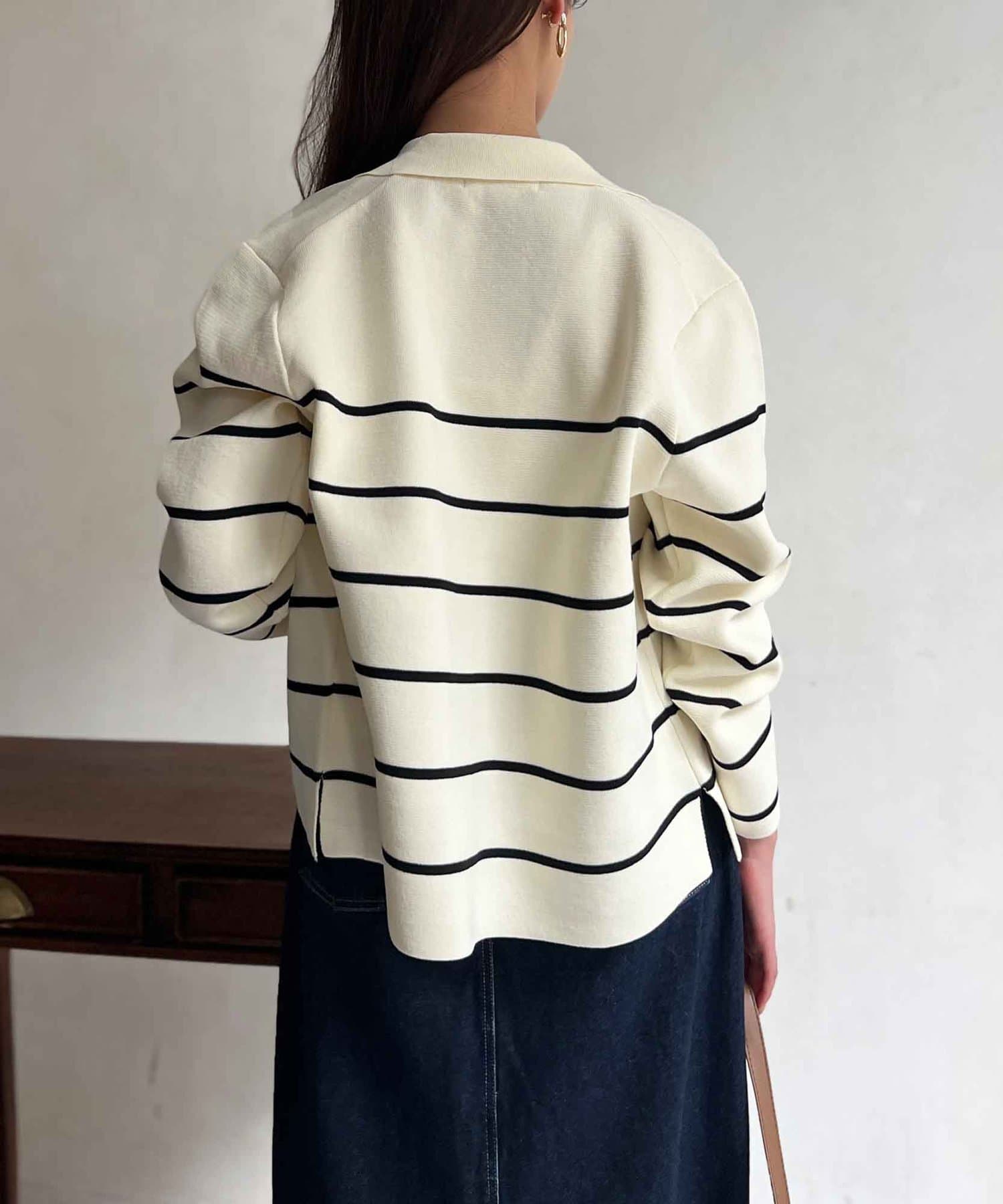 今季注目のテーラードジャケットにニット素材は登場
