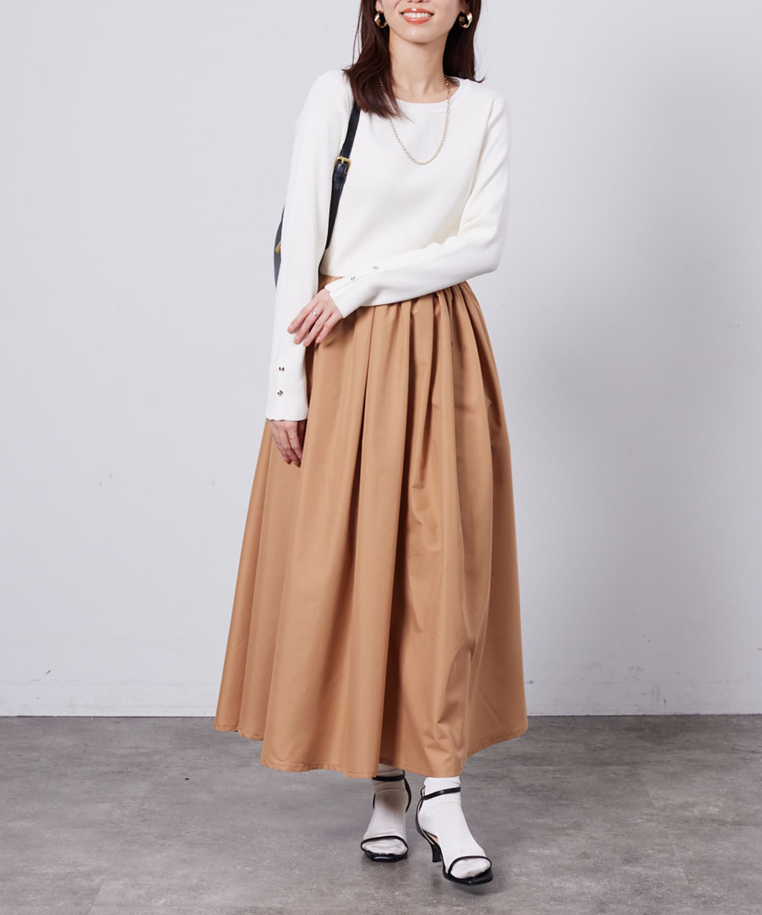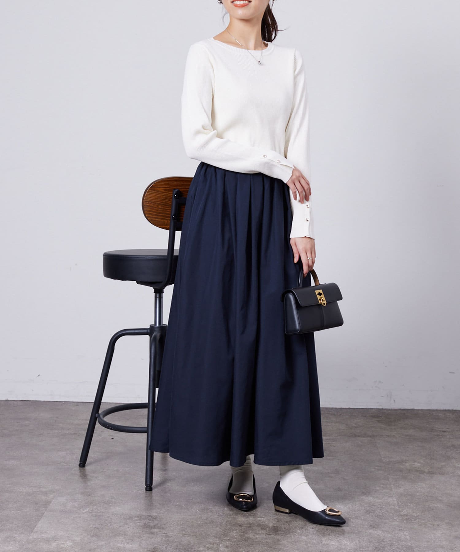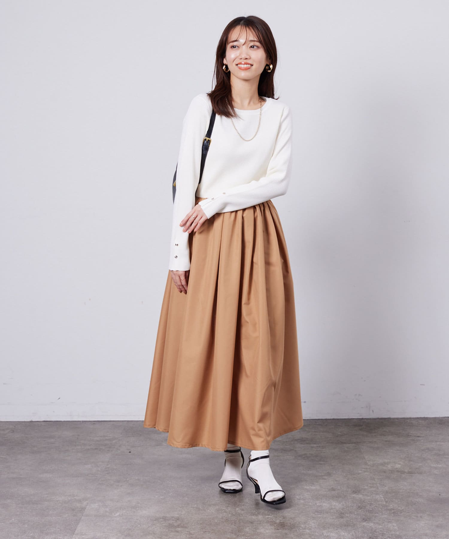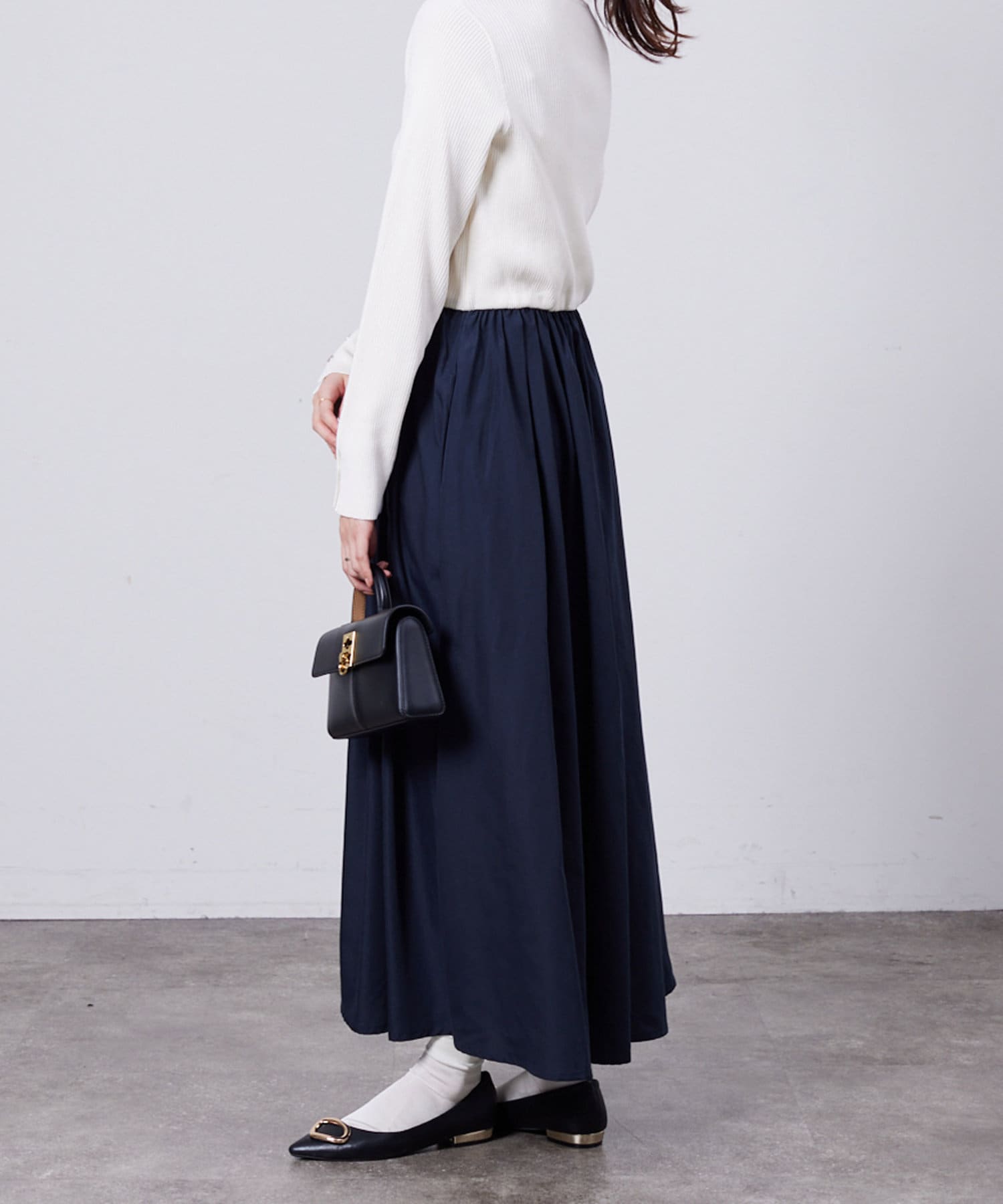 身体のラインを拾わない美しいシルエットのフレアスカートは