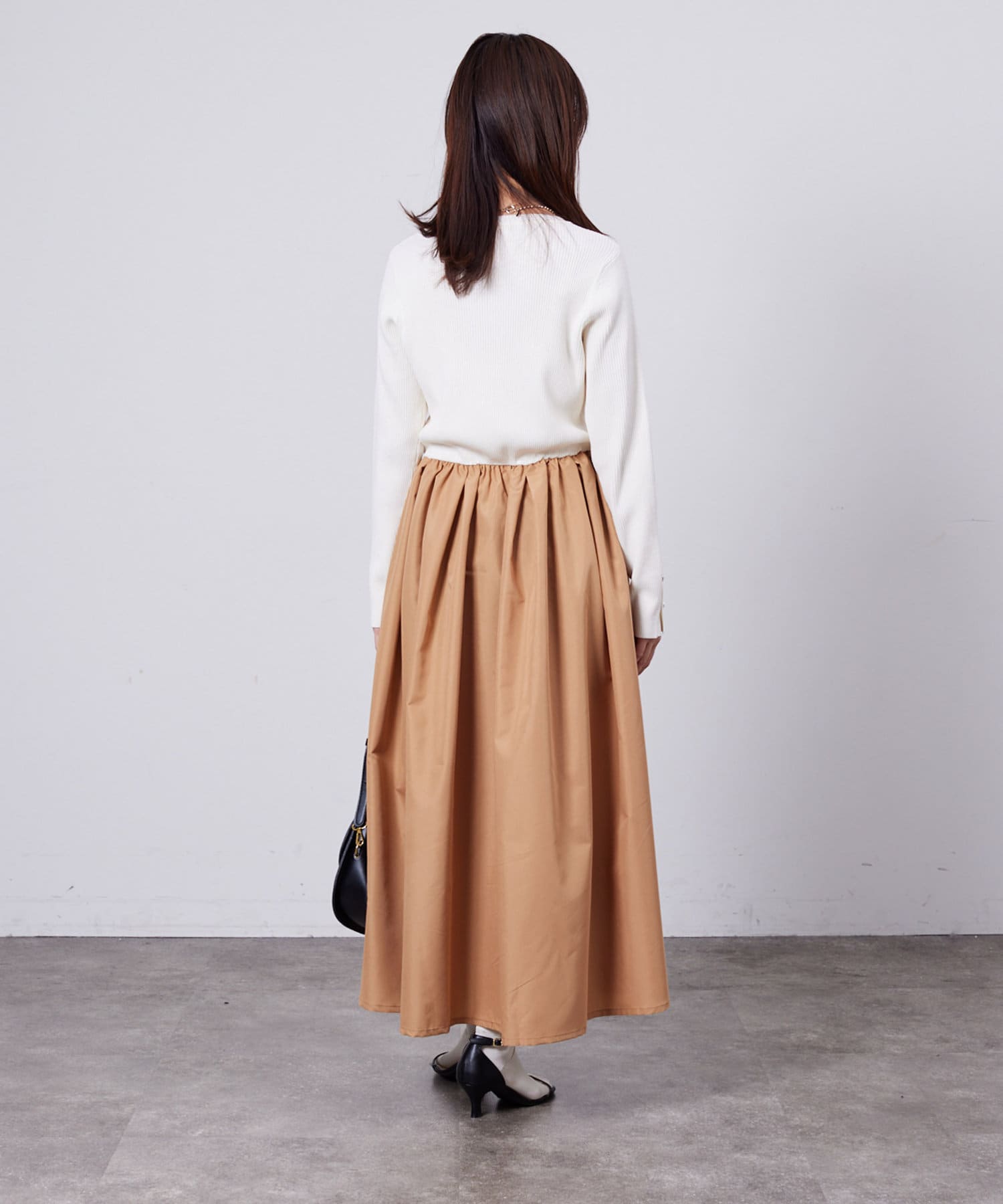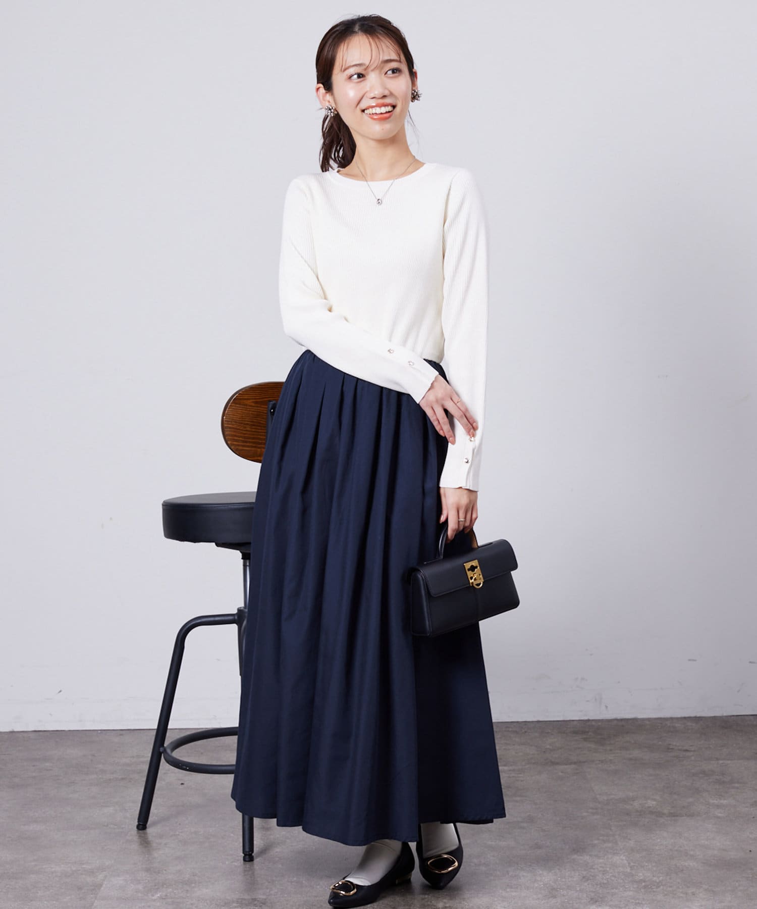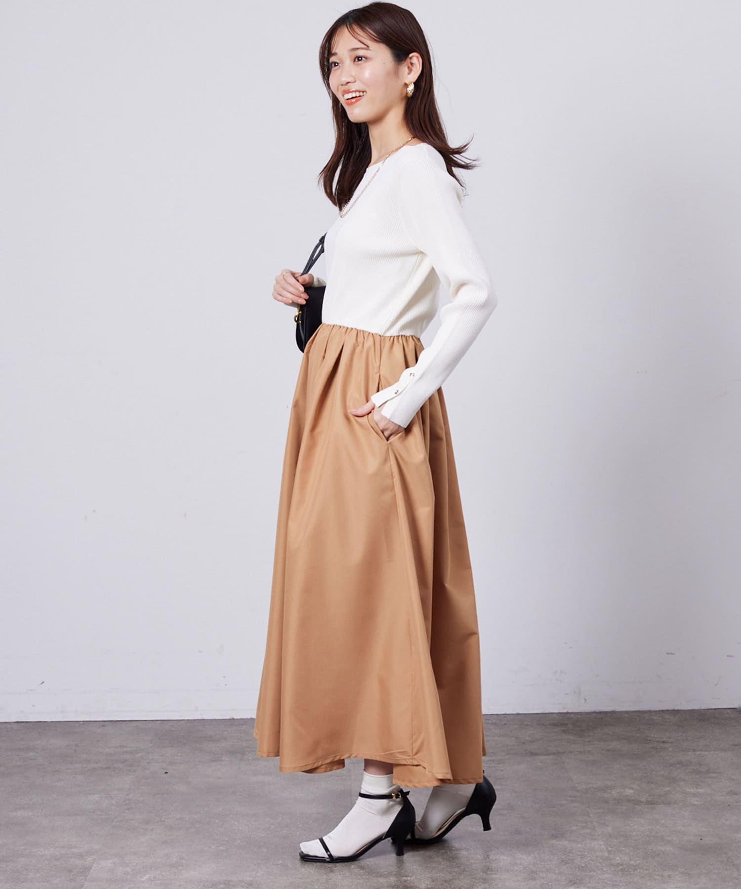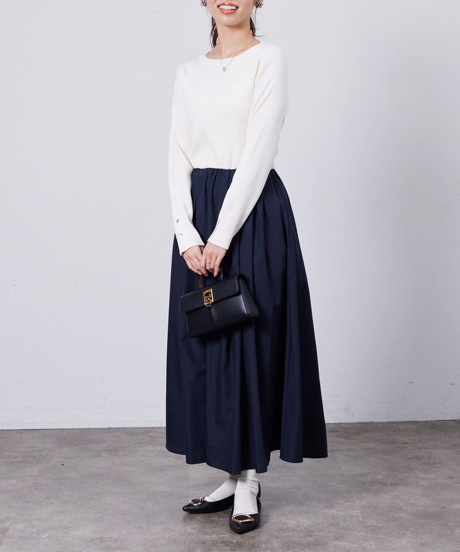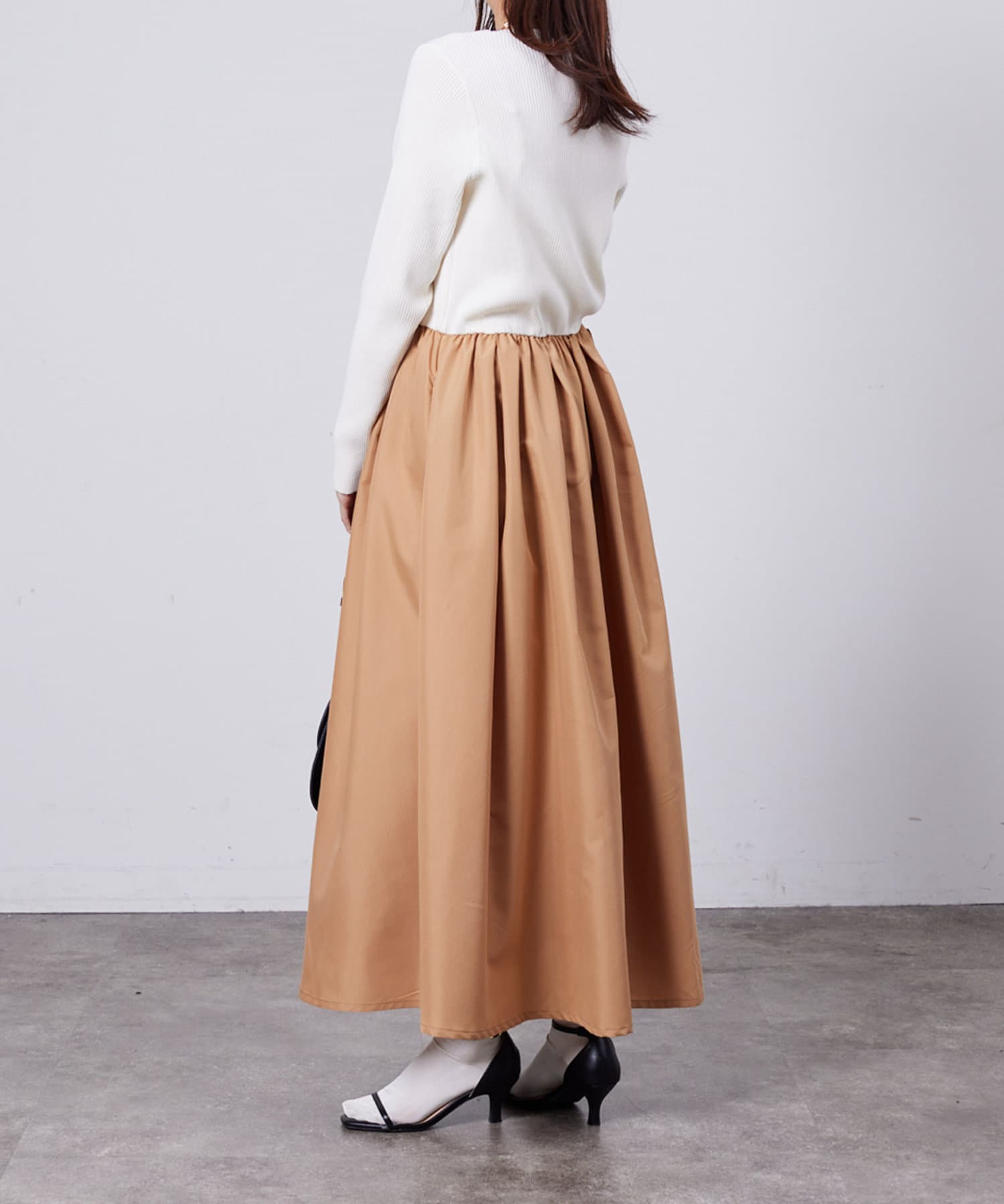 身体のラインを拾わない美しいシルエットのフレアスカートは