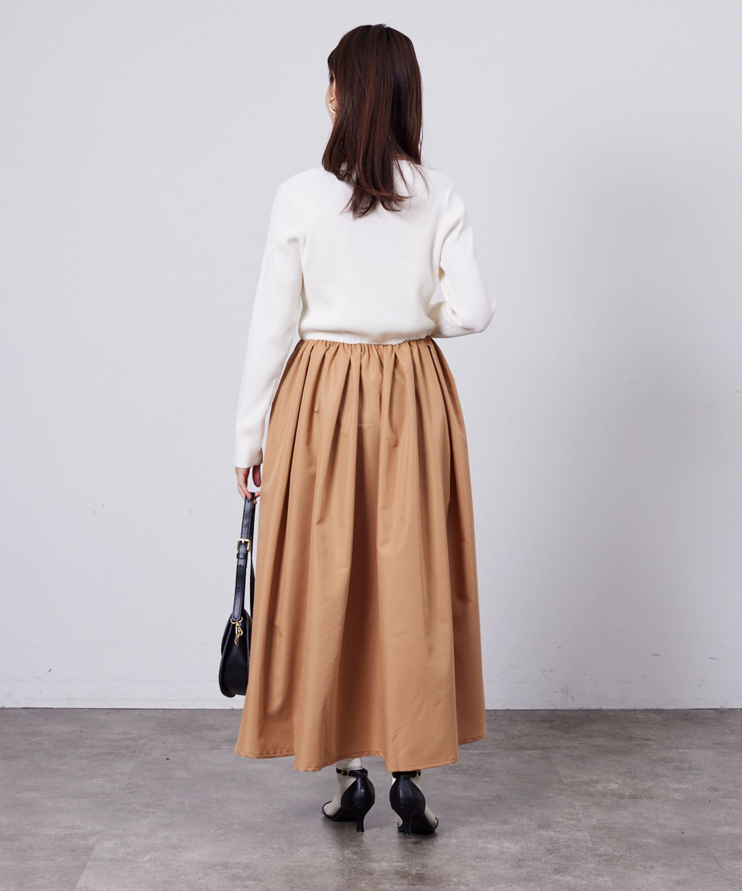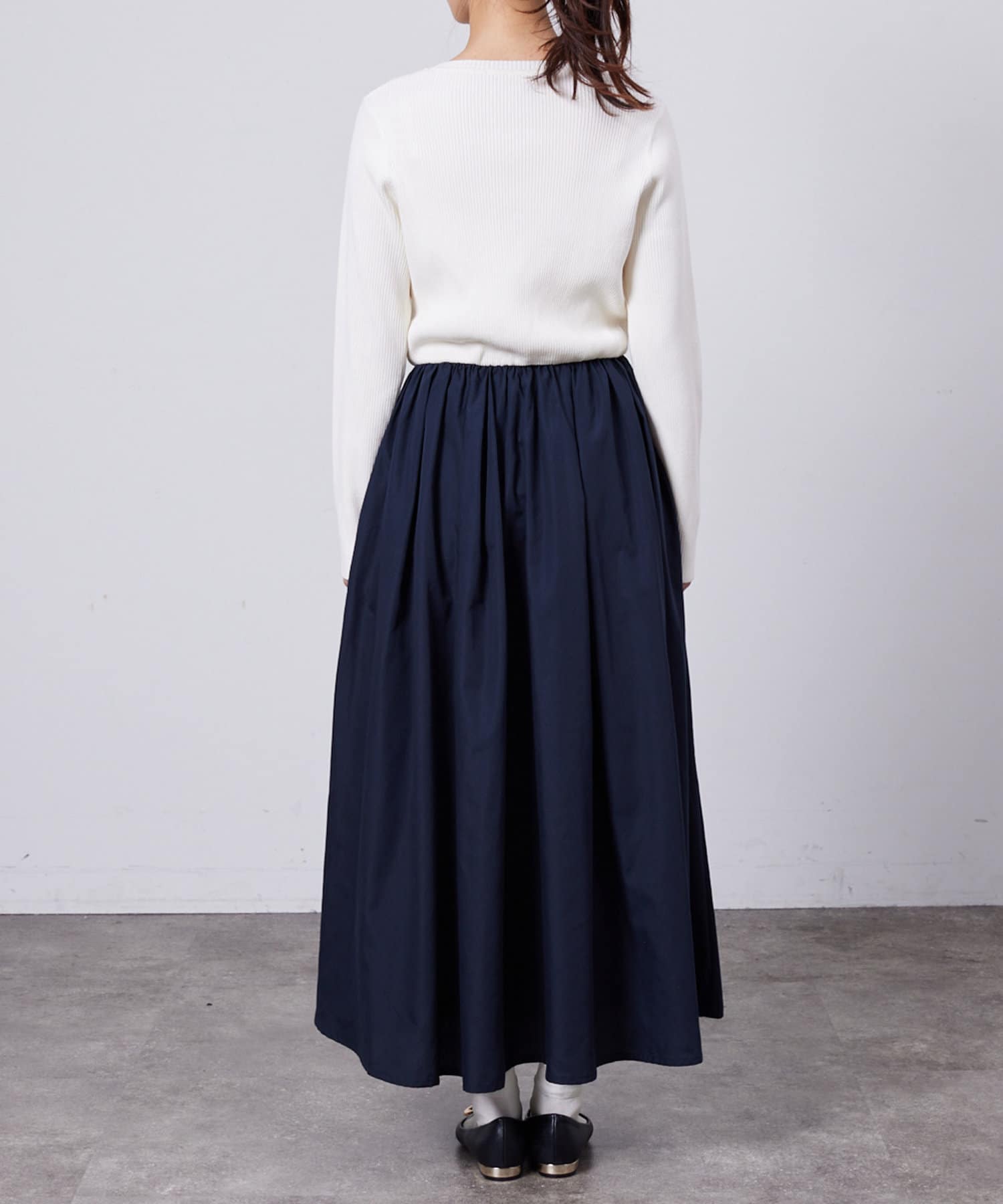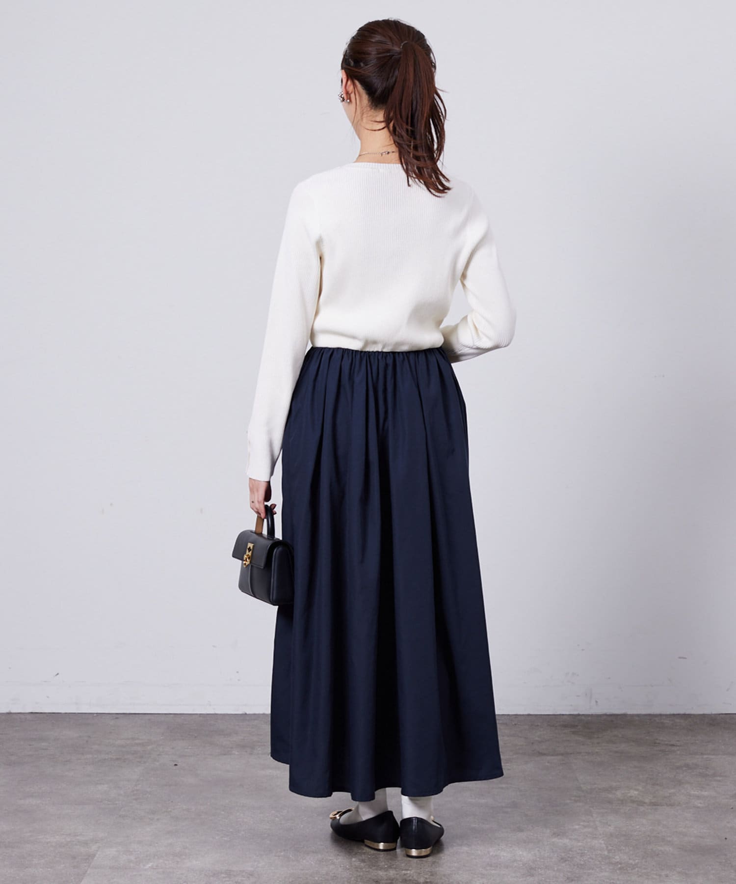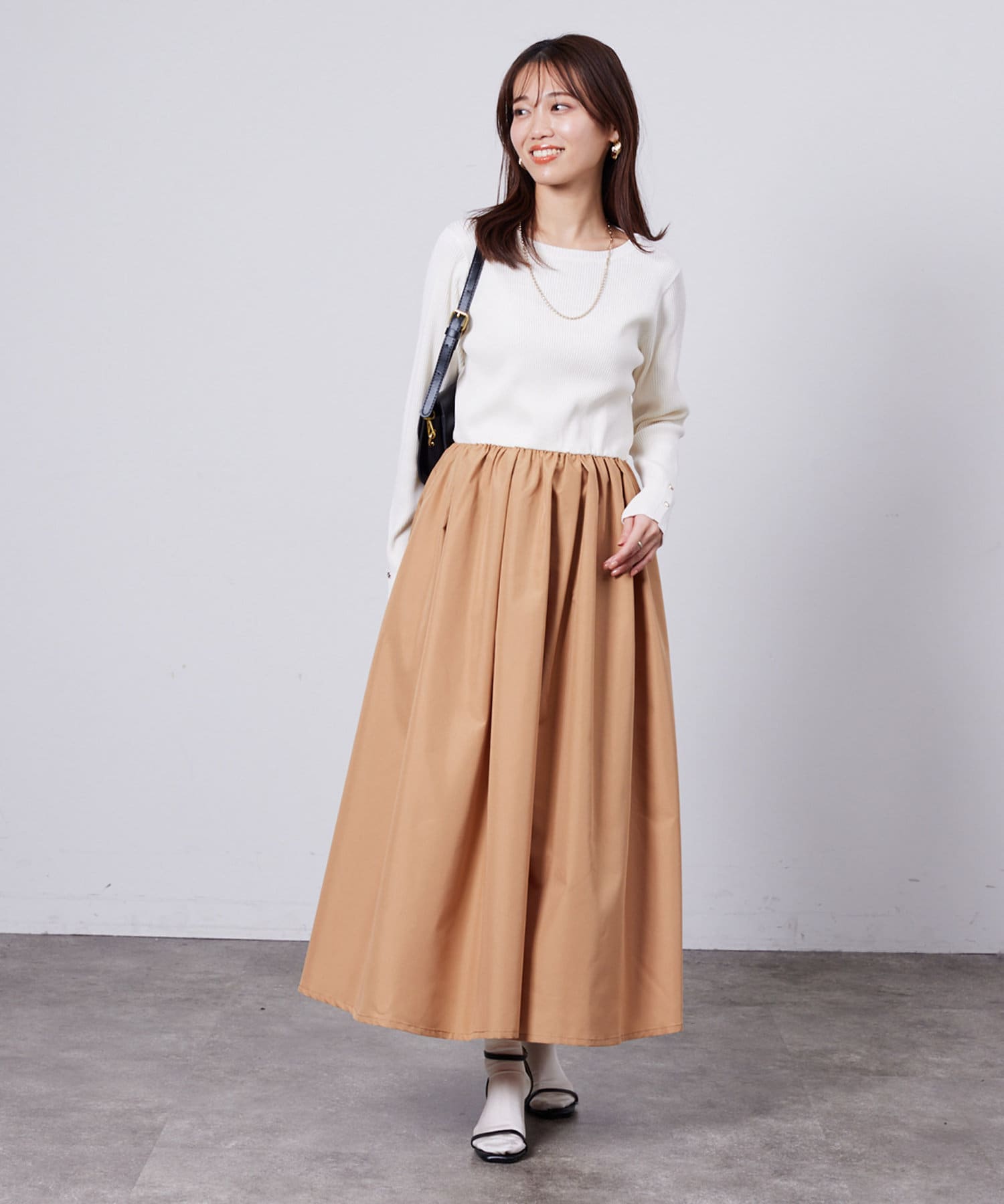 身体のラインを拾わない美しいシルエットのフレアスカートは