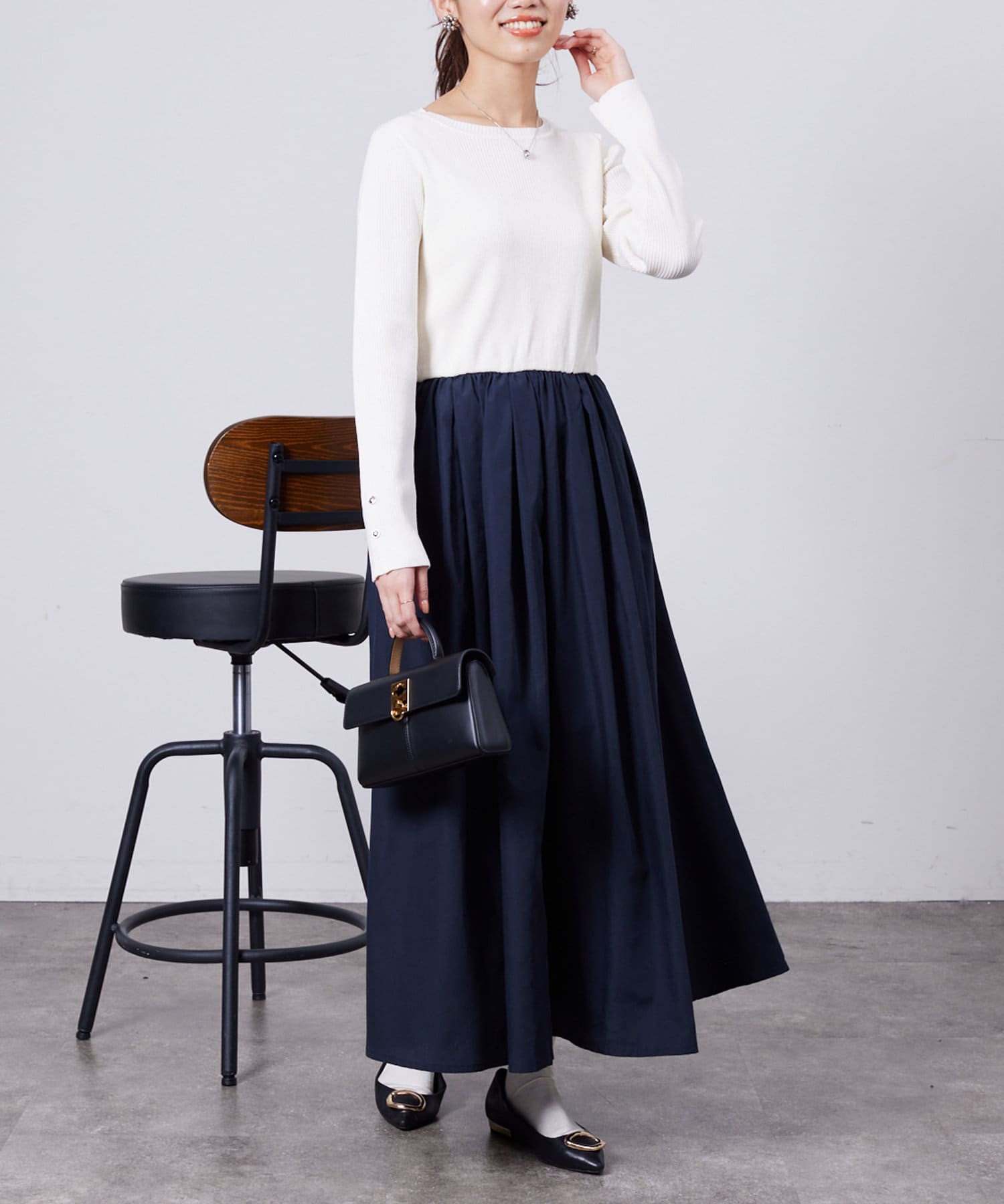 ドッキングデザインが上品でクラシックな印象のワンピース。