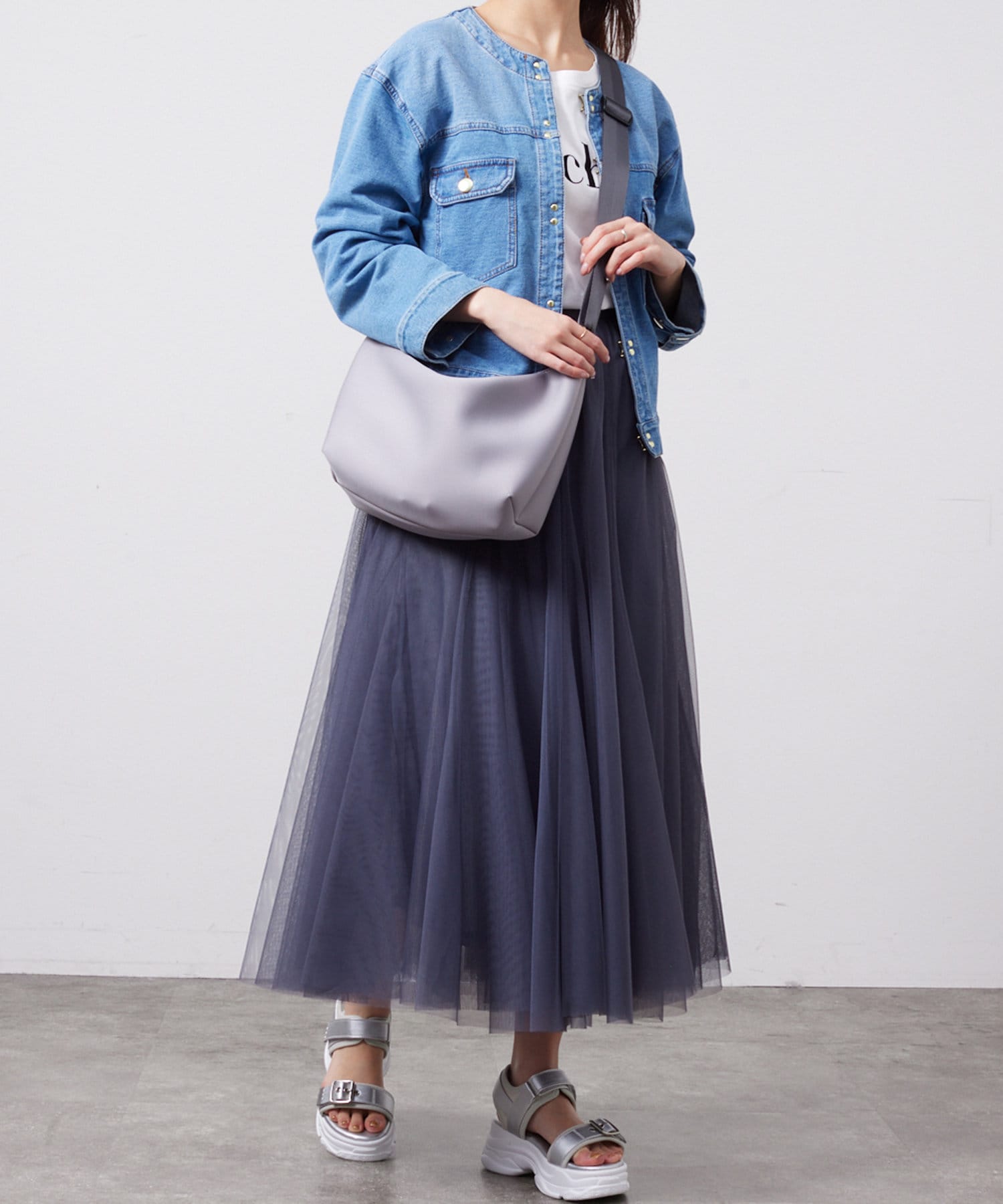 フレアスカートやワンピースに合わせて抜け感を出すのも