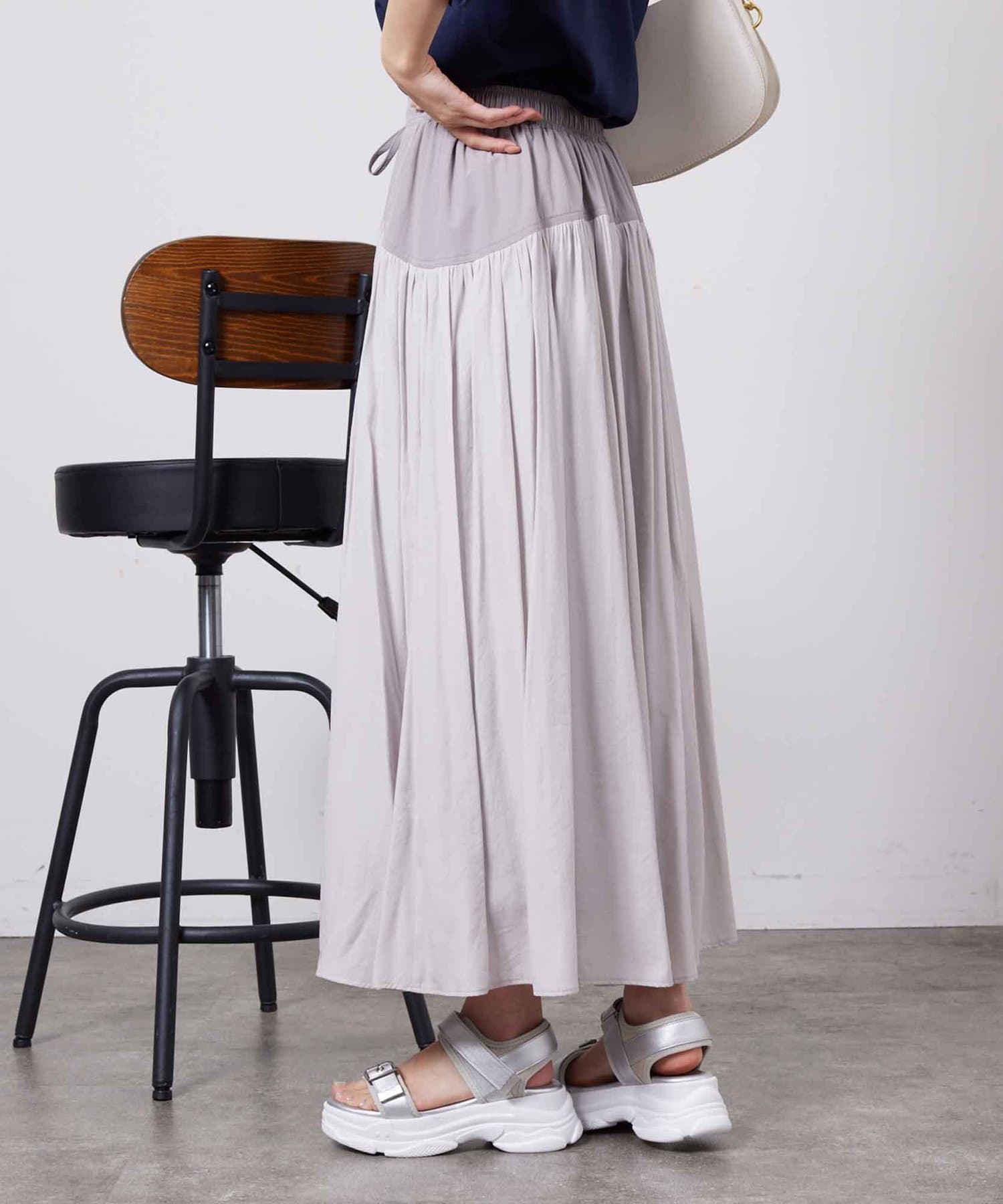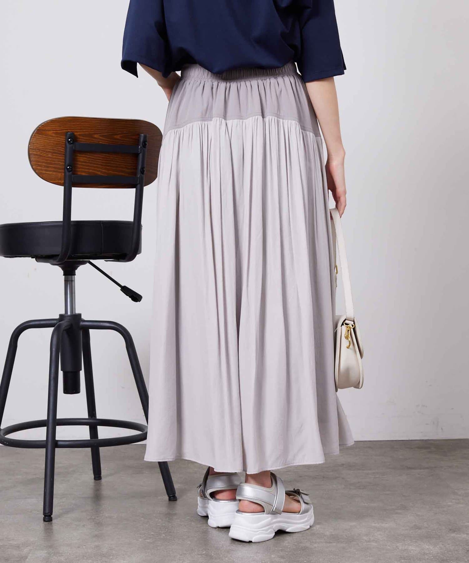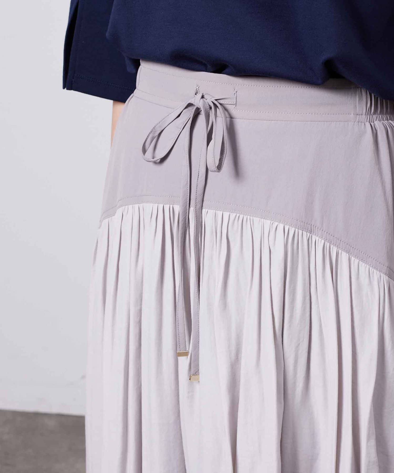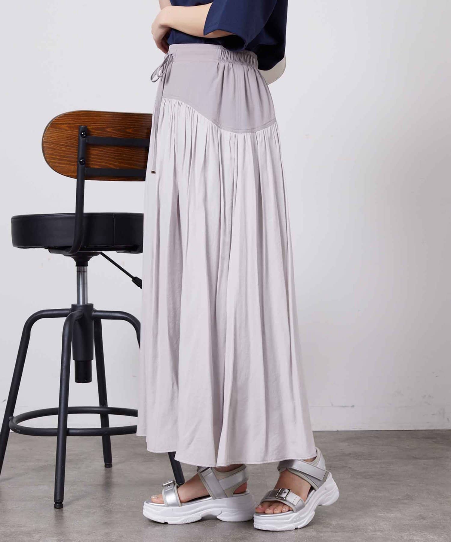 ウエストの切り替え部分から下は異素材の微光沢のある生地で