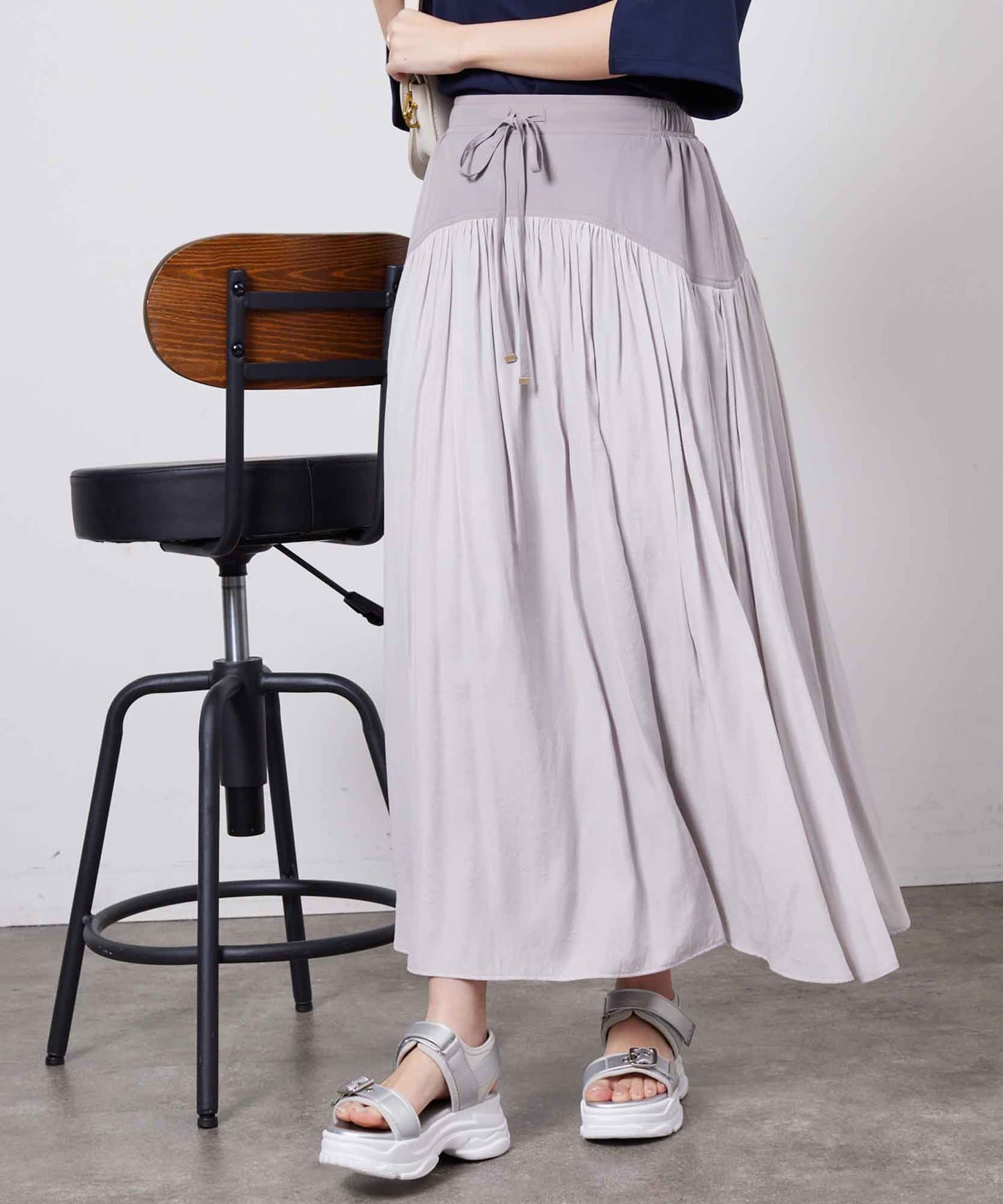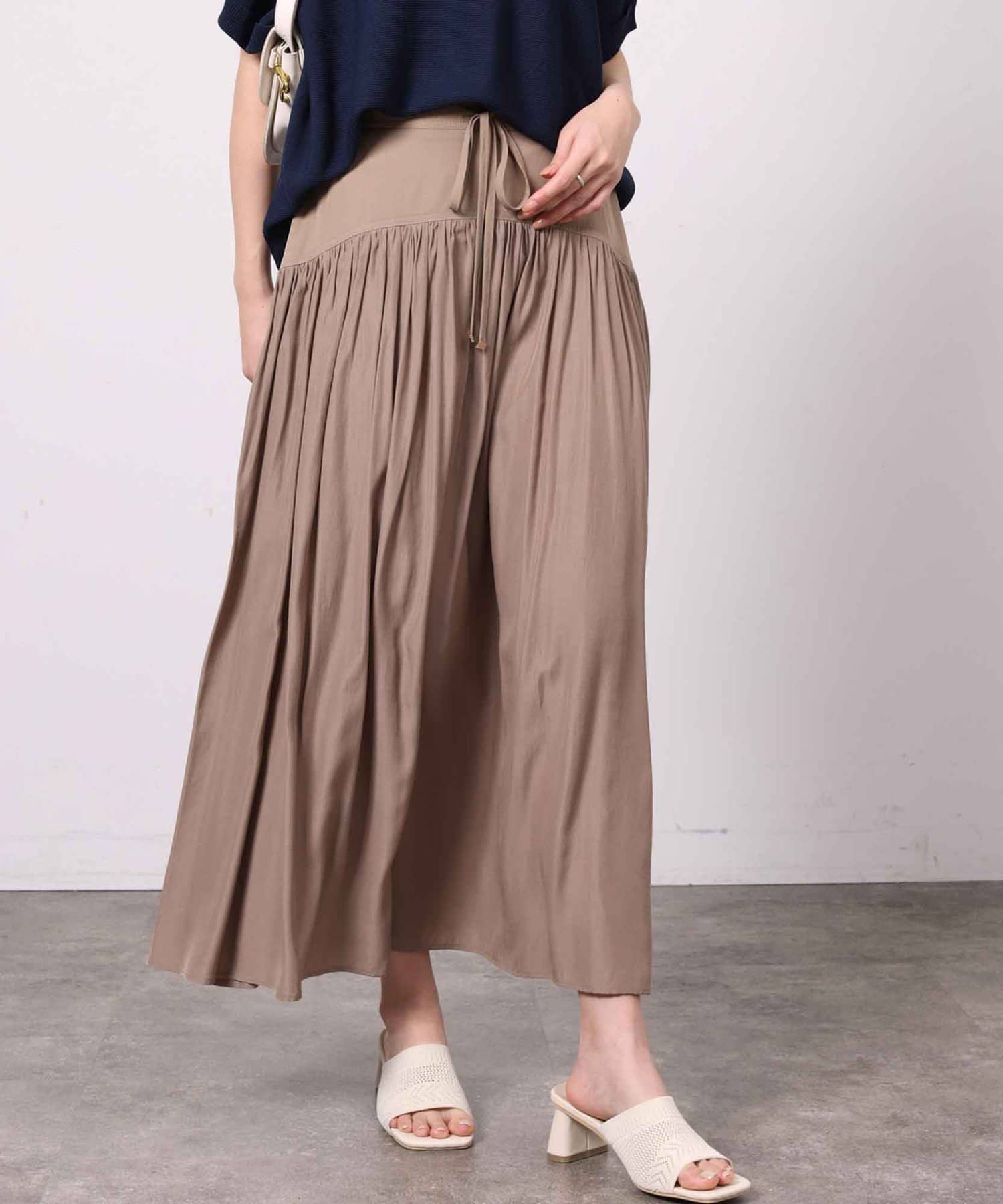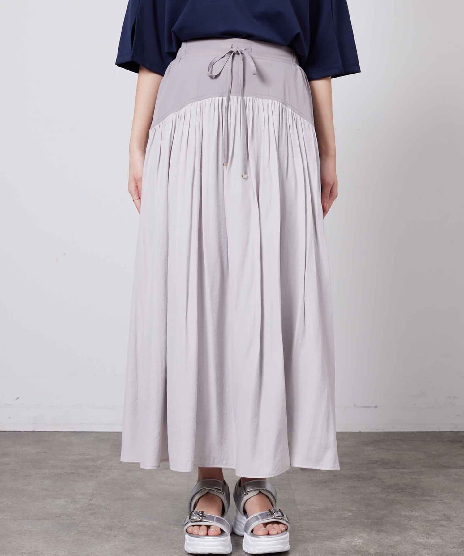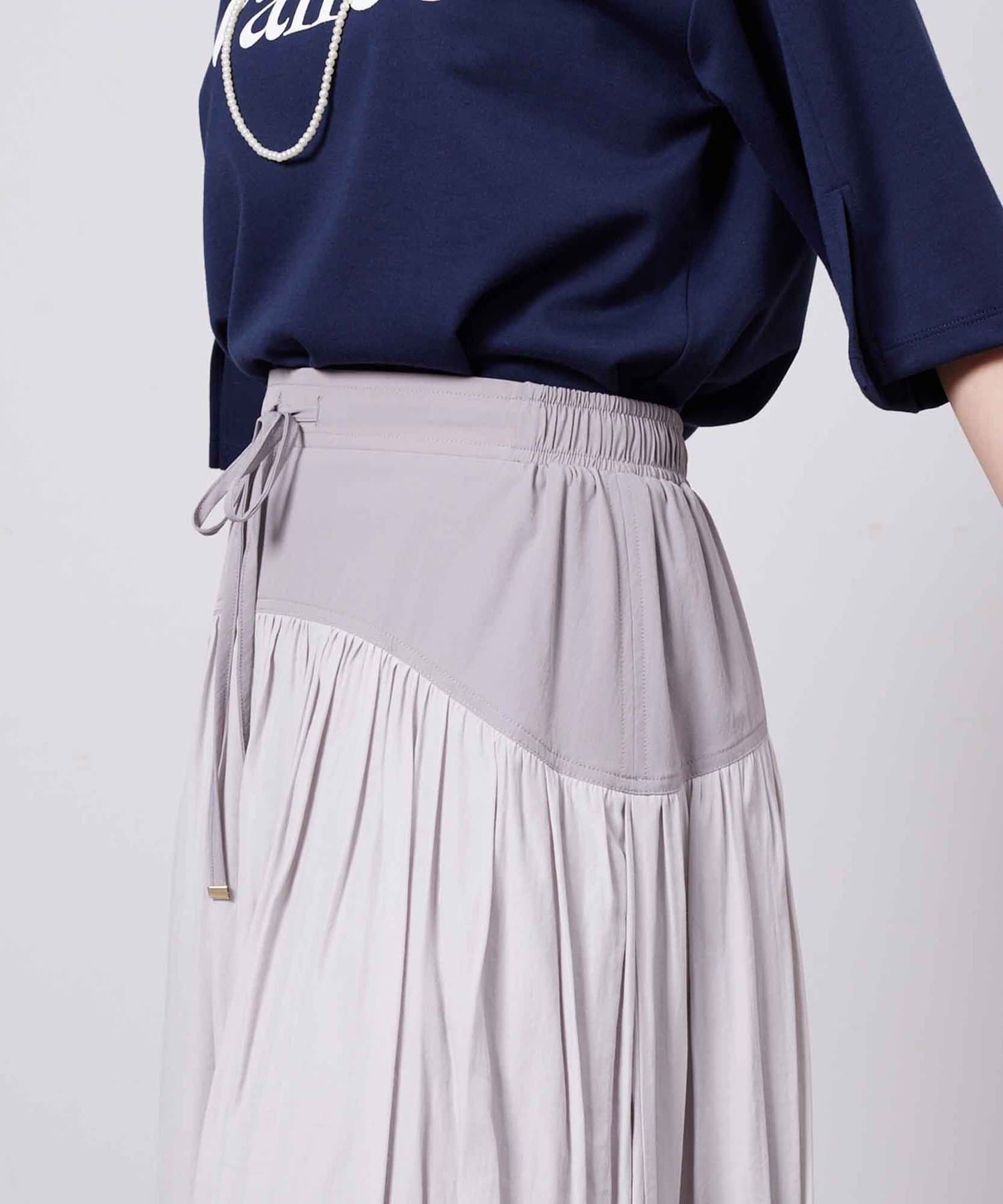 ウエストの切り替え部分から下は異素材の微光沢のある生地で