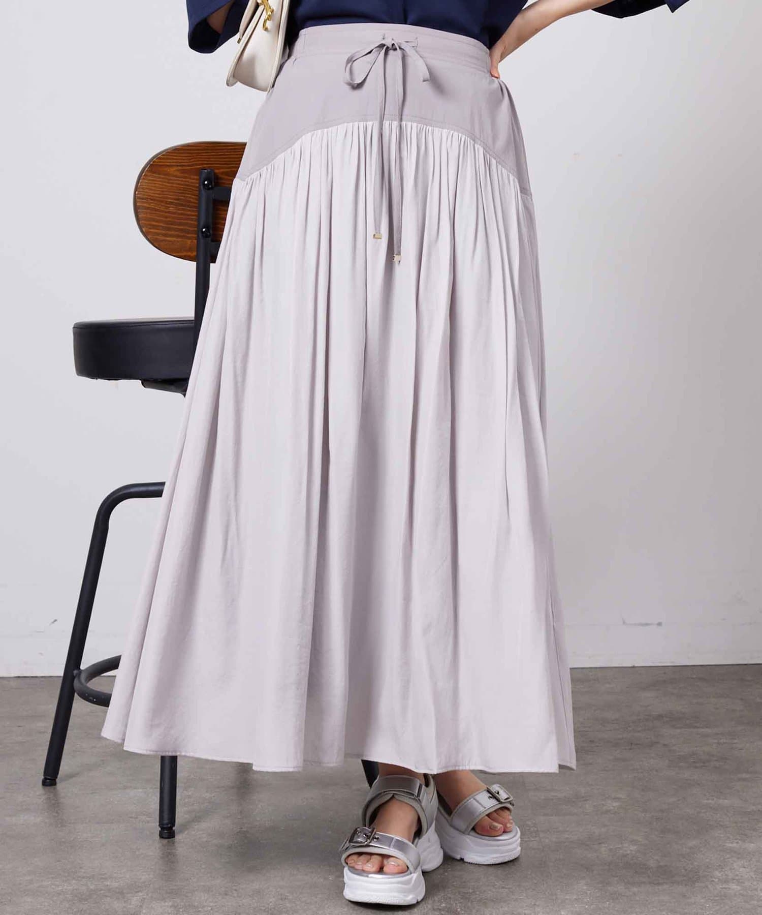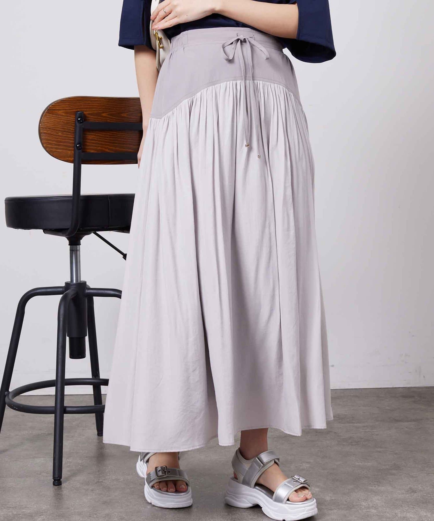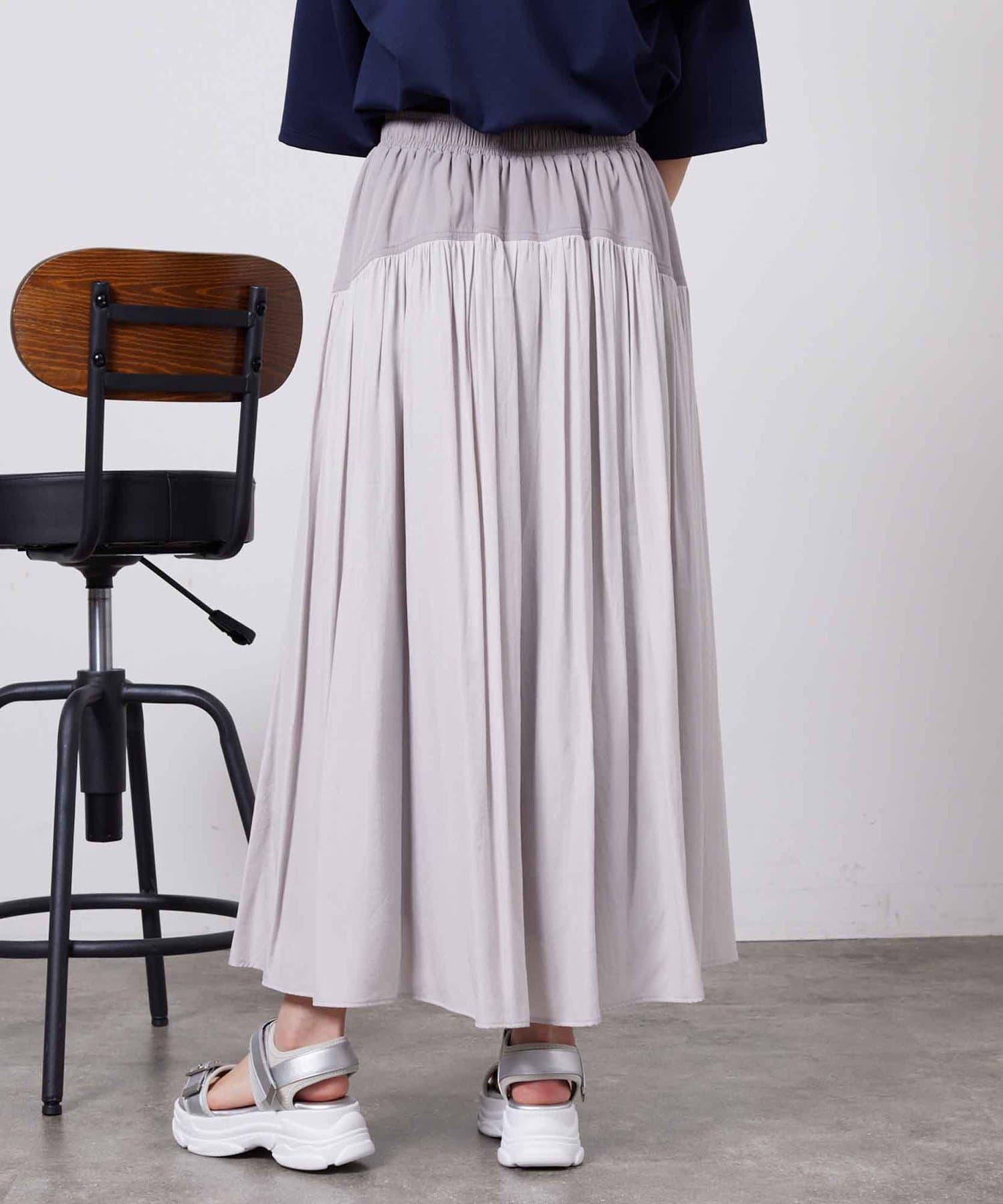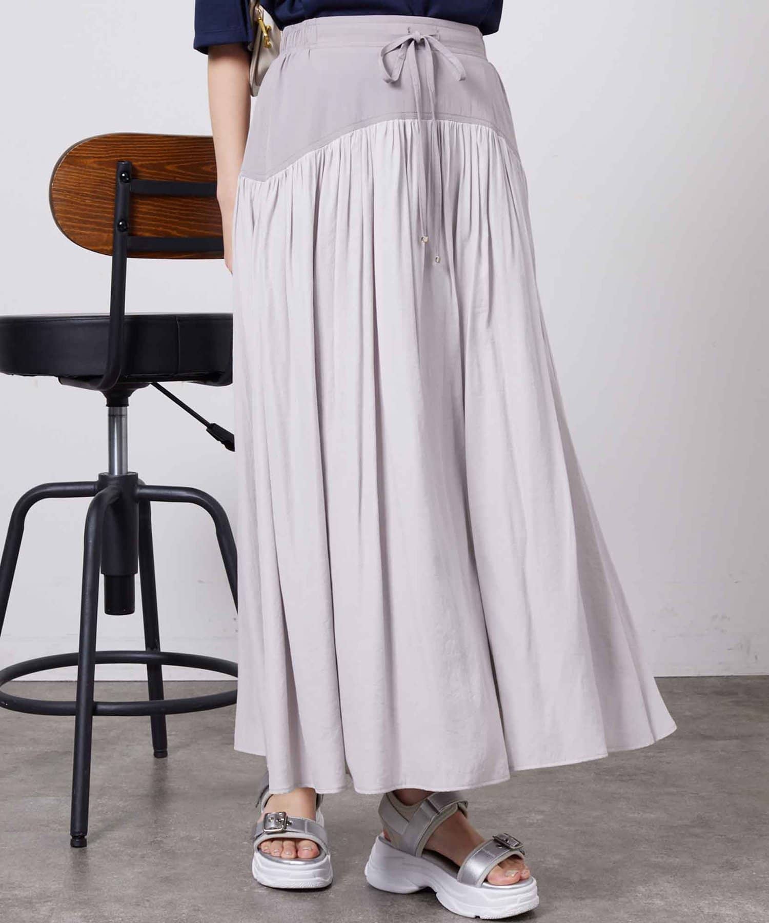ウエストの切り替え部分から下は異素材の微光沢のある生地で